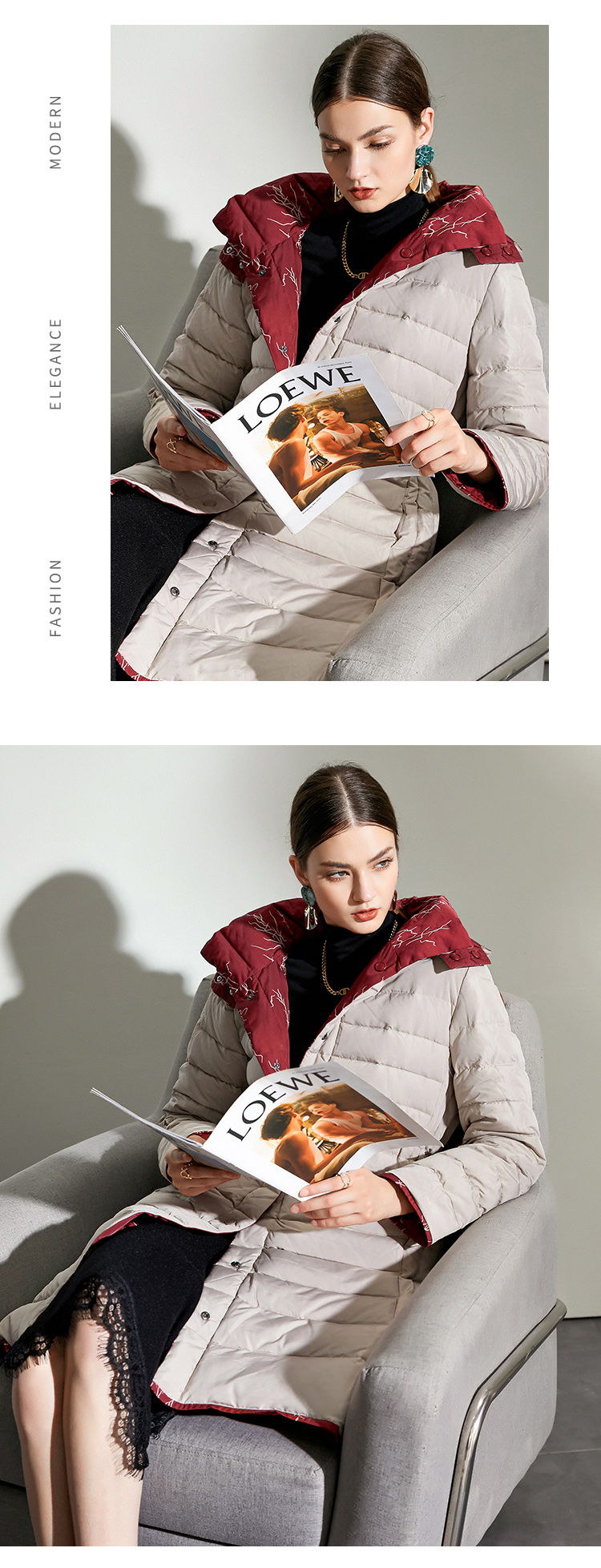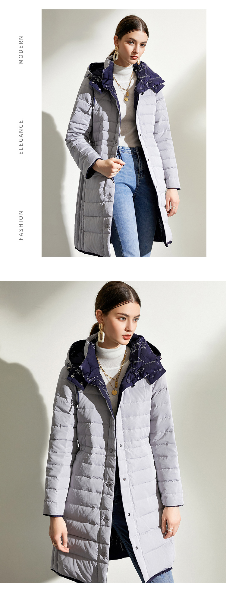 佐尔美2021冬季新品上新 双面穿时尚经典羽绒服外套女E04YY06