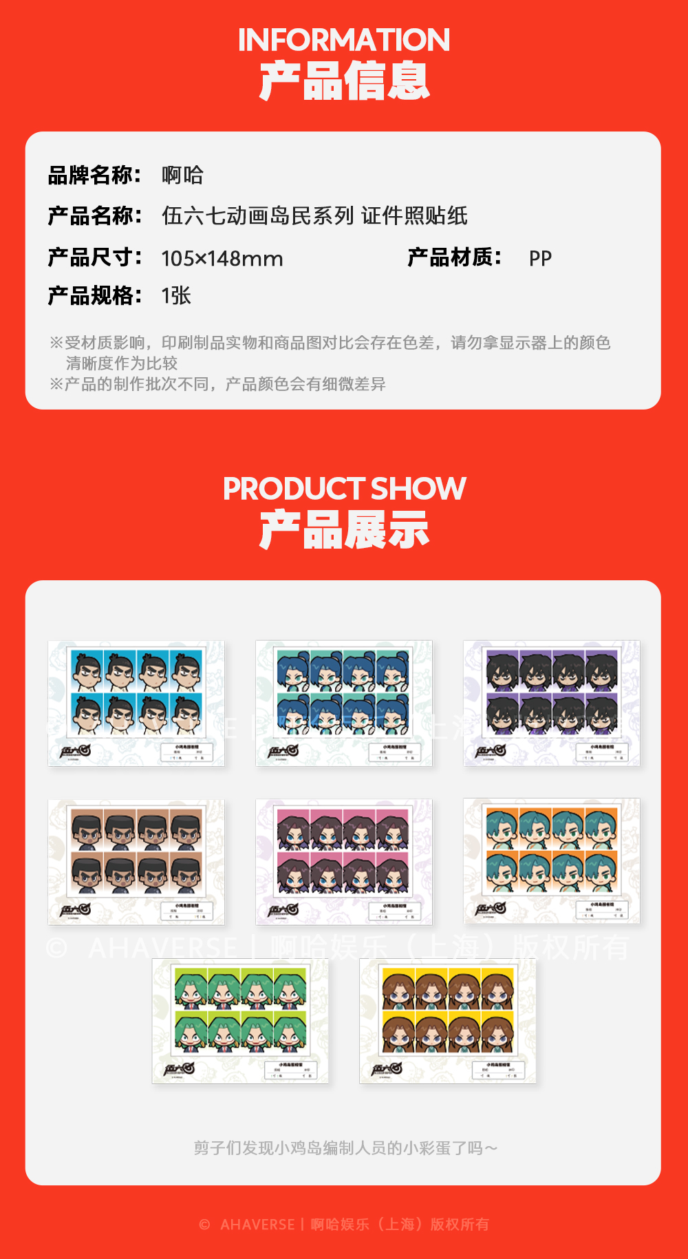 伍六七动画 官方周边 岛民系列 证件照贴纸