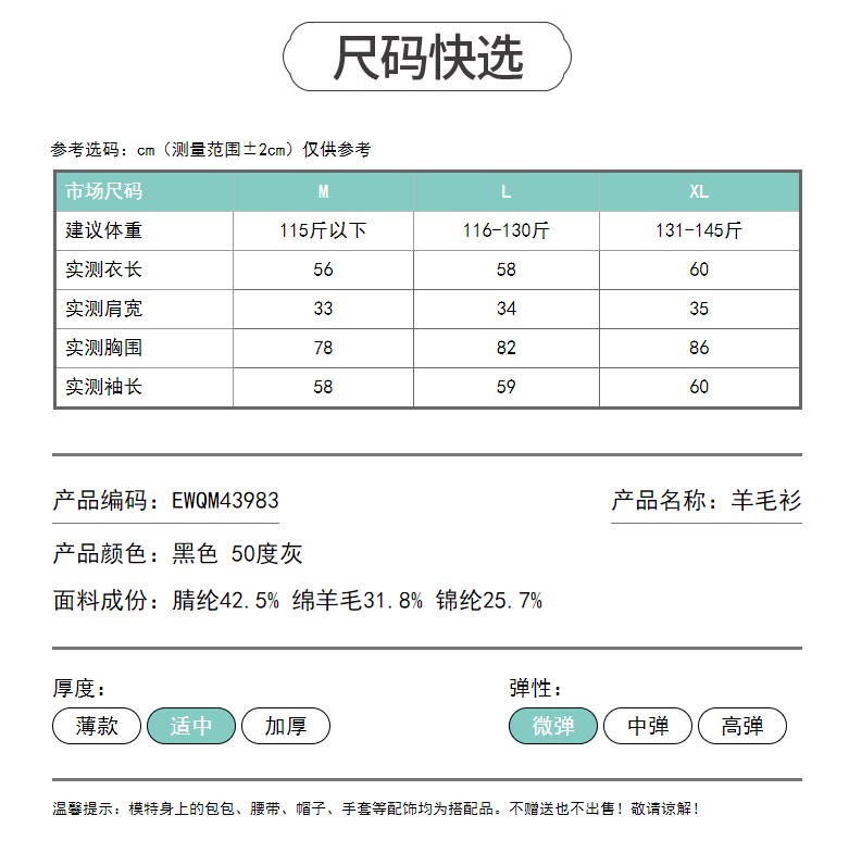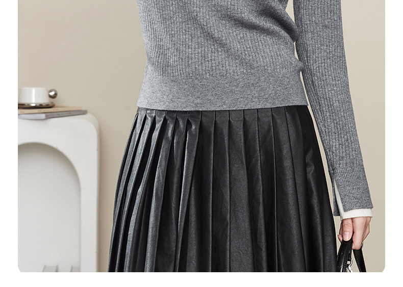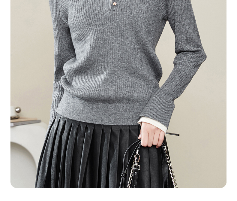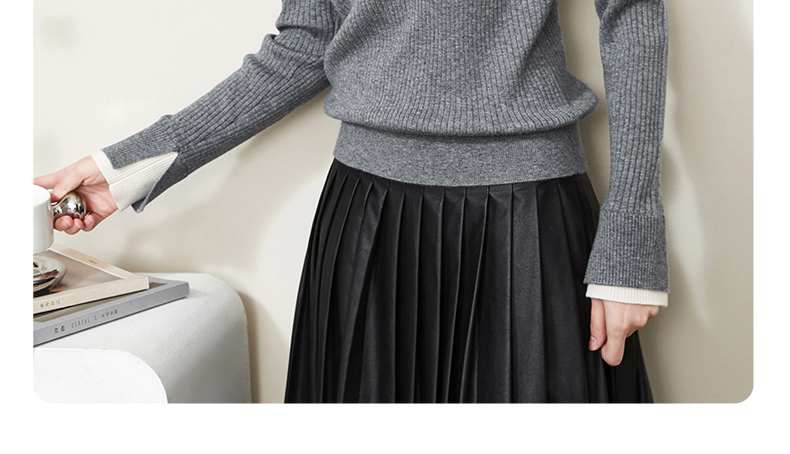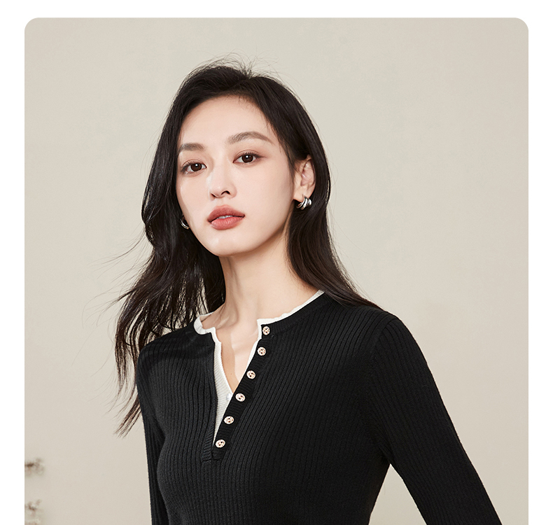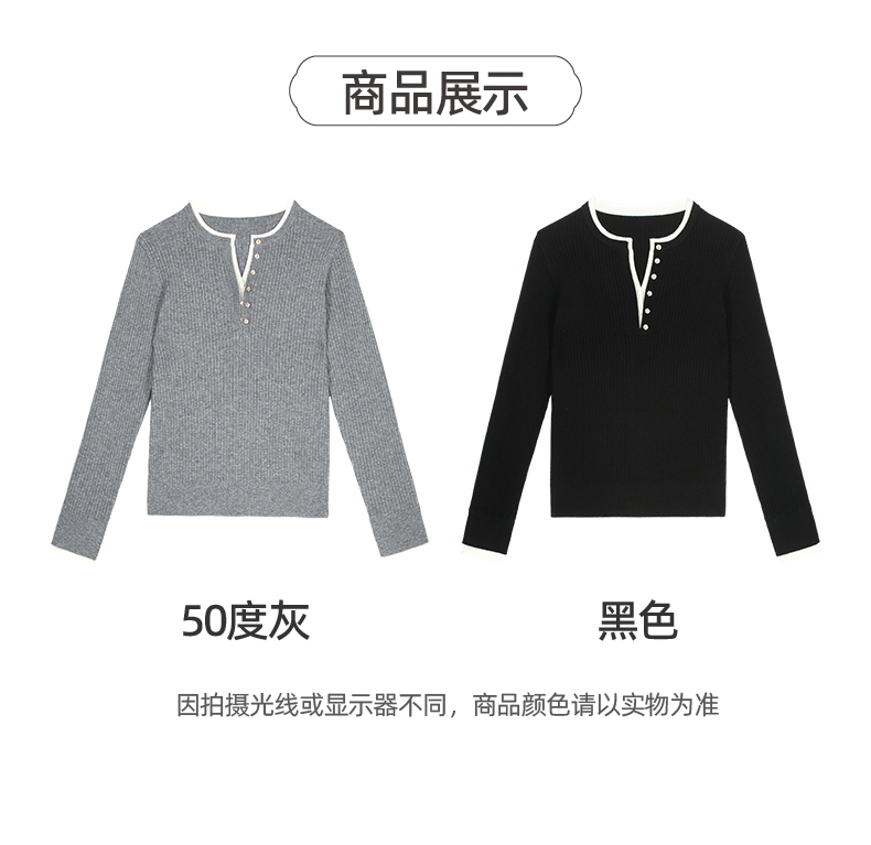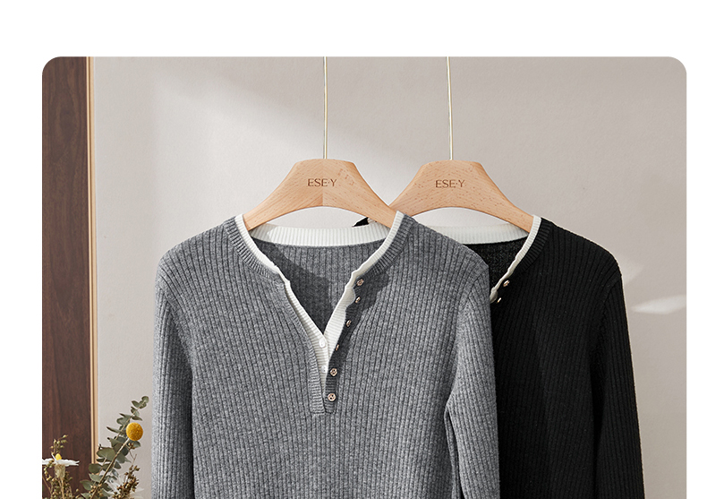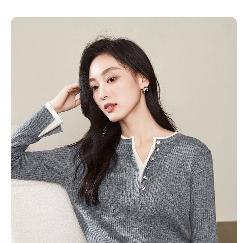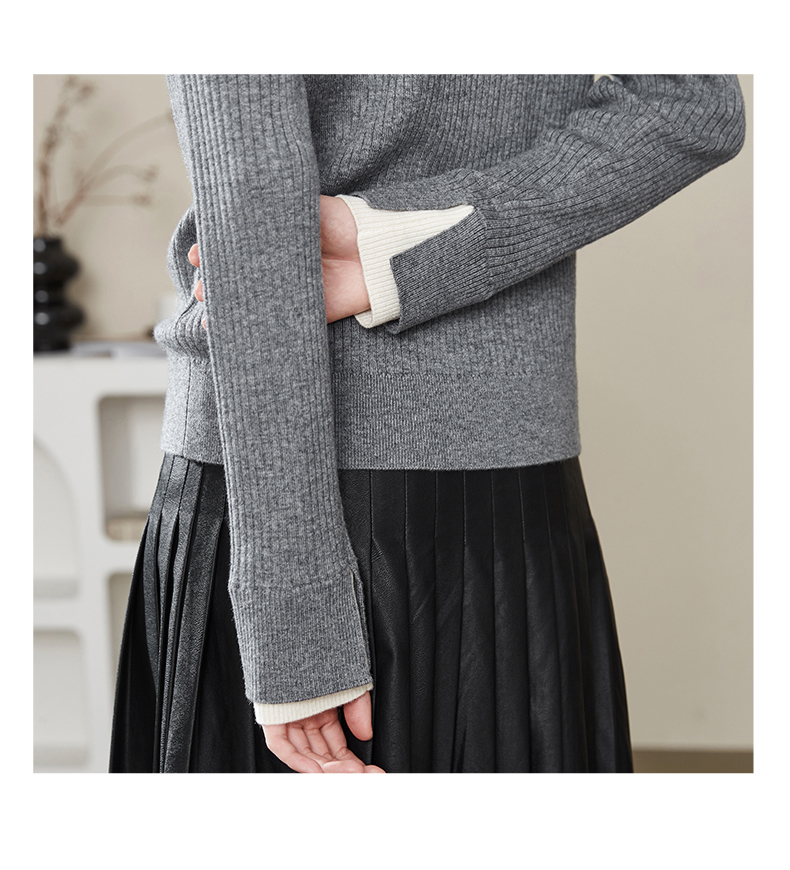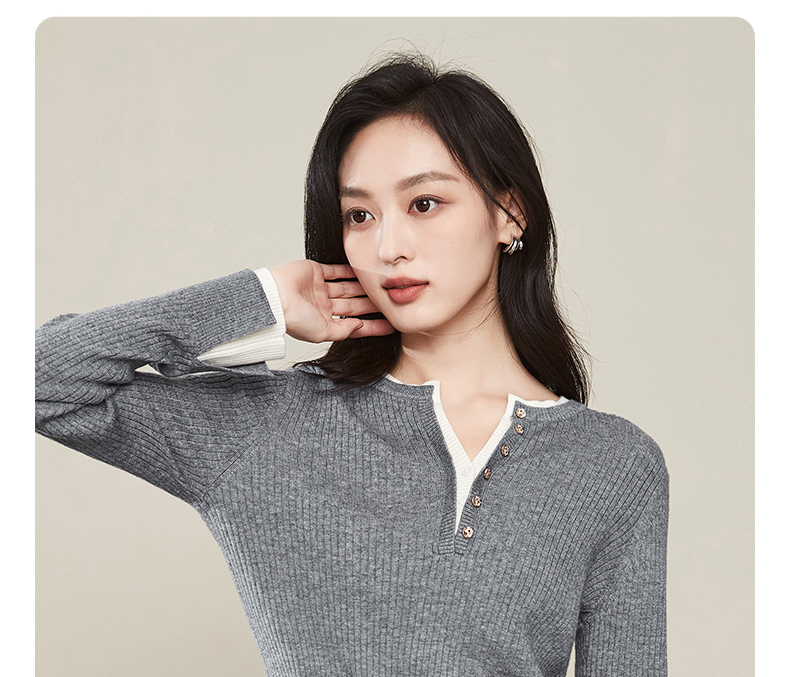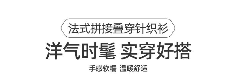 【假两件-羊毛衫】逸阳秋冬新品法式拼接假两件撞色韩版显瘦绵羊毛针织衫3983