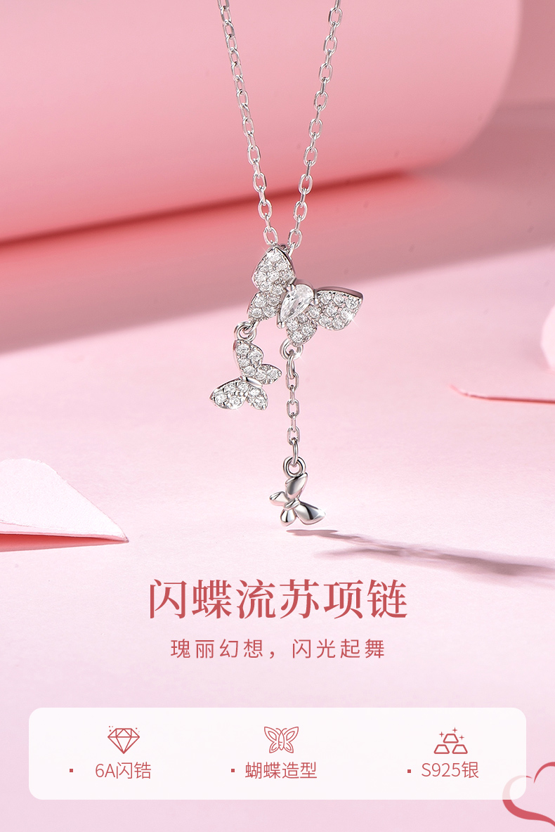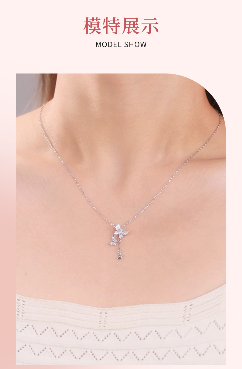 卡蒂罗KADER 闪蝶流苏项链 满镶闪耀蝴蝶造型轻奢小众高级感百搭设计锁骨链 恋爱告白通勤约会 925银 项链 女款 银色
