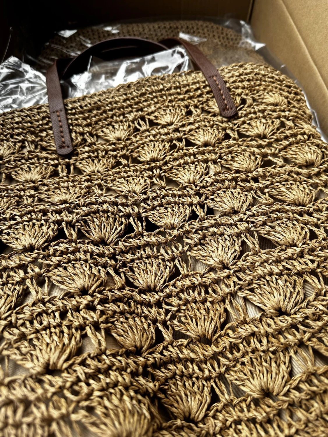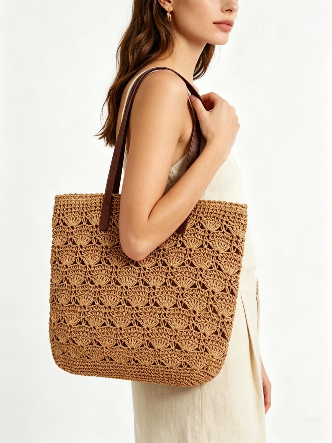 这款包采用手工扇形镂空钩针工艺,美式复古风拉满,经典驼色,百搭不挑人!