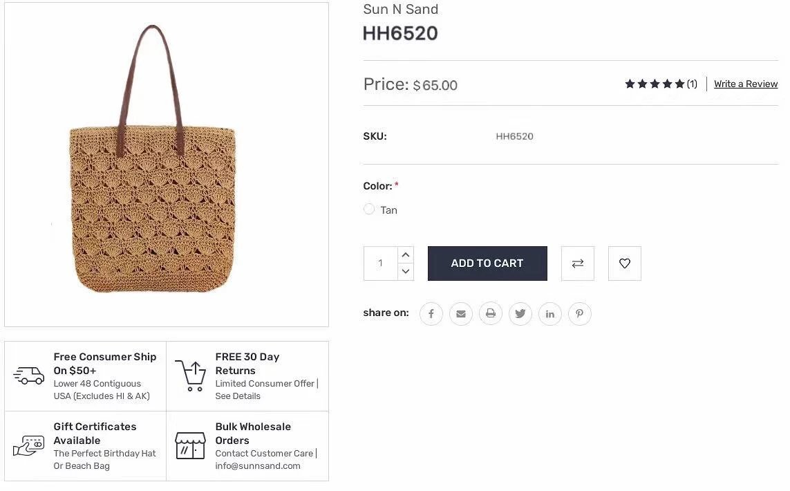 今天给大家带来一款美国Sun N Sand 品牌的经典编织托特包。官方65,合计人民币450