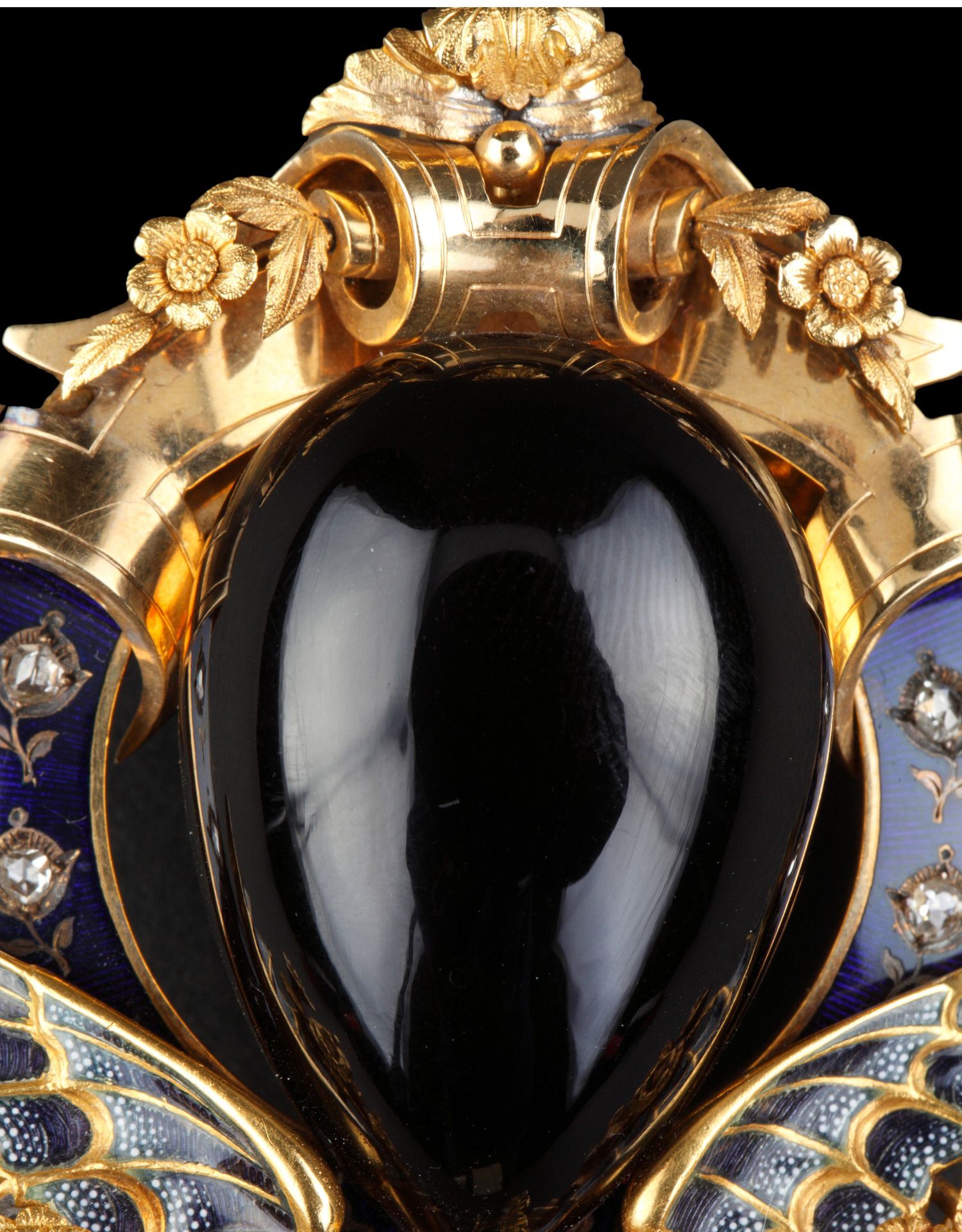 独角鹿西洋古董18K金镶石榴石野生珍珠钻石珐琅飞龙造型胸针吊坠