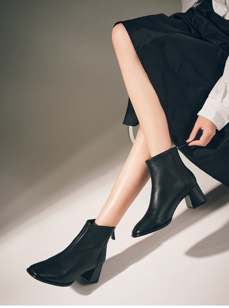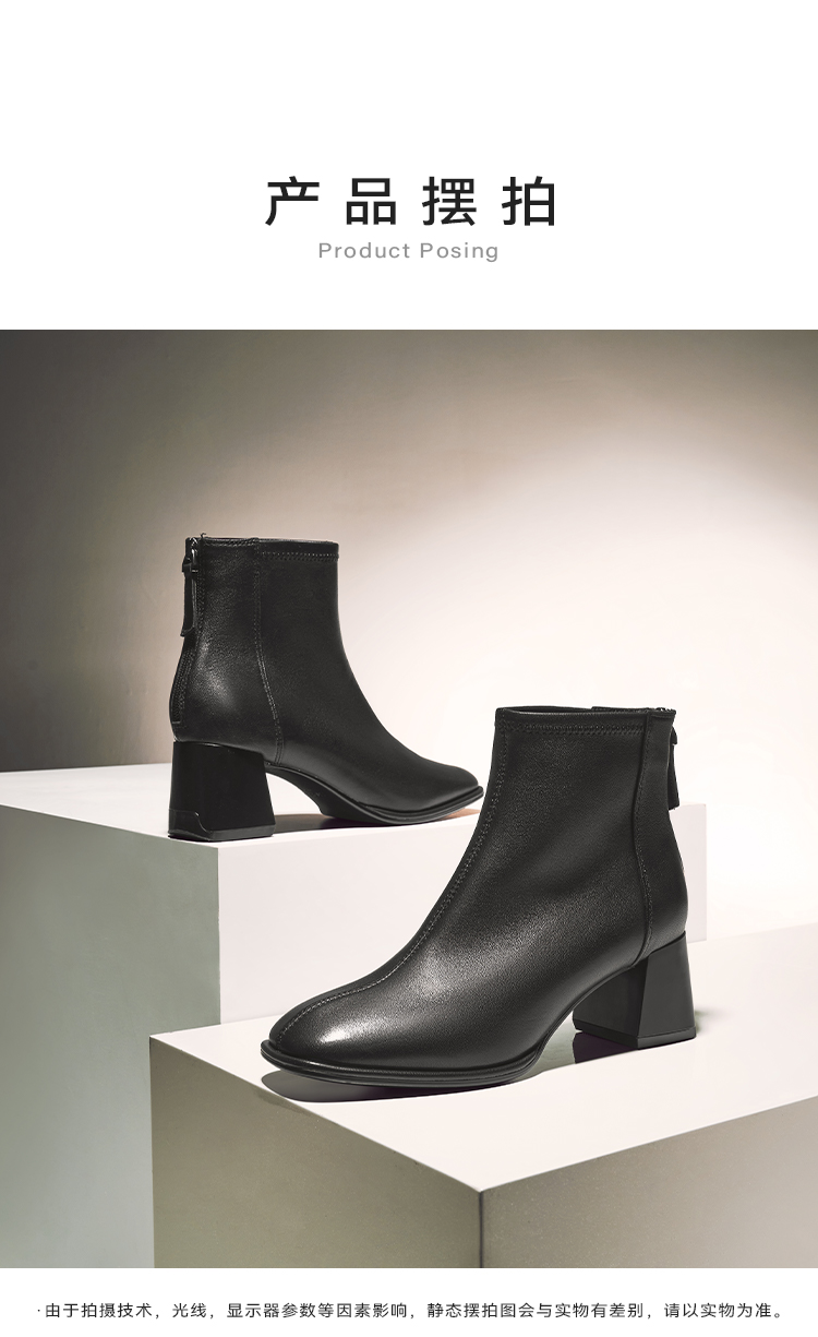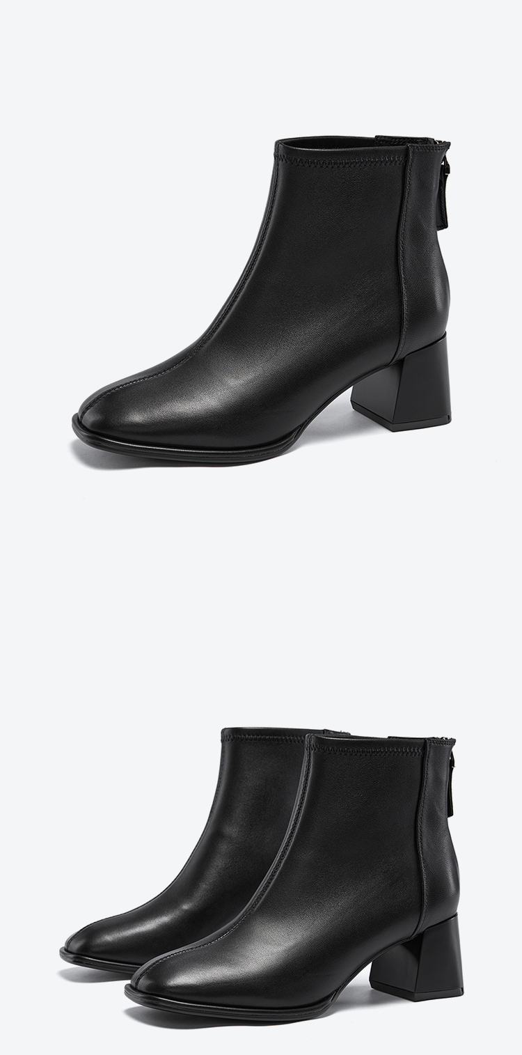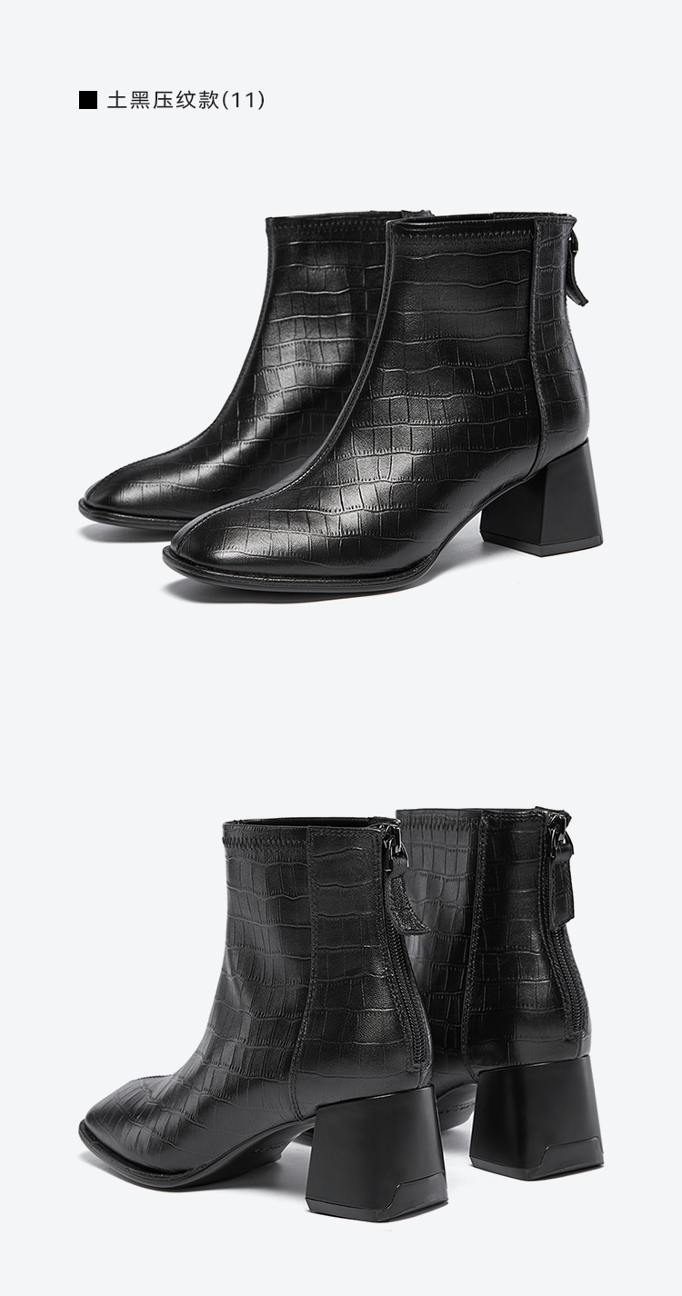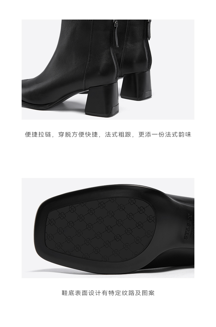 【绒里可选】星期六法式方头简约粗跟短靴SSC4116360/SSC4118360