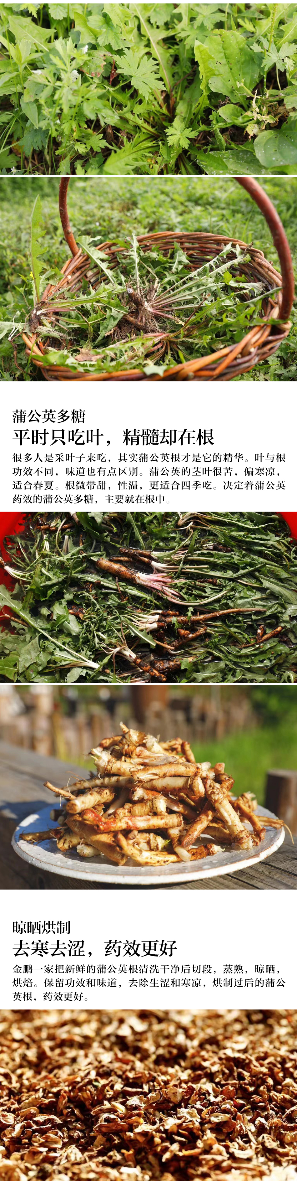 【温馨提示】: 1、这款野生蒲公英根经清洗干净后切段,蒸熟,晾晒,烘焙,保留功效和味道,去除生涩和寒凉。 2、药材皆野生生长,非标准化人工种植,且不同部位个头、大小不一,属于正常现象。 3、我们提供野生食材供大家选择,请根据自身体质遵医嘱食用。