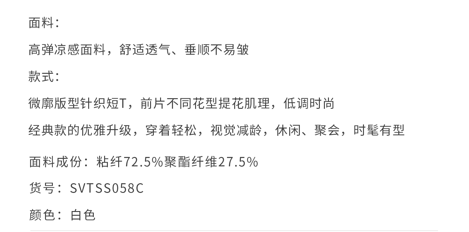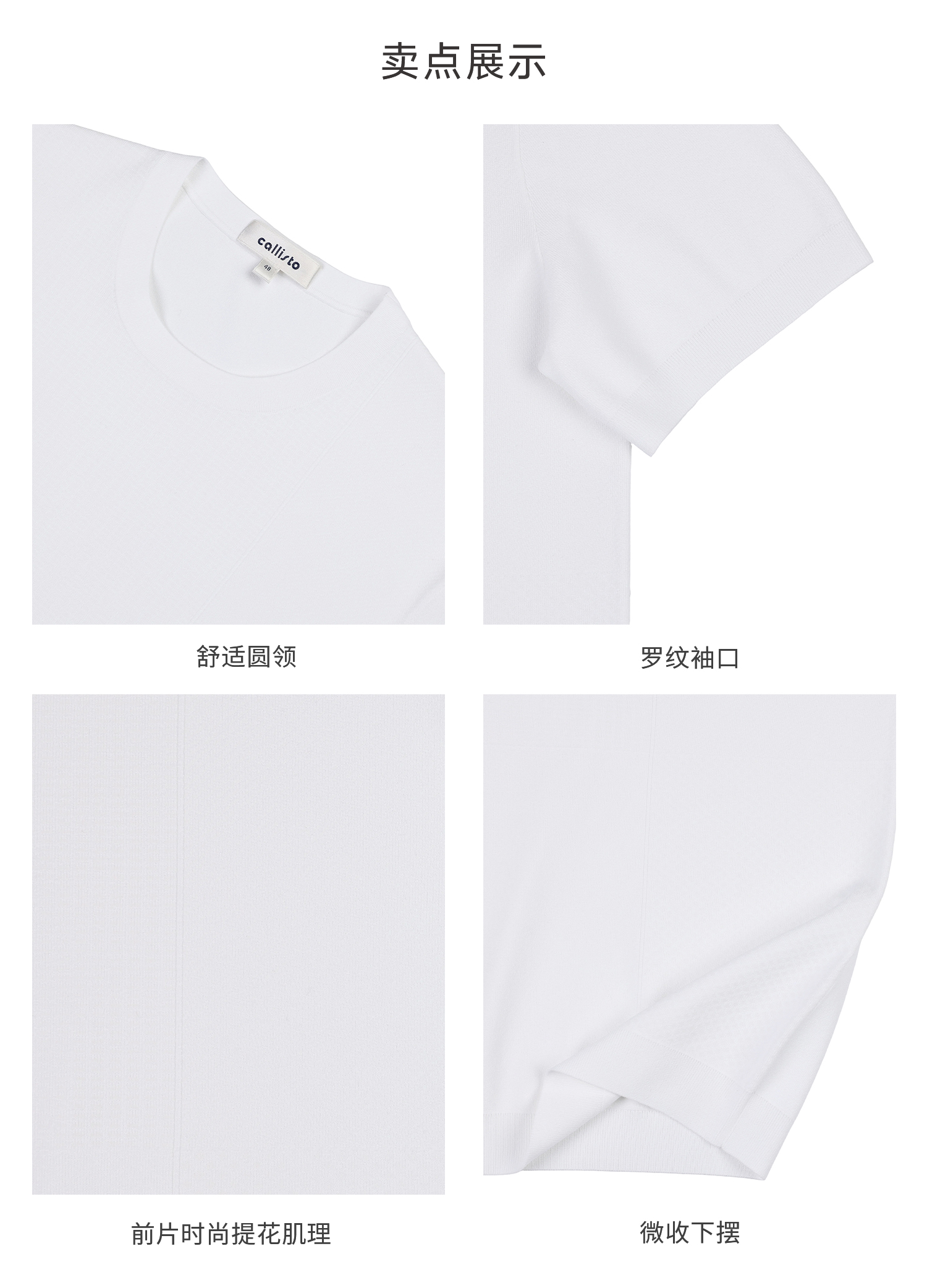 callisto白色凉感提花针织短T