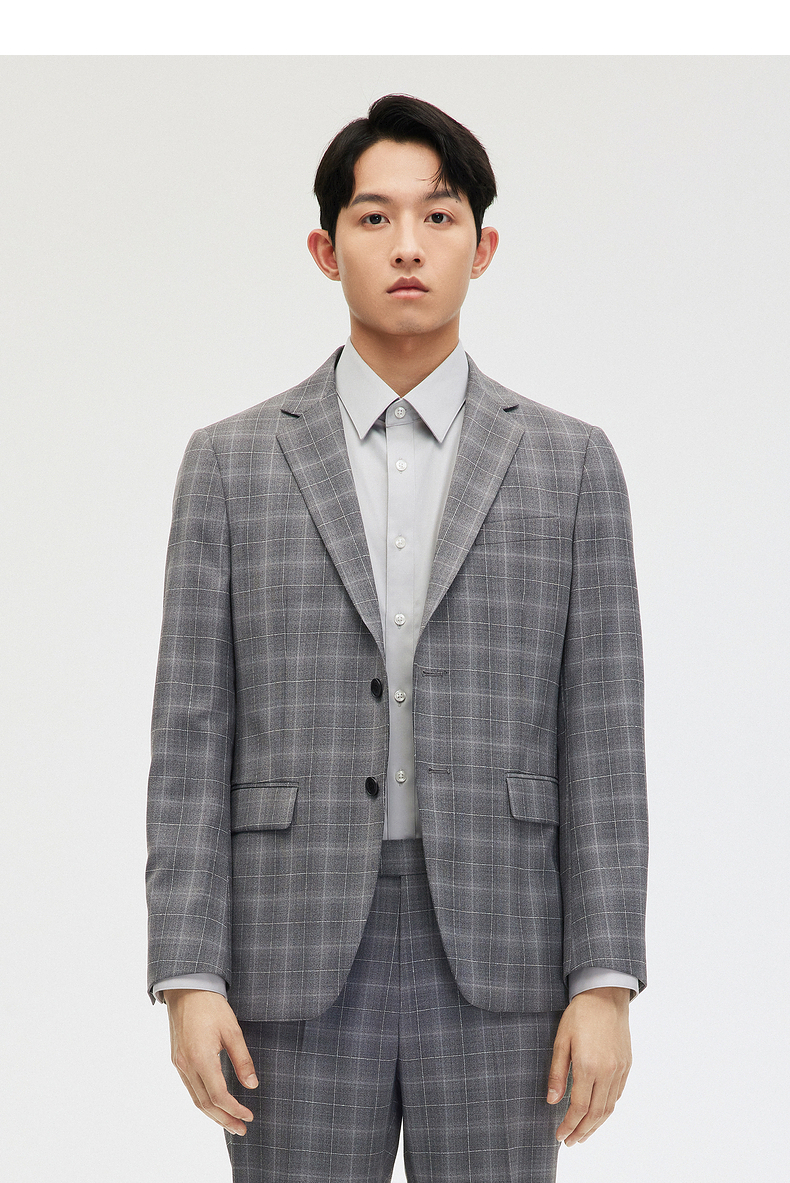 GXG男装灰格简约含羊毛商务西装外套 春季热卖西服