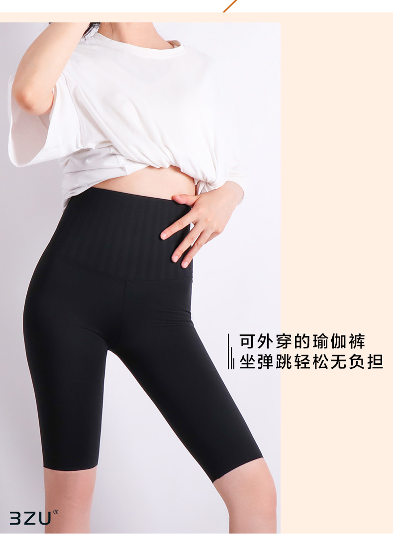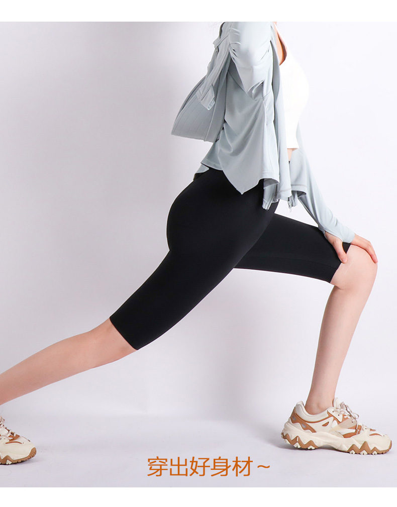 高腰裸感果冻腰鲨鱼裤运动芭比裤春季打底弹力夏天瑜伽无痕五分裤