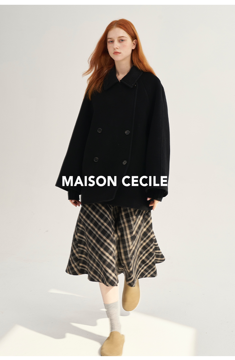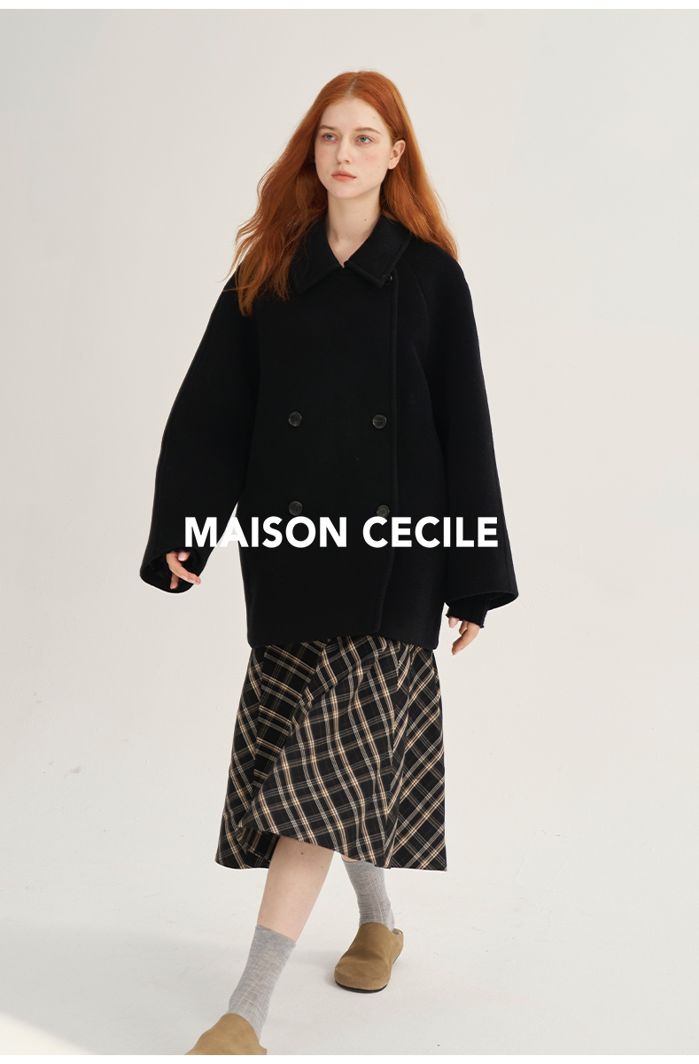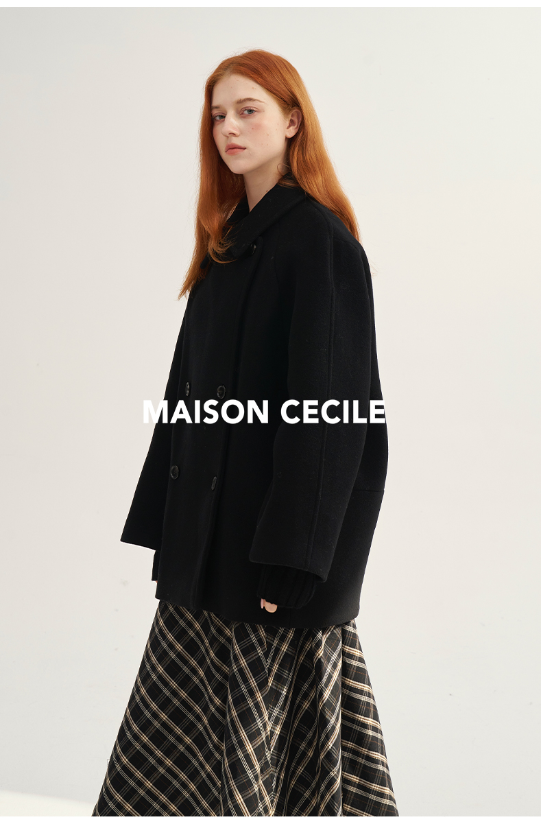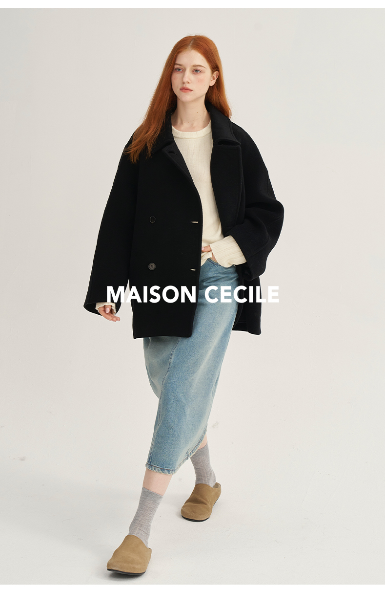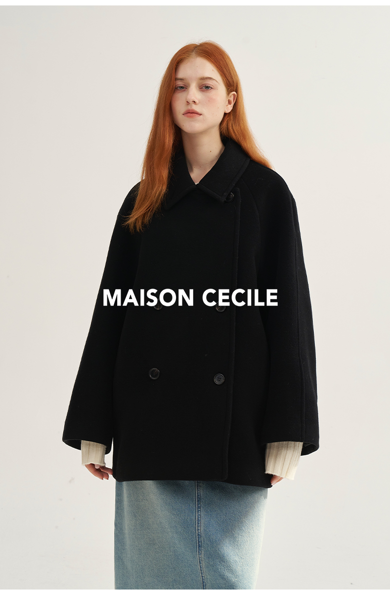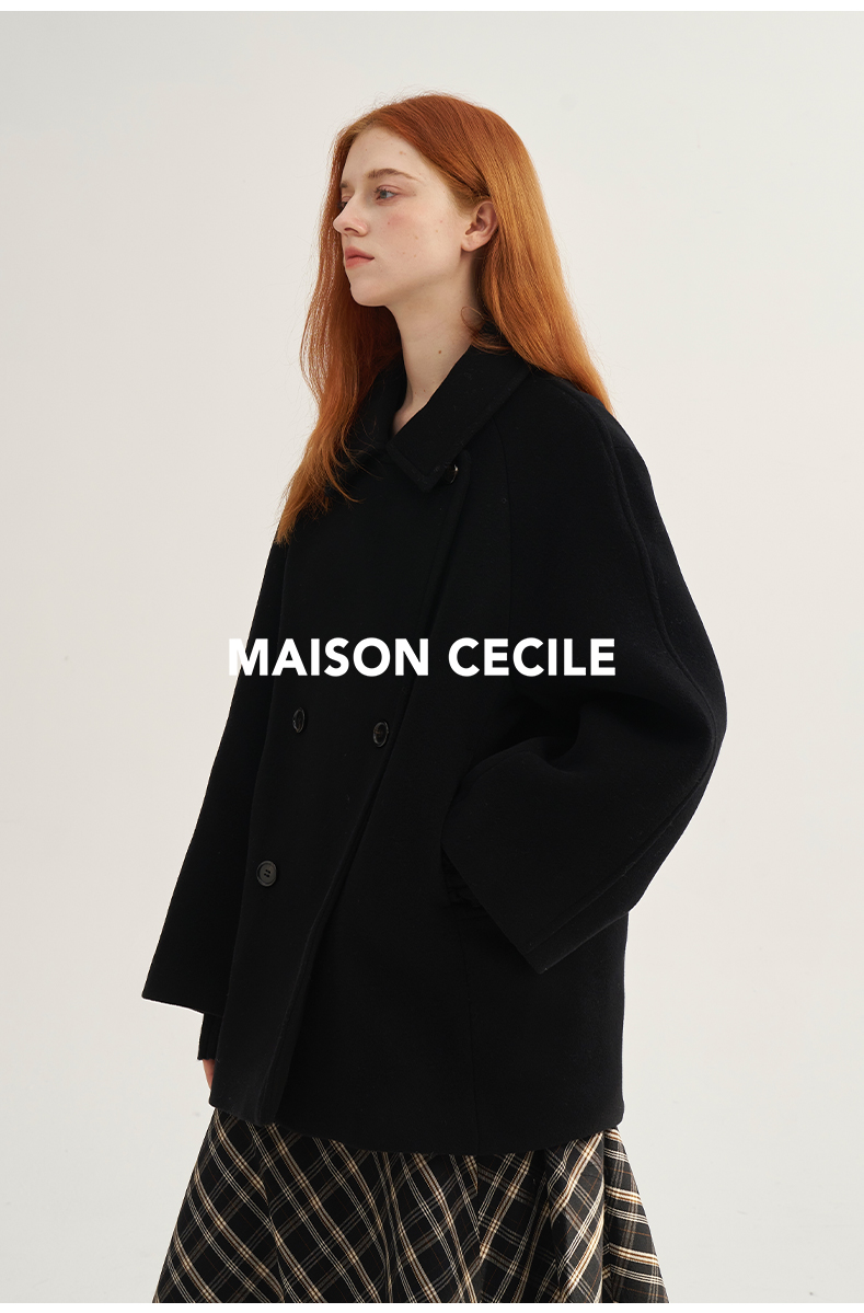 MAISON CECILE保暖厚实短款羊毛翻领双排扣大衣
