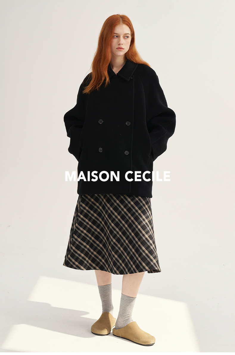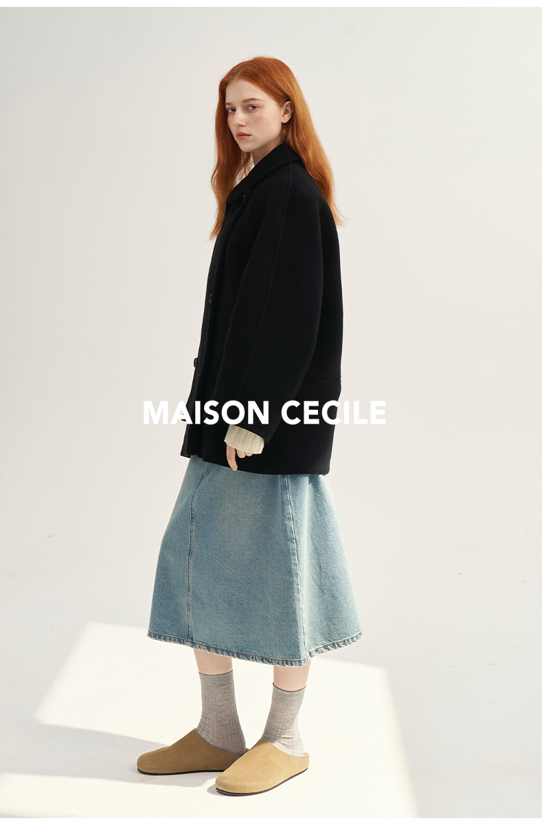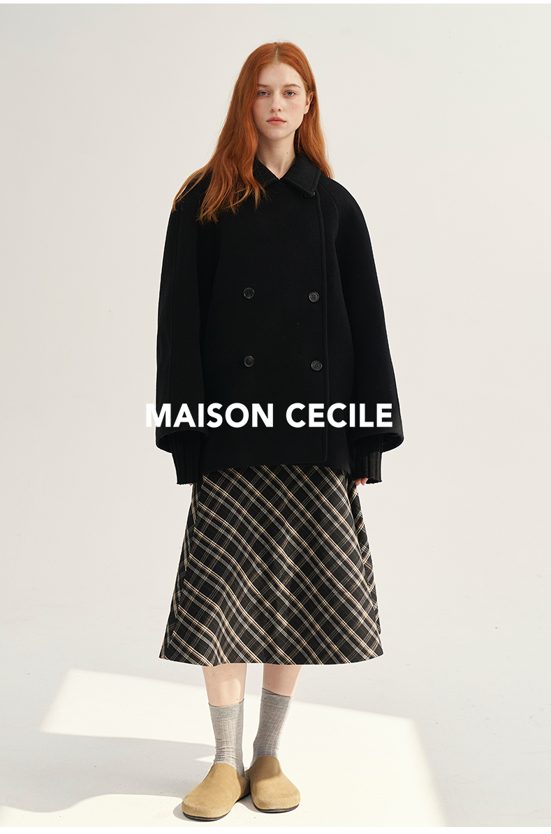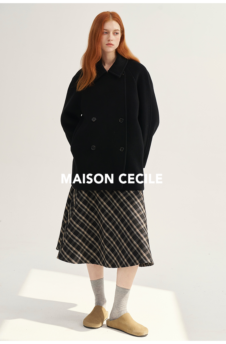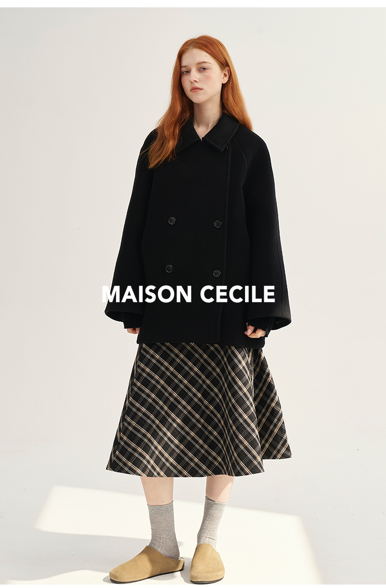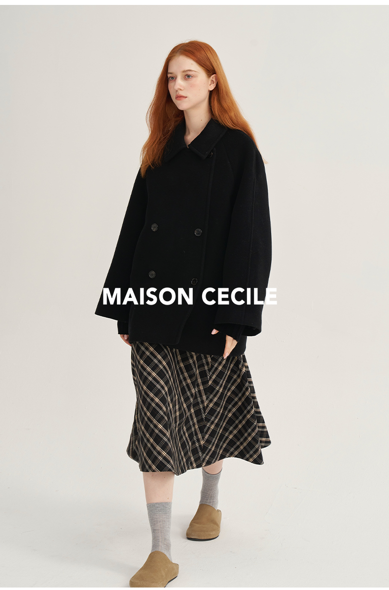 MAISON CECILE保暖厚实短款羊毛翻领双排扣大衣
