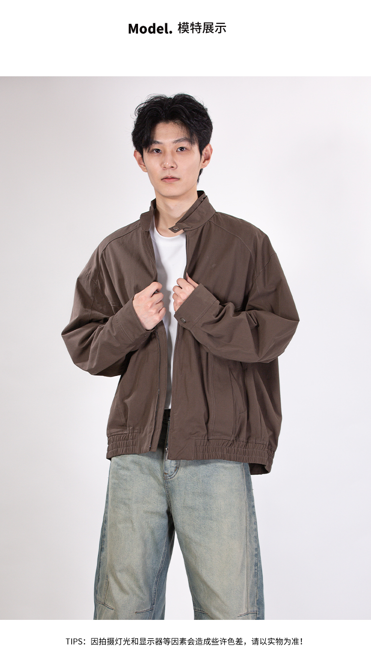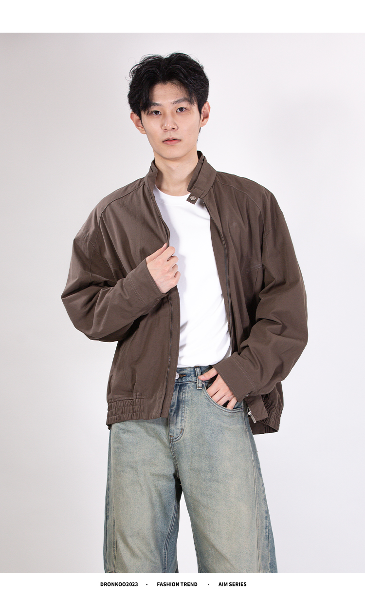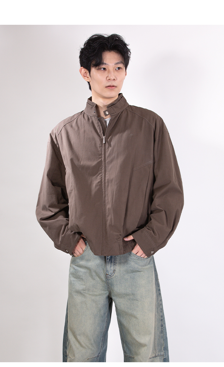 DRONKOO 2025 立领双层领口袋斜裁下摆橡筋中厚夹克