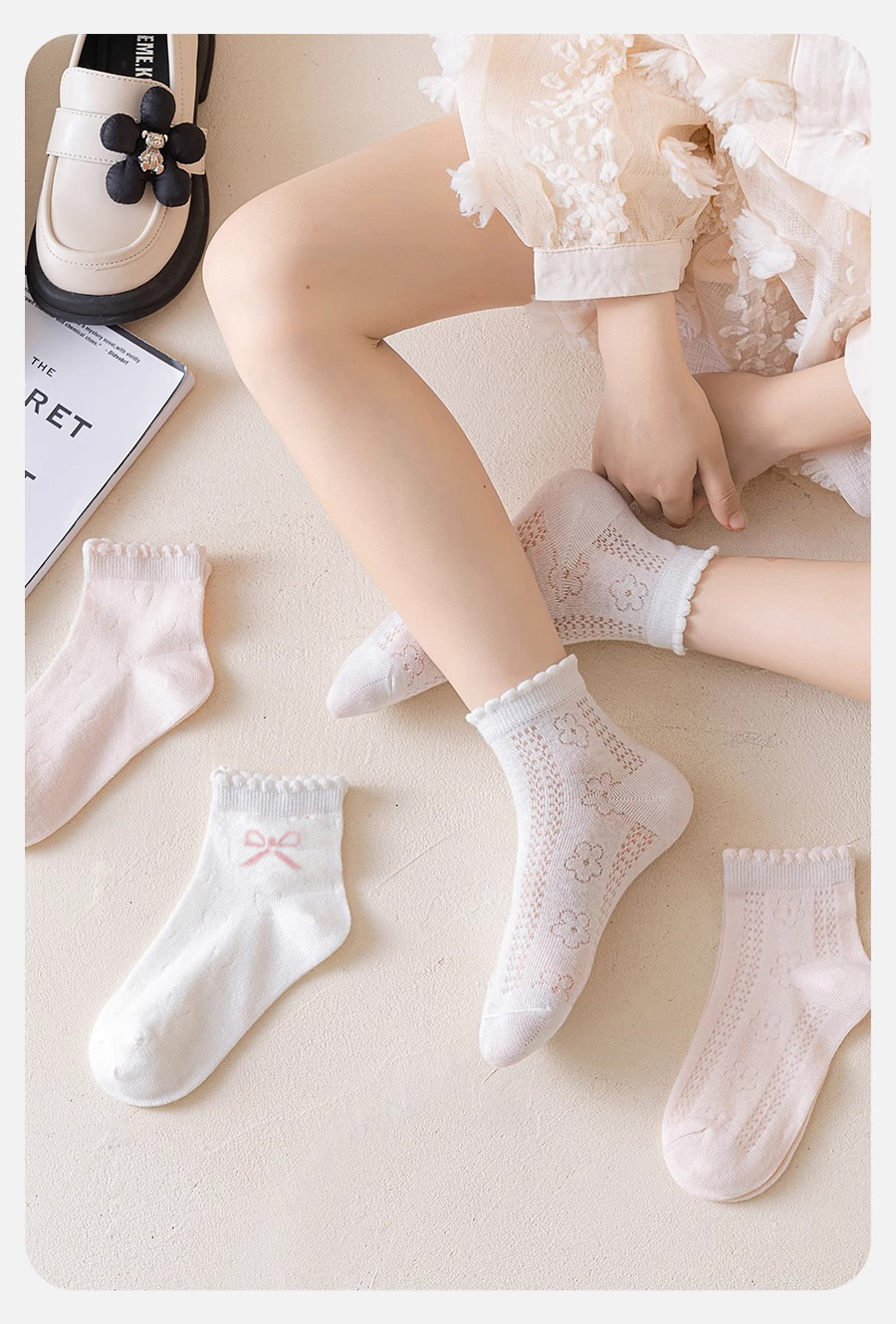 「5双装!公主童袜」儿童袜子女童春秋薄款宝宝袜白色童袜女孩袜女宝宝春夏袜潮流童装