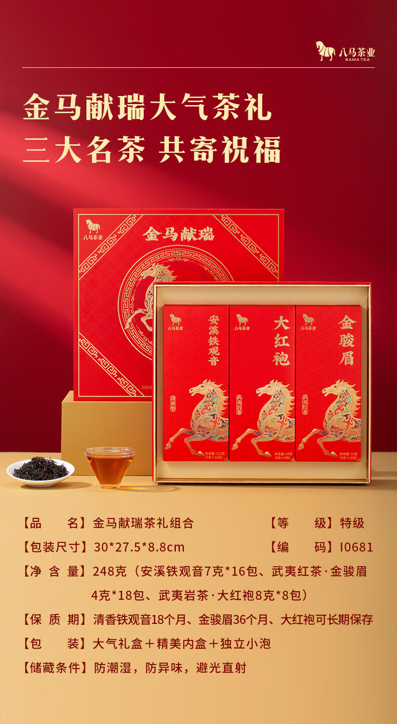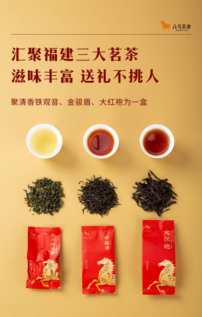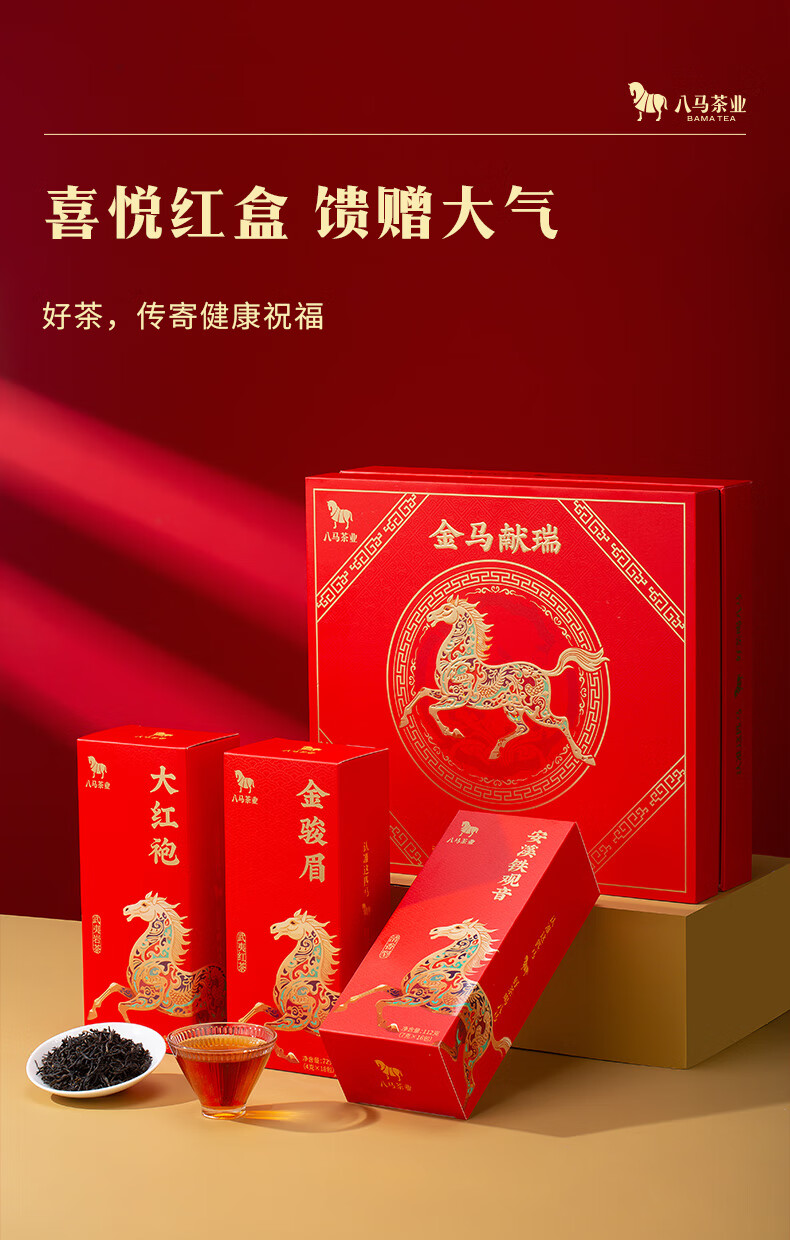 八马 金马献瑞 福建三大茗茶 安溪铁观音 大红袍 金骏眉 茶叶 礼盒