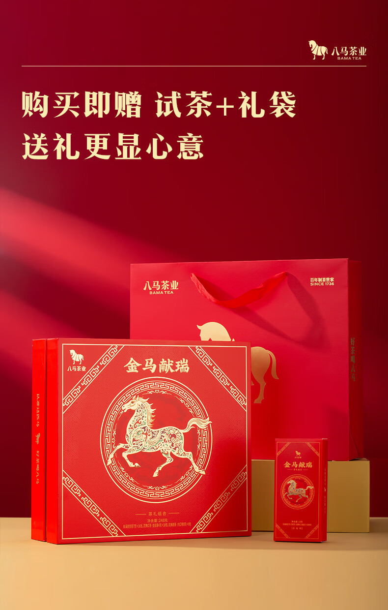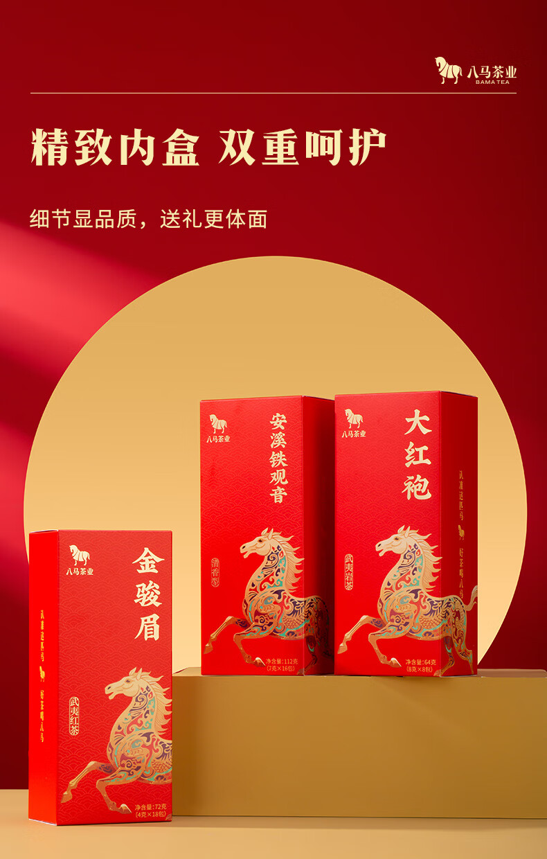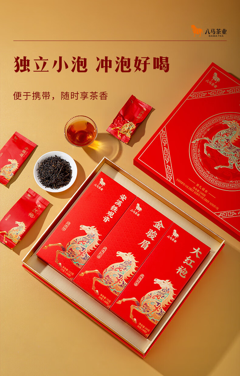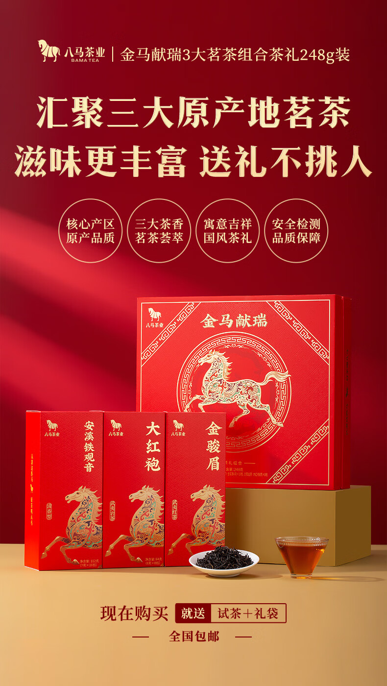八马 金马献瑞 福建三大茗茶 安溪铁观音 大红袍 金骏眉 茶叶 礼盒