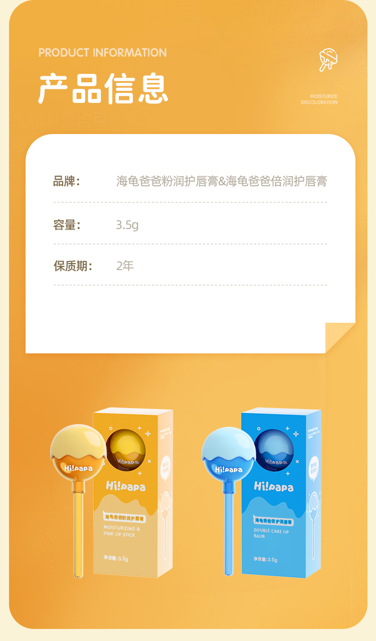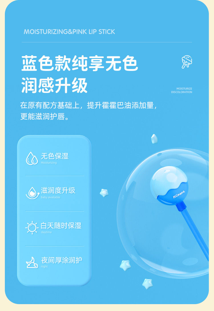 儿童棒棒糖粉润护唇膏(女款变色)3.5g