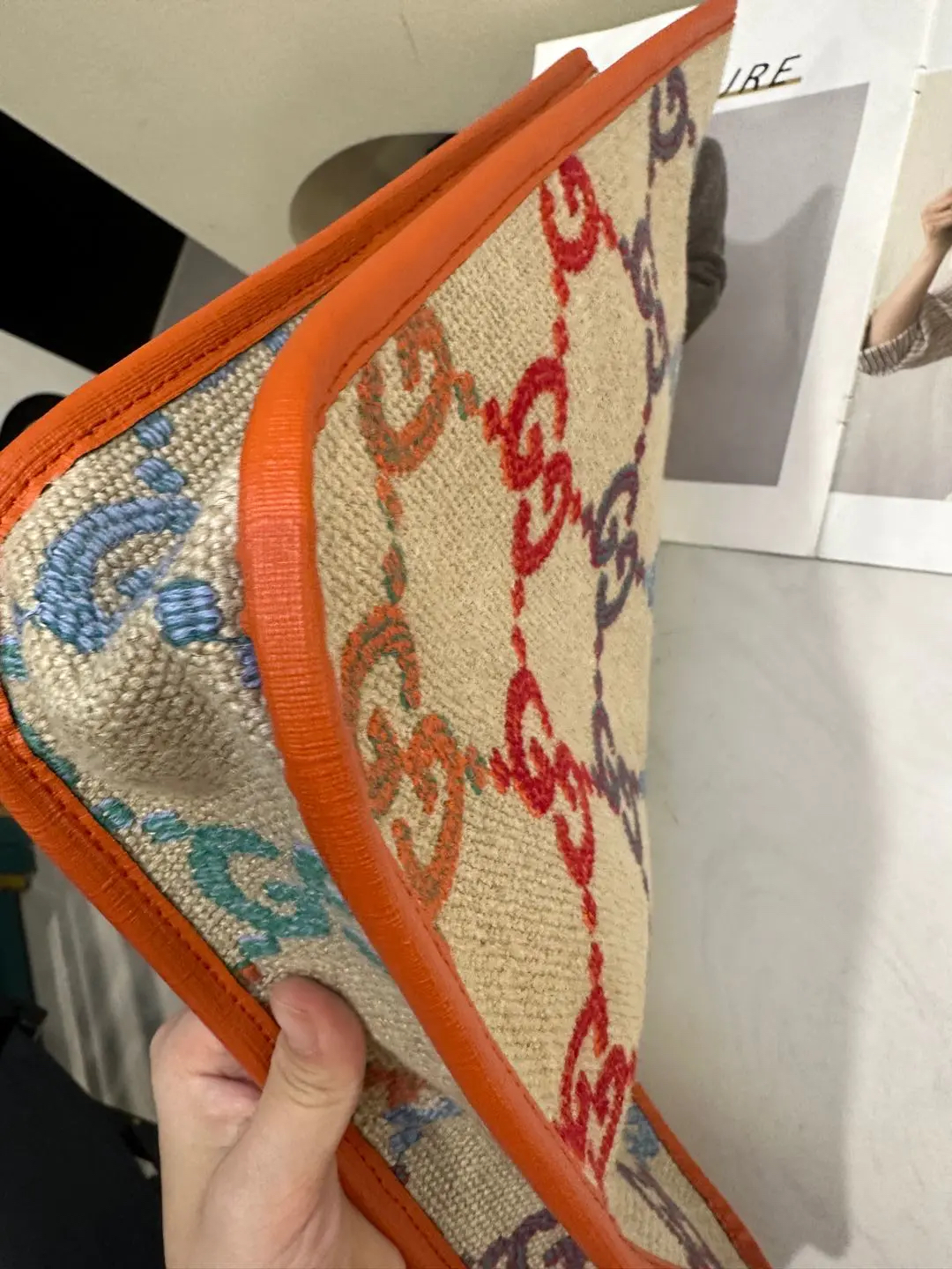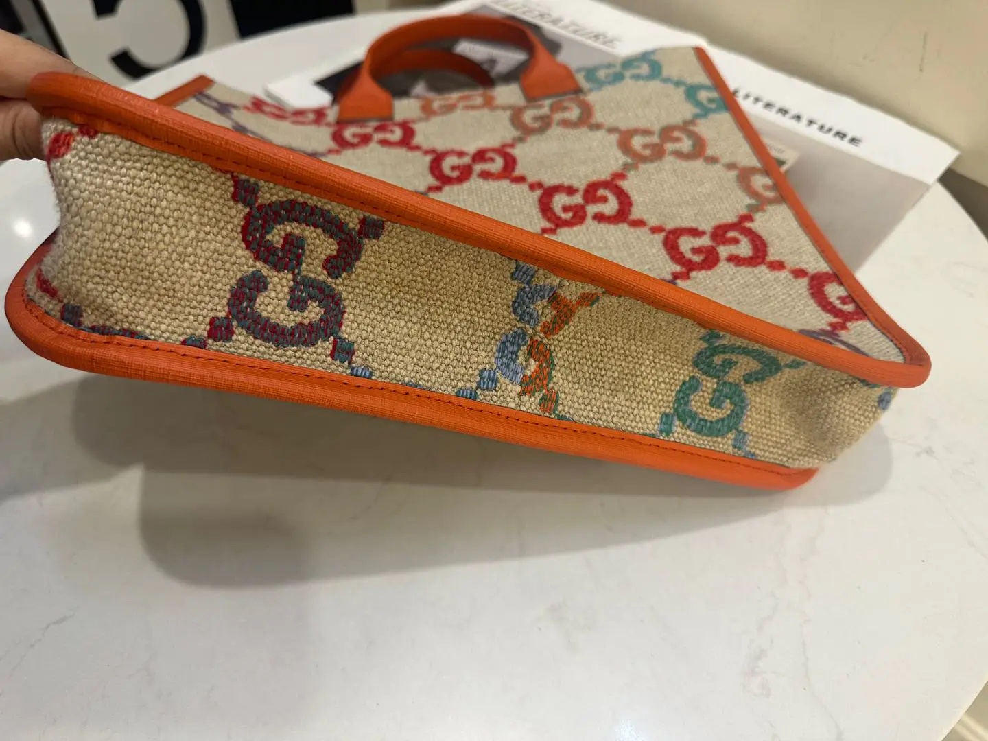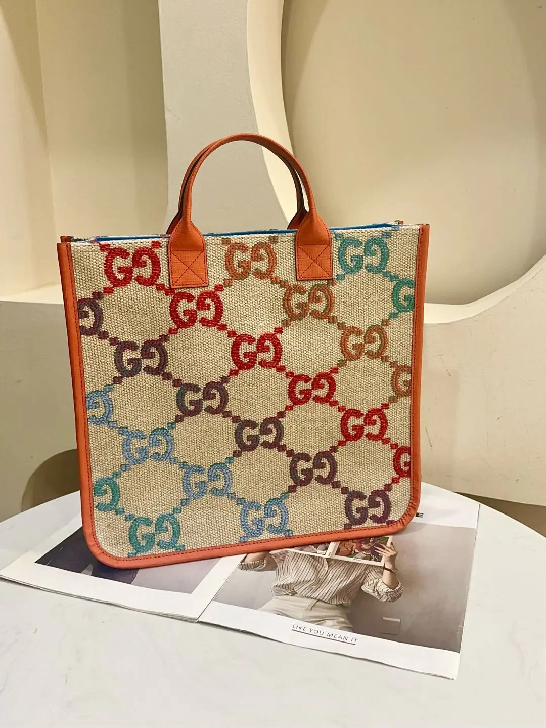 正品二手 GUCCI 彩虹渐变 GG 米色 老花 亚麻 儿童 托特包👜97新 33*31。辨识度超高