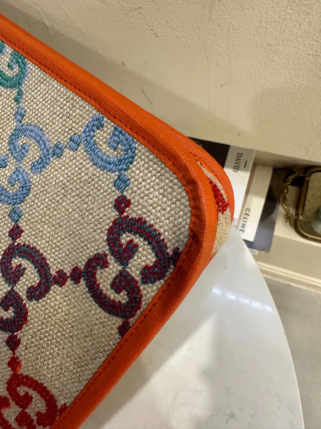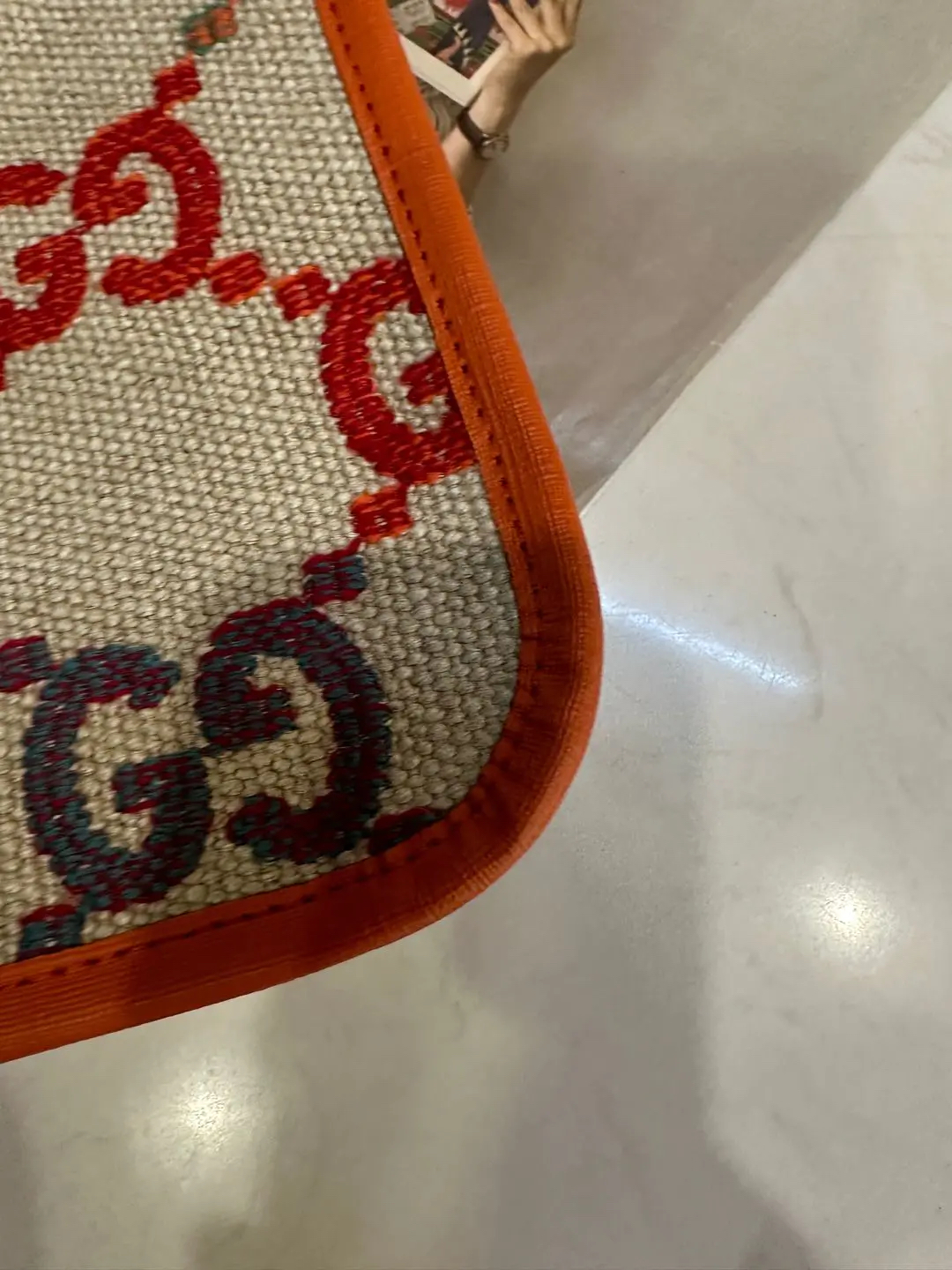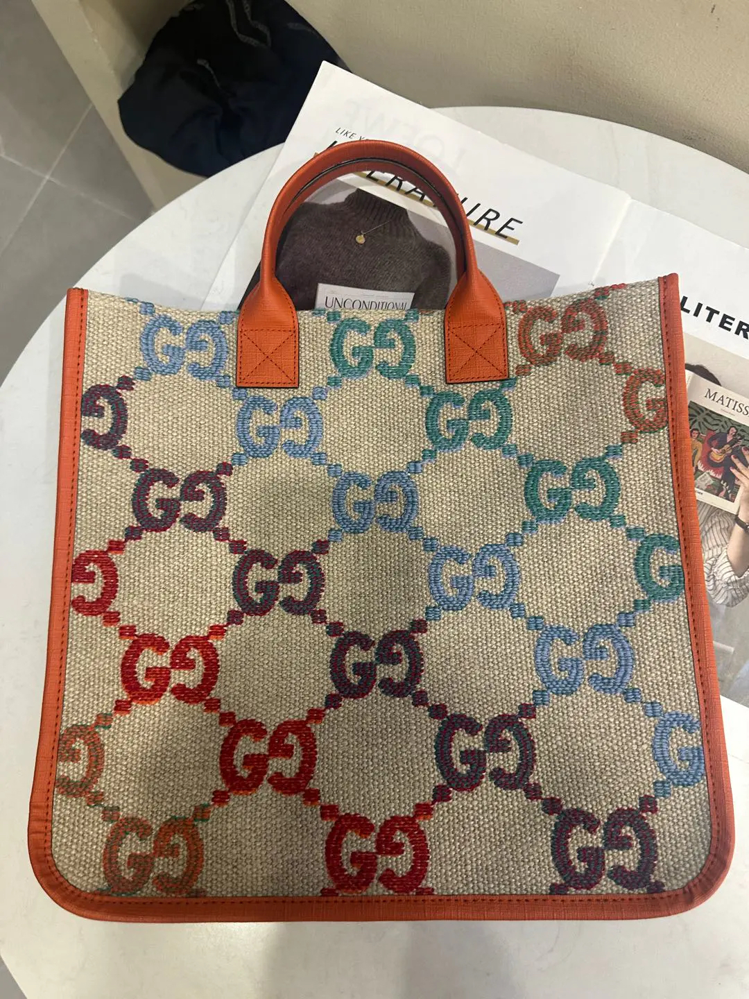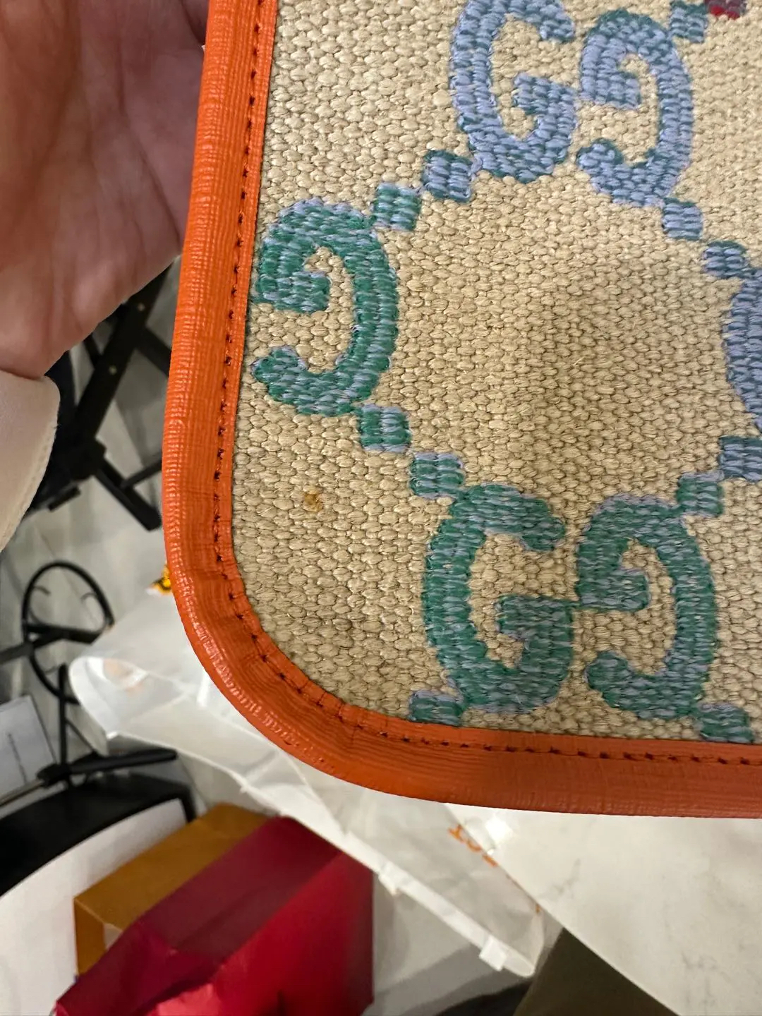 正品二手 GUCCI 彩虹渐变 GG 米色 老花 亚麻 儿童 托特包👜97新 33*31。辨识度超高