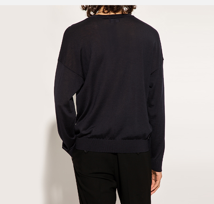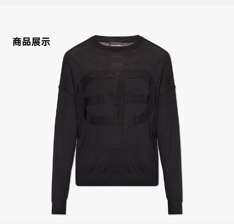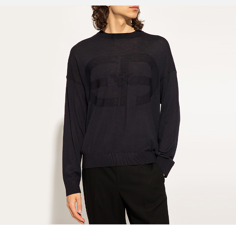 EMPORIO ARMANI 阿玛尼 男士徽标印花羊毛圆领长袖针织衫 深蓝色 6L1MX7 1MMVZ 0920