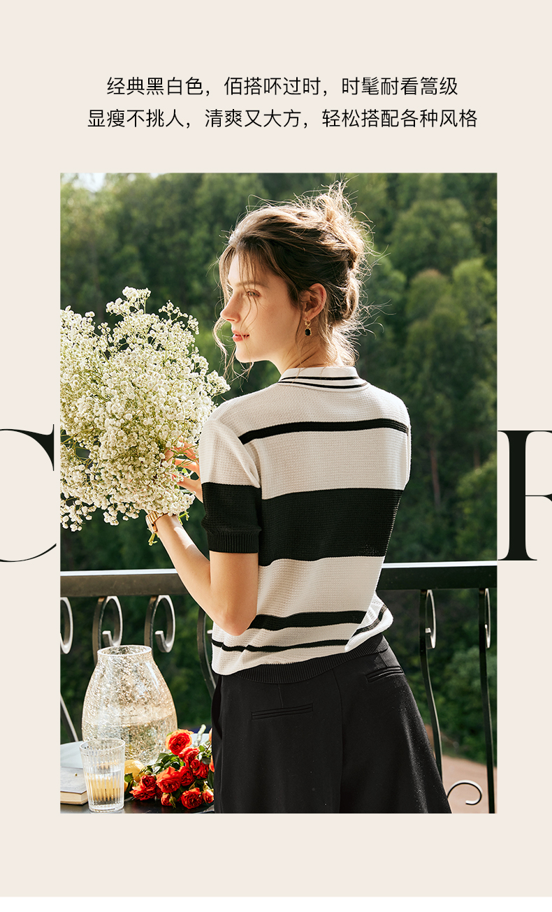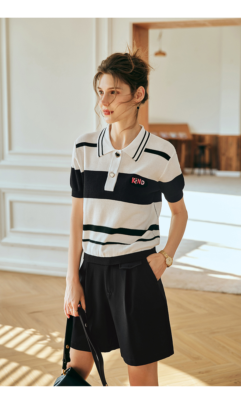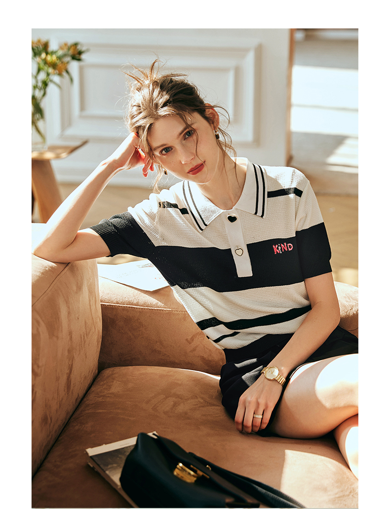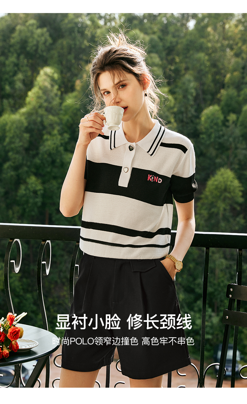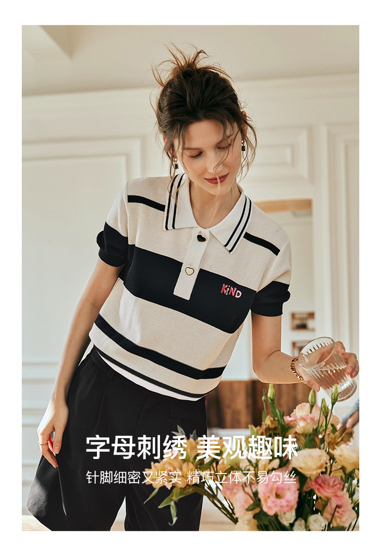 OLrain欧芮儿法式polo领冰丝针织衫女夏季2023新款拼色刺绣套头衫