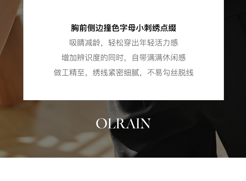 - “精致”是欧芮儿olrain品牌文化的核心,欧芮儿认为,精致的女人,不但要外在动人,更要内在迷人,内外兼修,有魅力、有气质、有内涵,自信而不自傲,优雅而不矫揉,自有万种风情而不轻浮,更不故作矜持。
