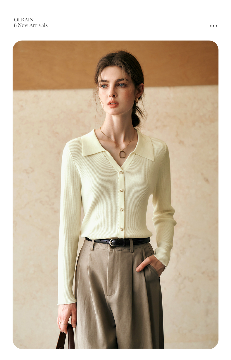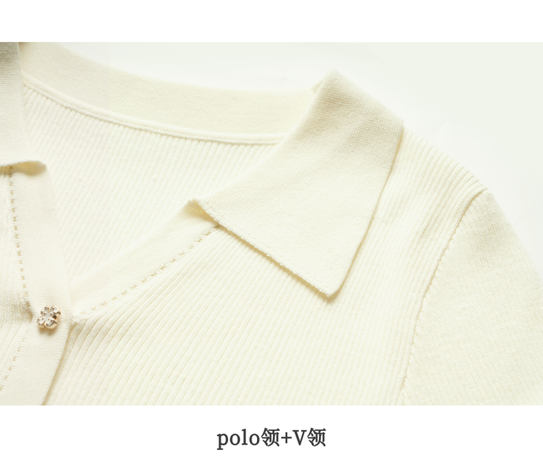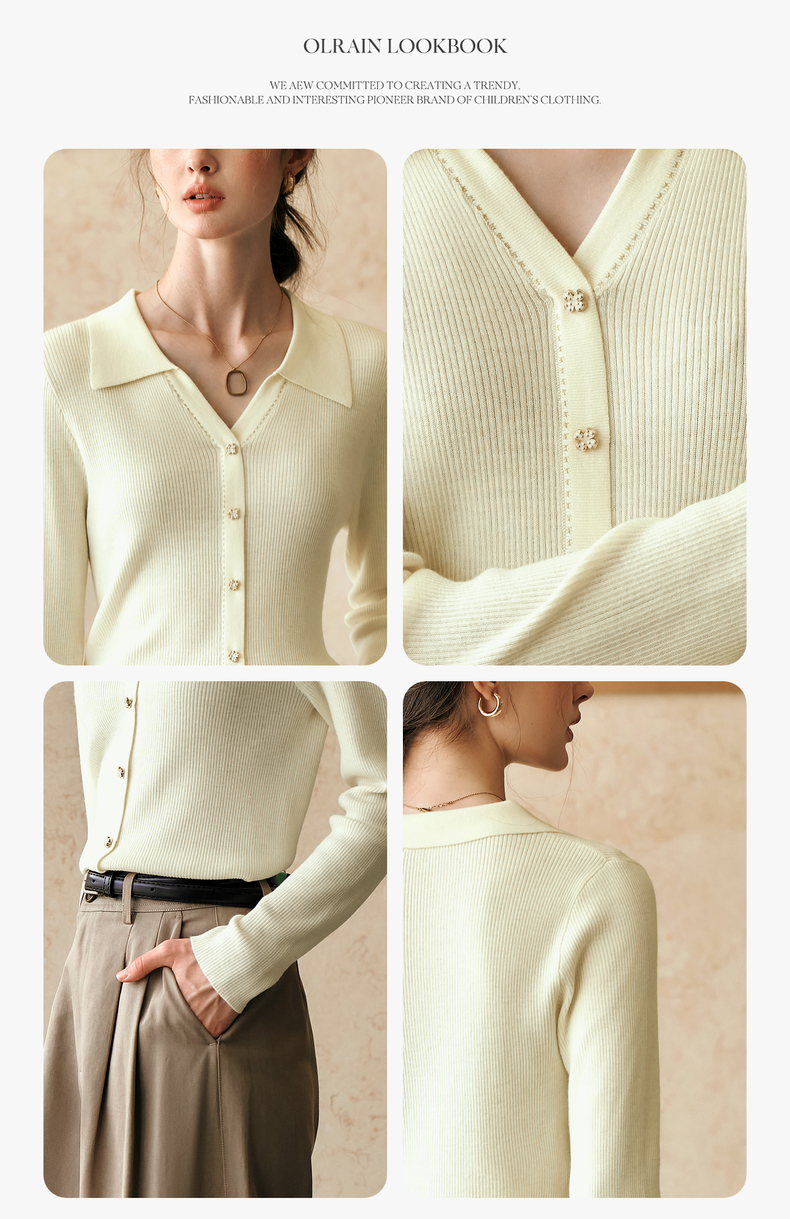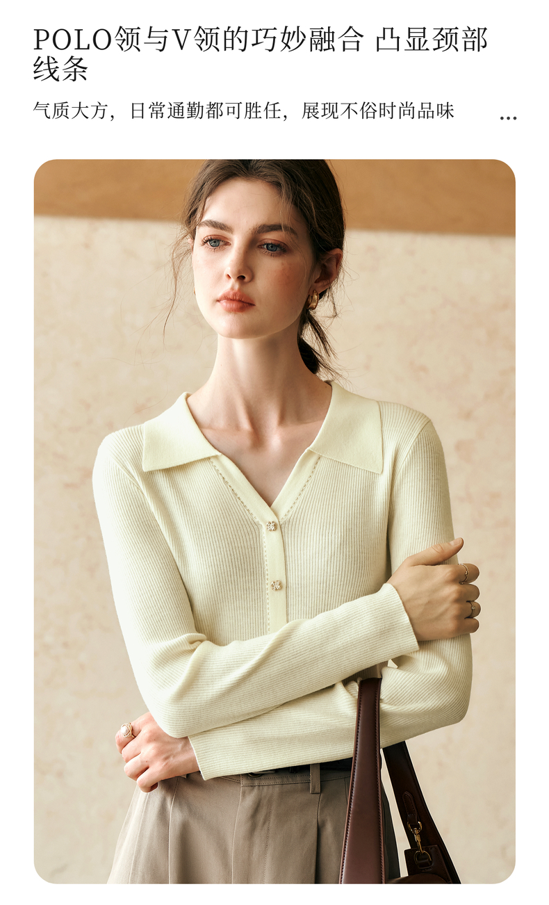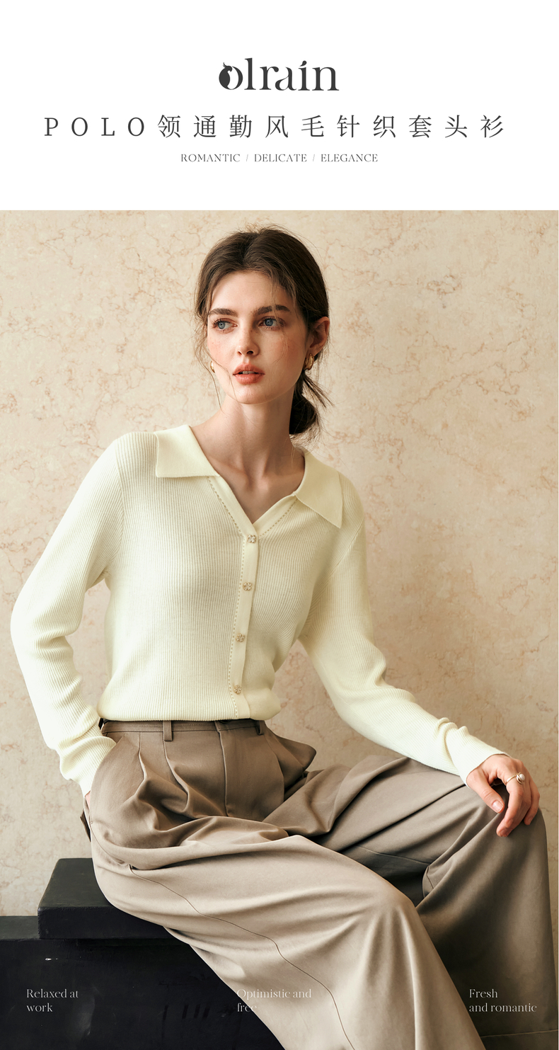 OLrain欧芮儿杏白色针织衫女冬季2024年新款POLO领通勤套头衫
