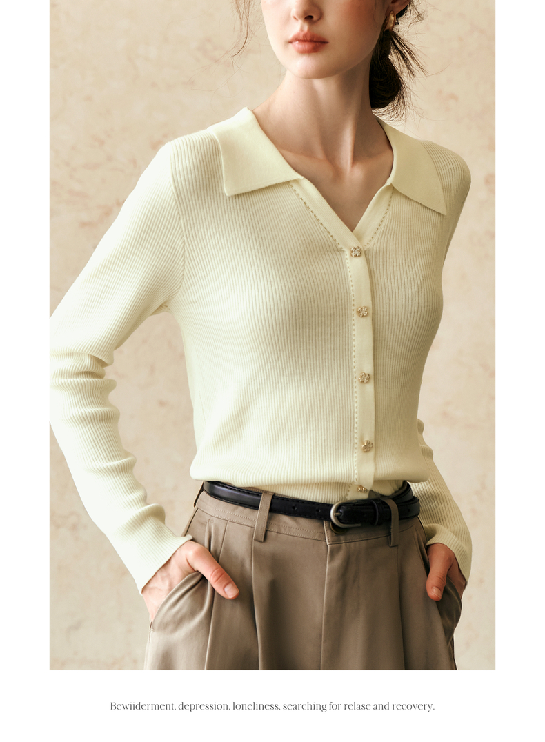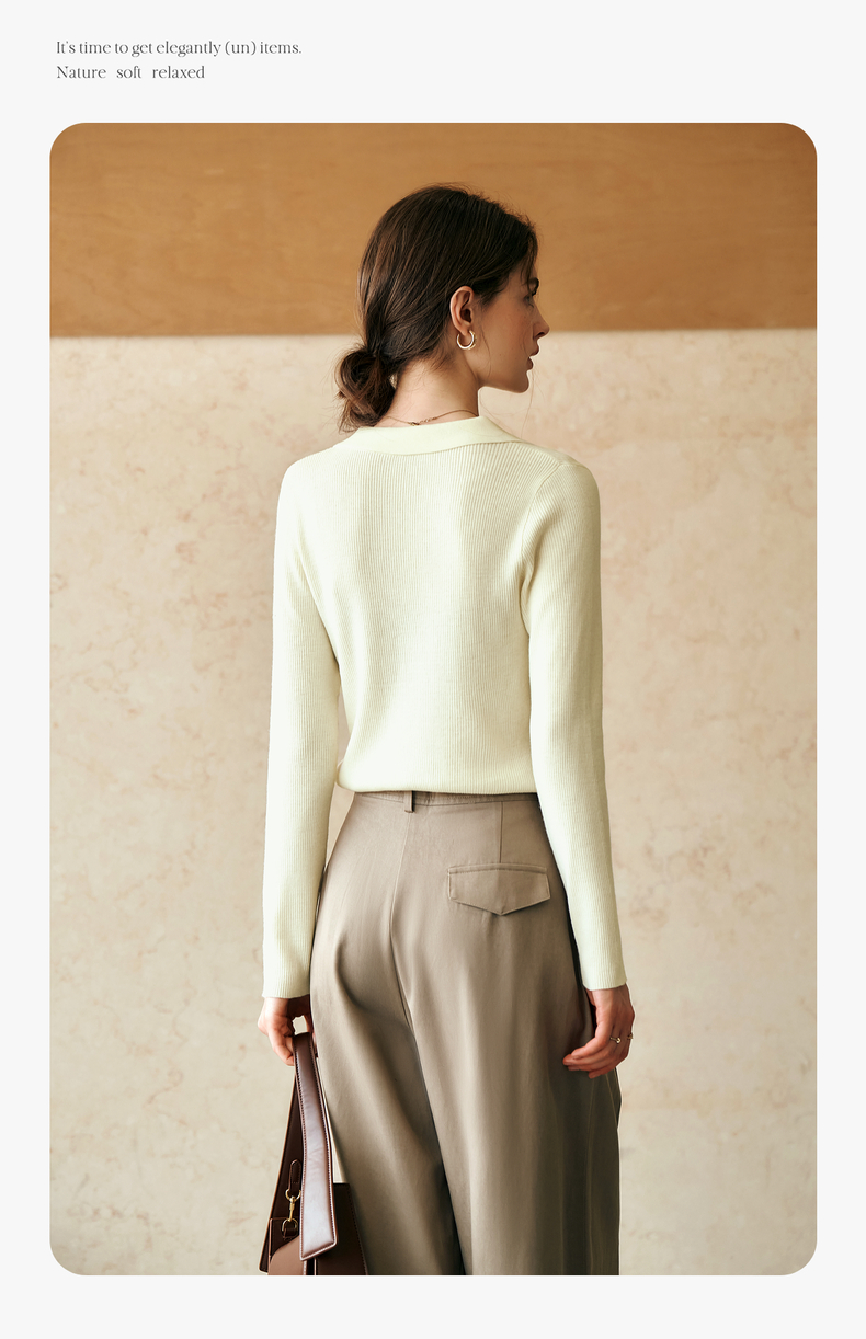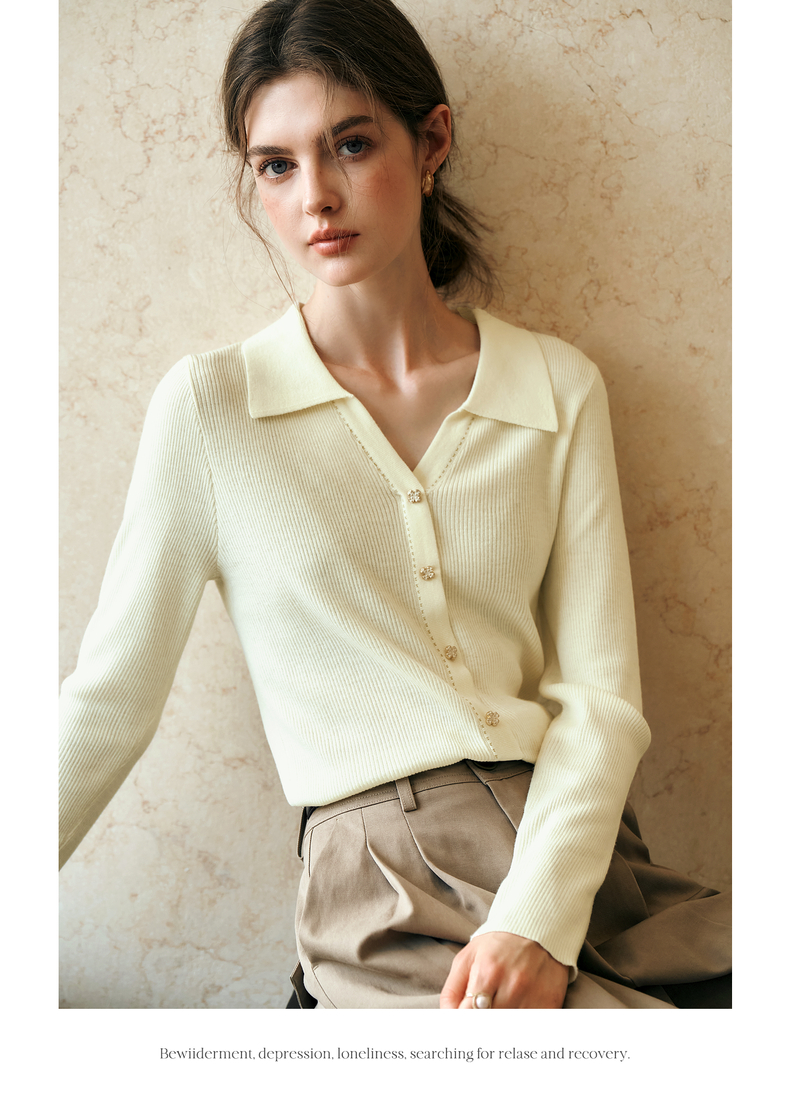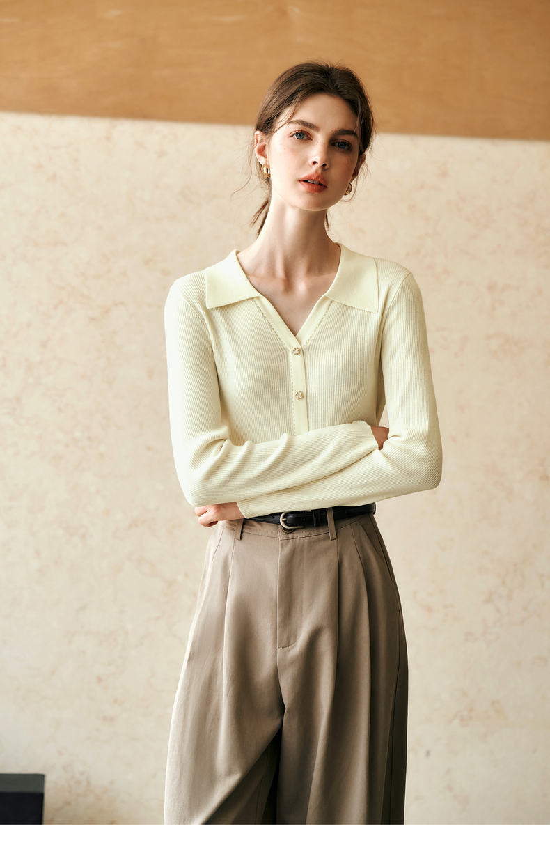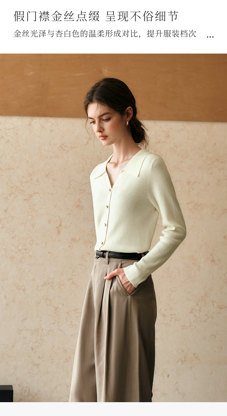 OLrain欧芮儿杏白色针织衫女冬季2024年新款POLO领通勤套头衫