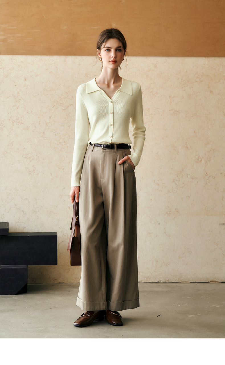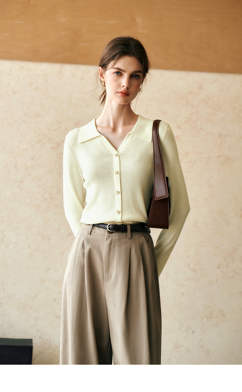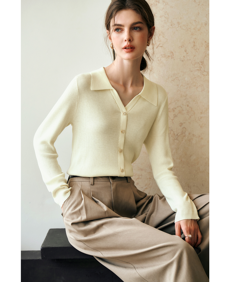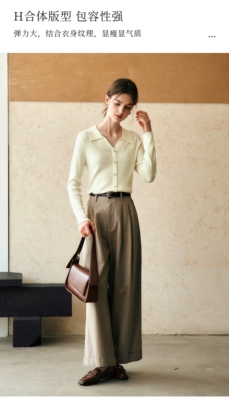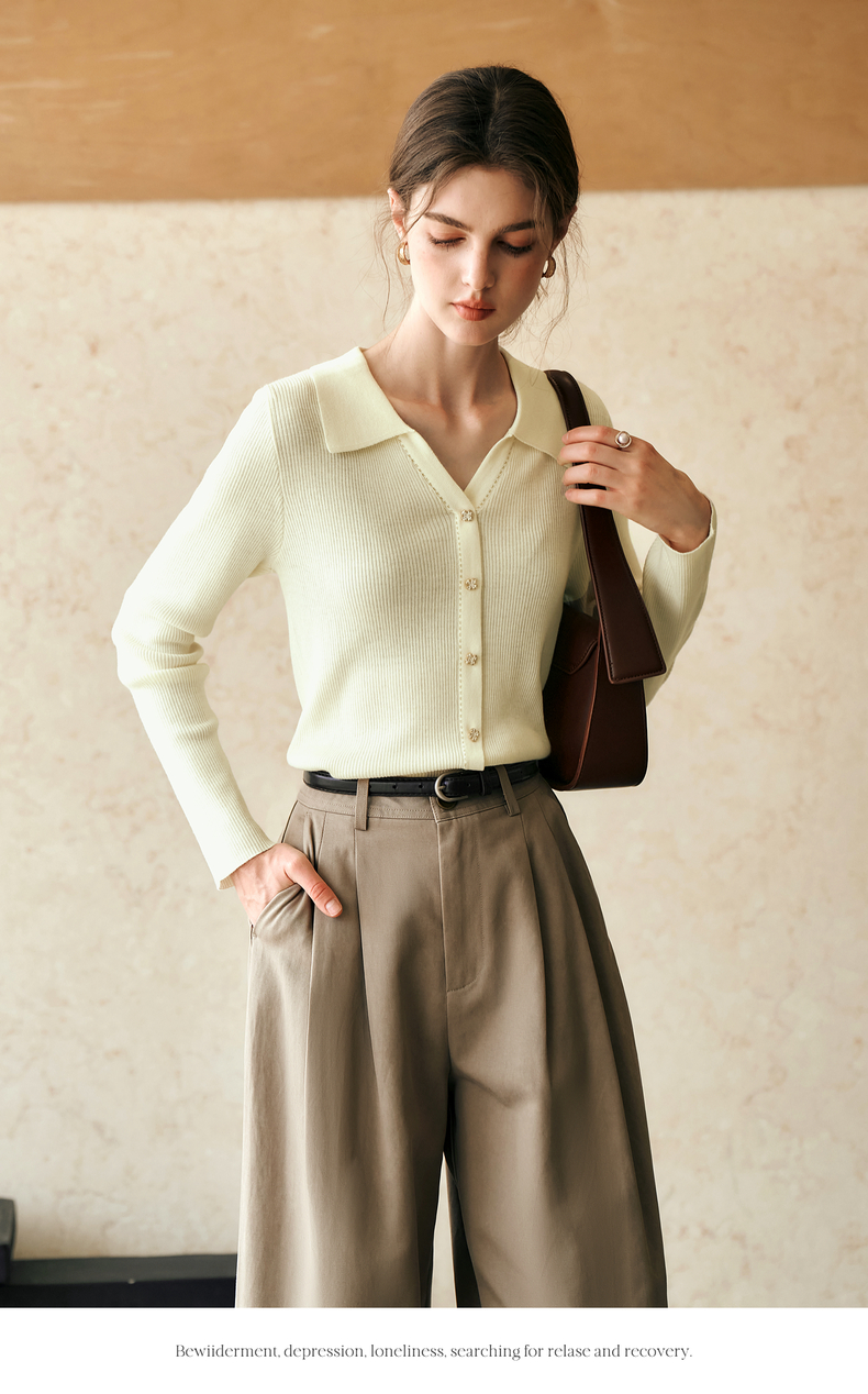 OLrain欧芮儿杏白色针织衫女冬季2024年新款POLO领通勤套头衫