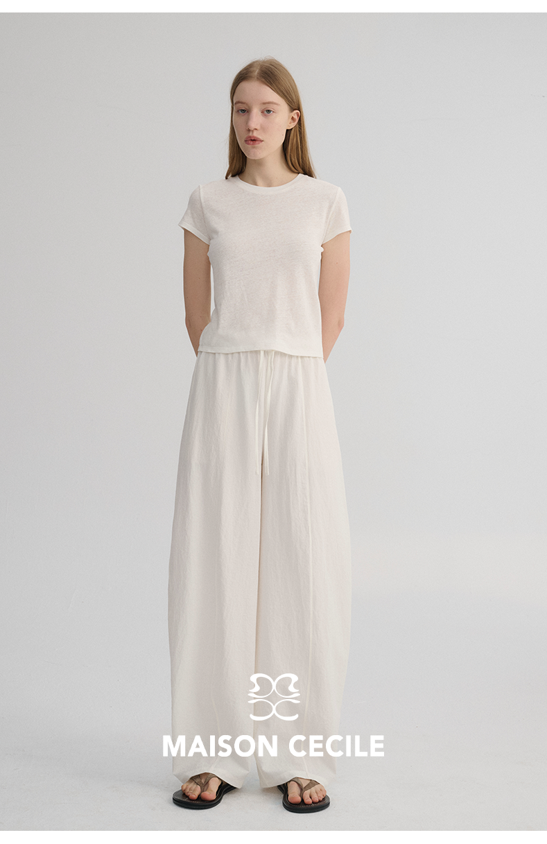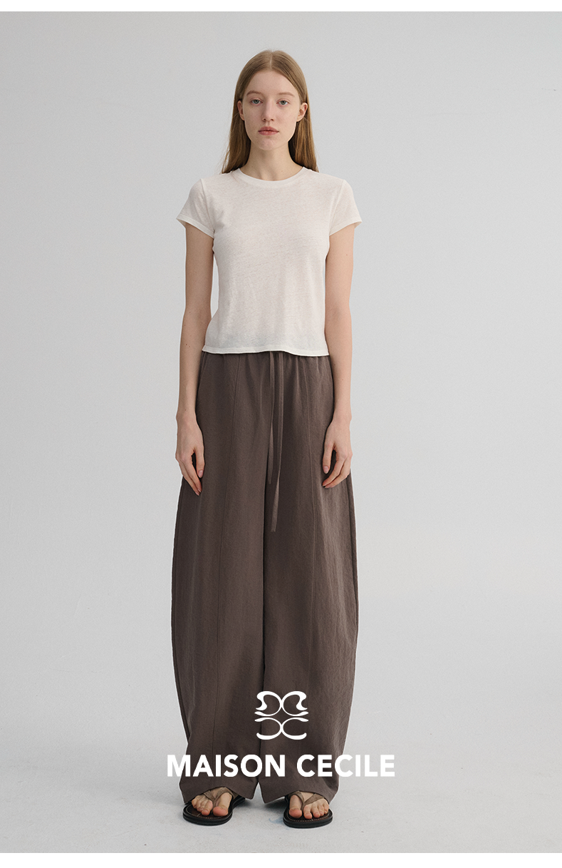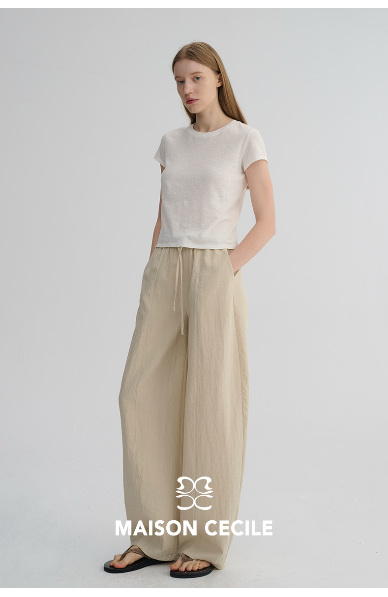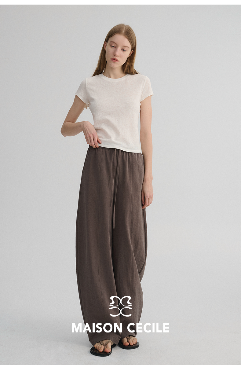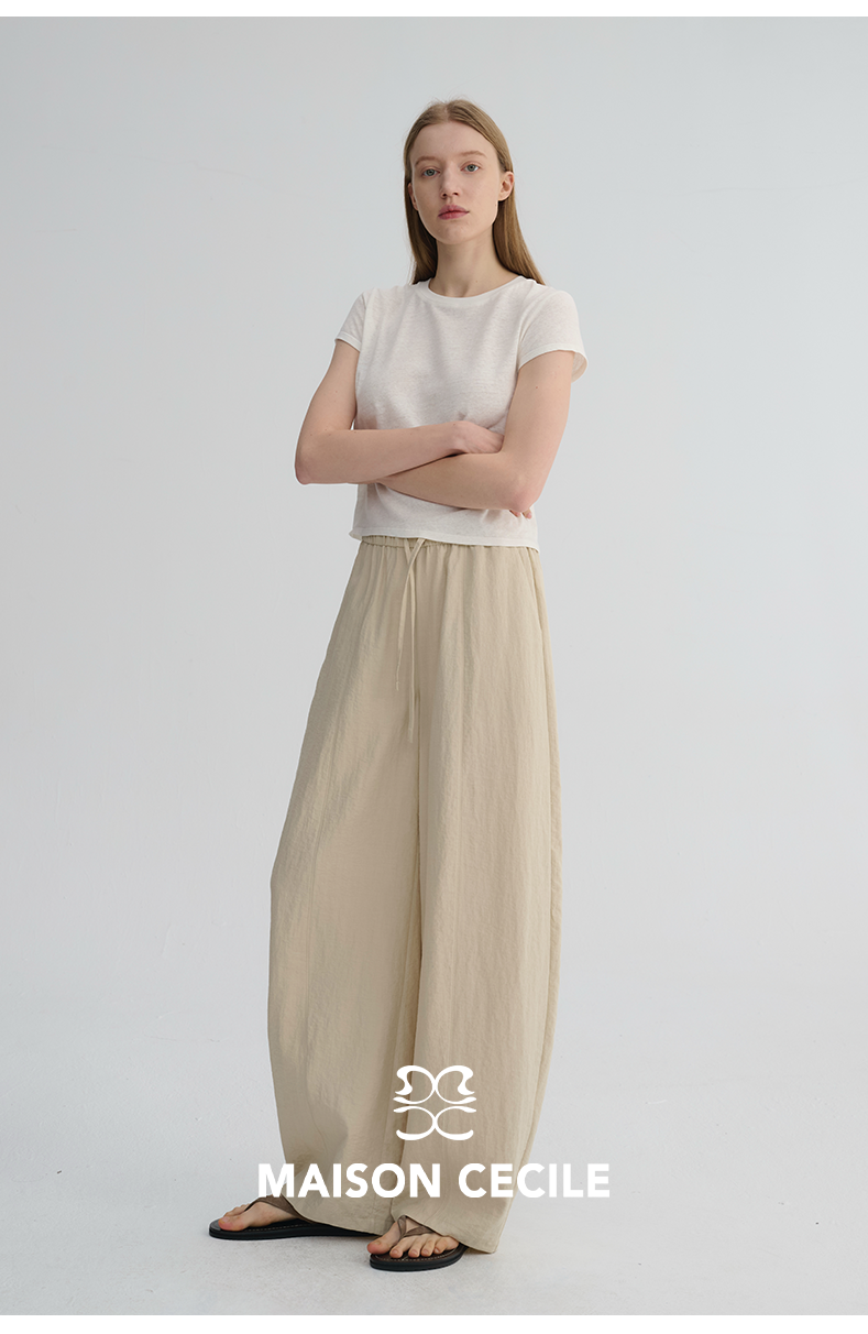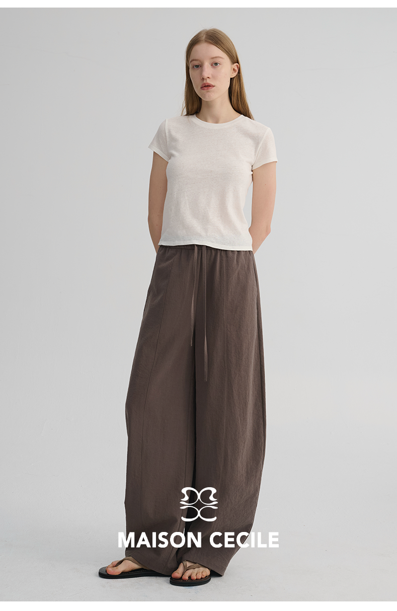 MAISON CECILE 五色|天丝醋酸肌理感踩筋设计显瘦抽绳弧形裤