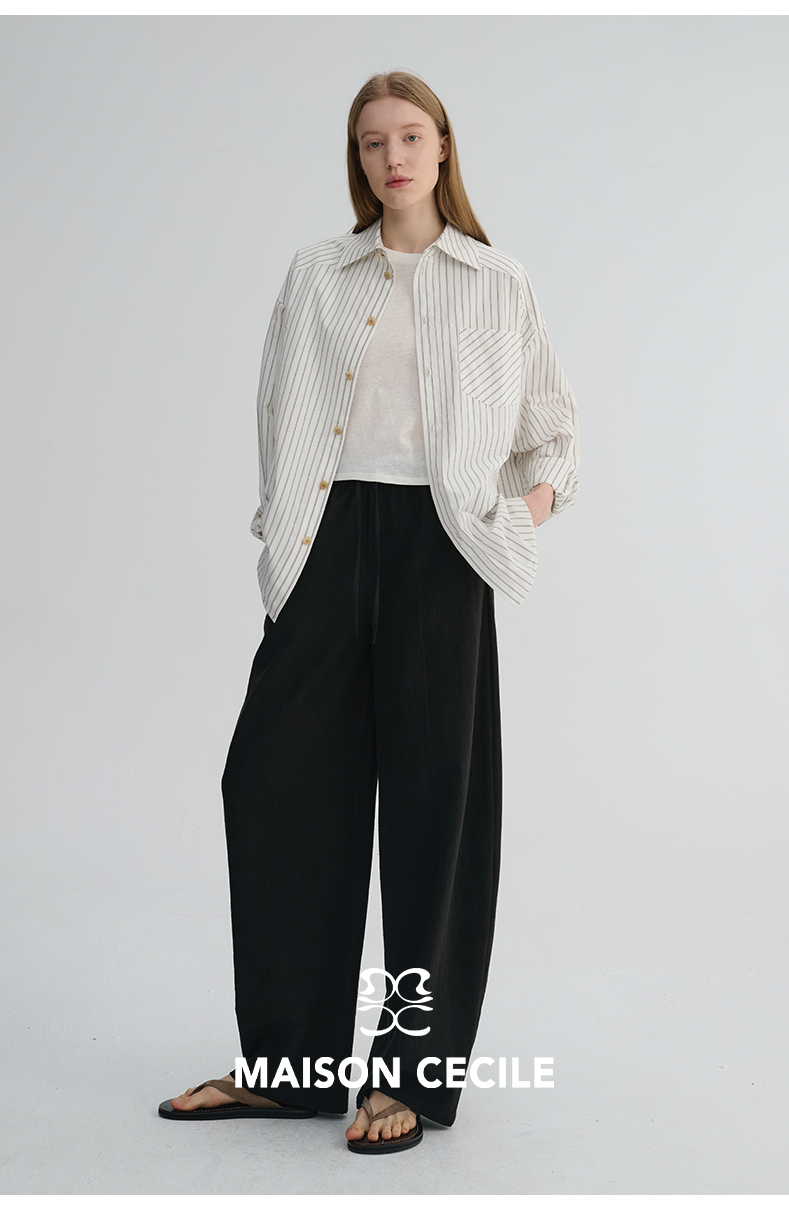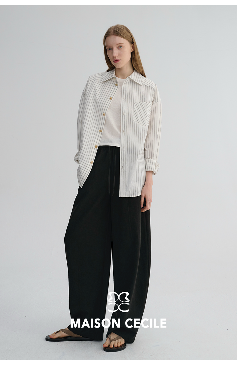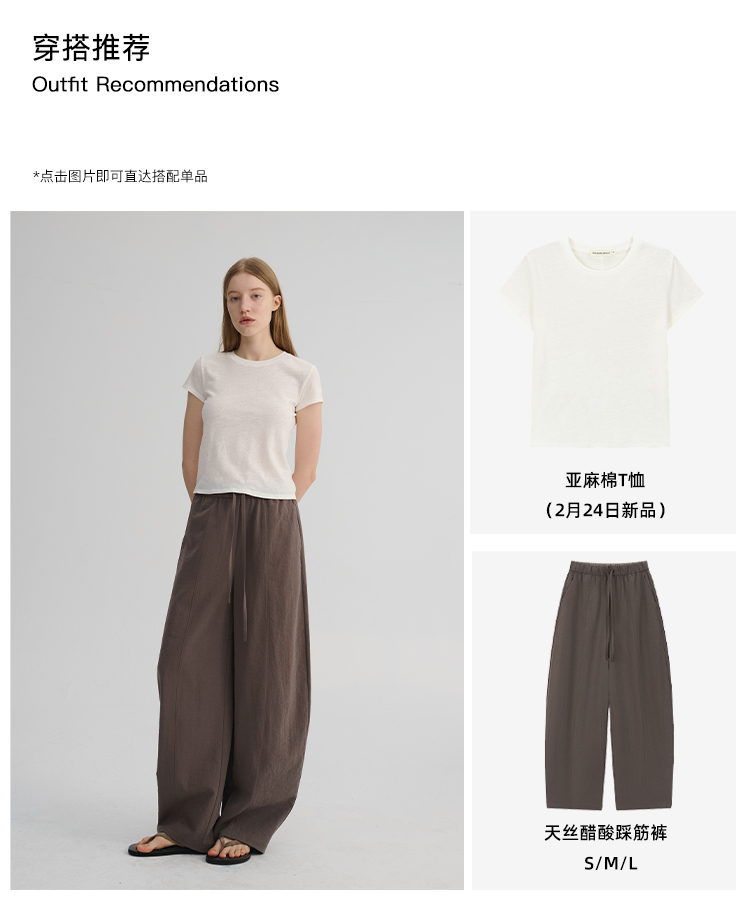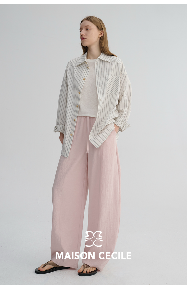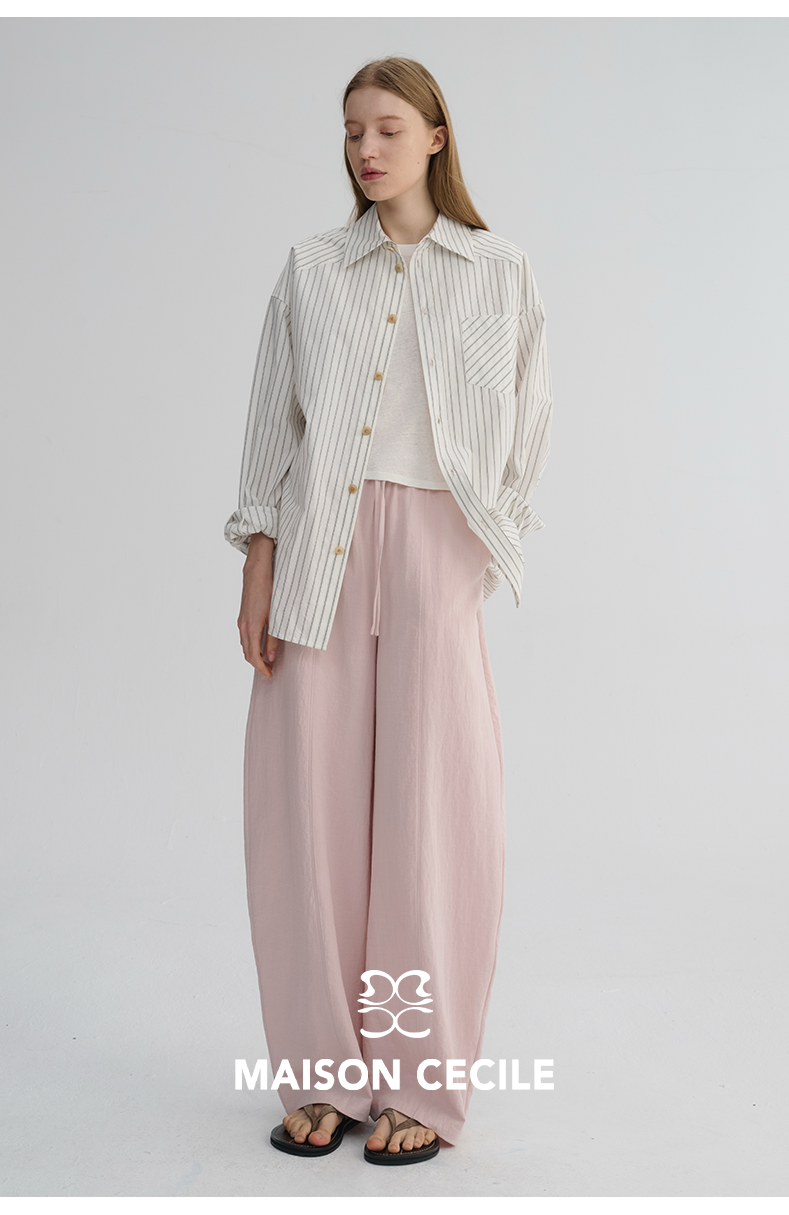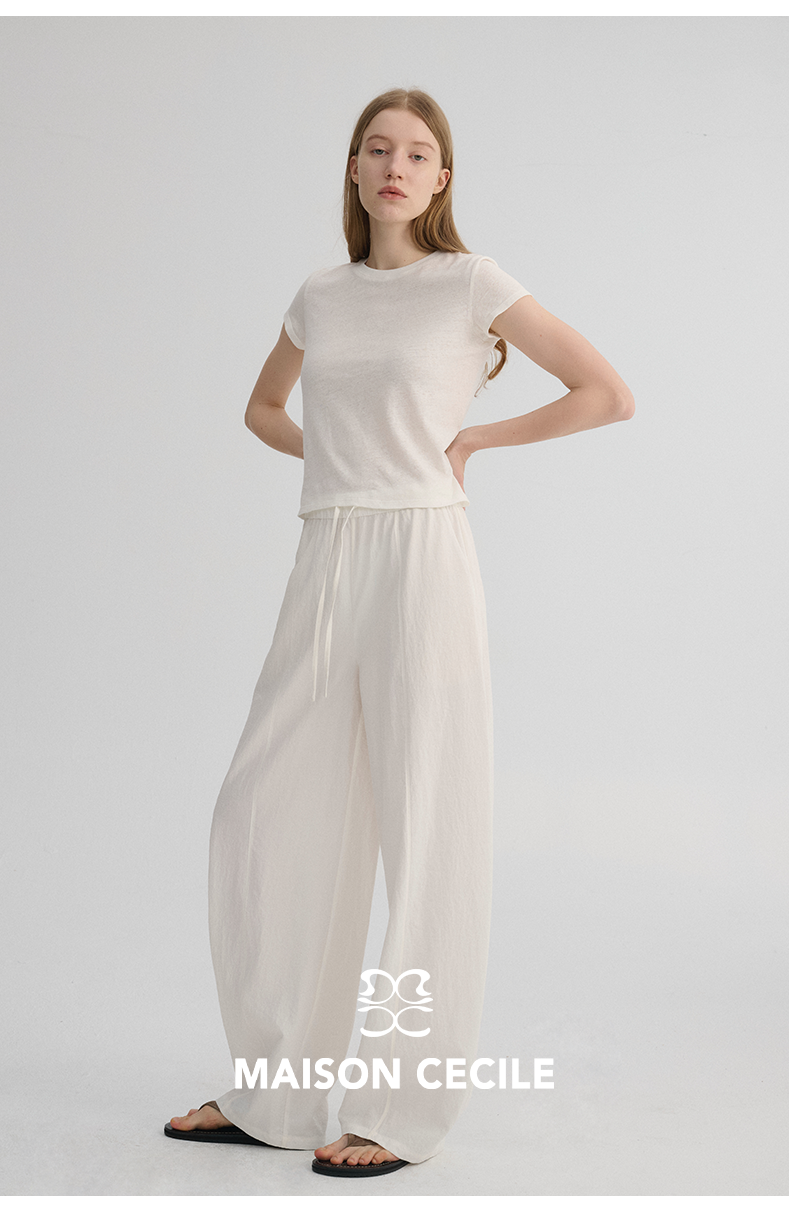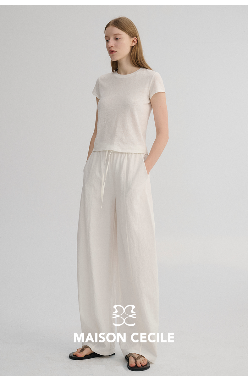 MAISON CECILE 五色|天丝醋酸肌理感踩筋设计显瘦抽绳弧形裤