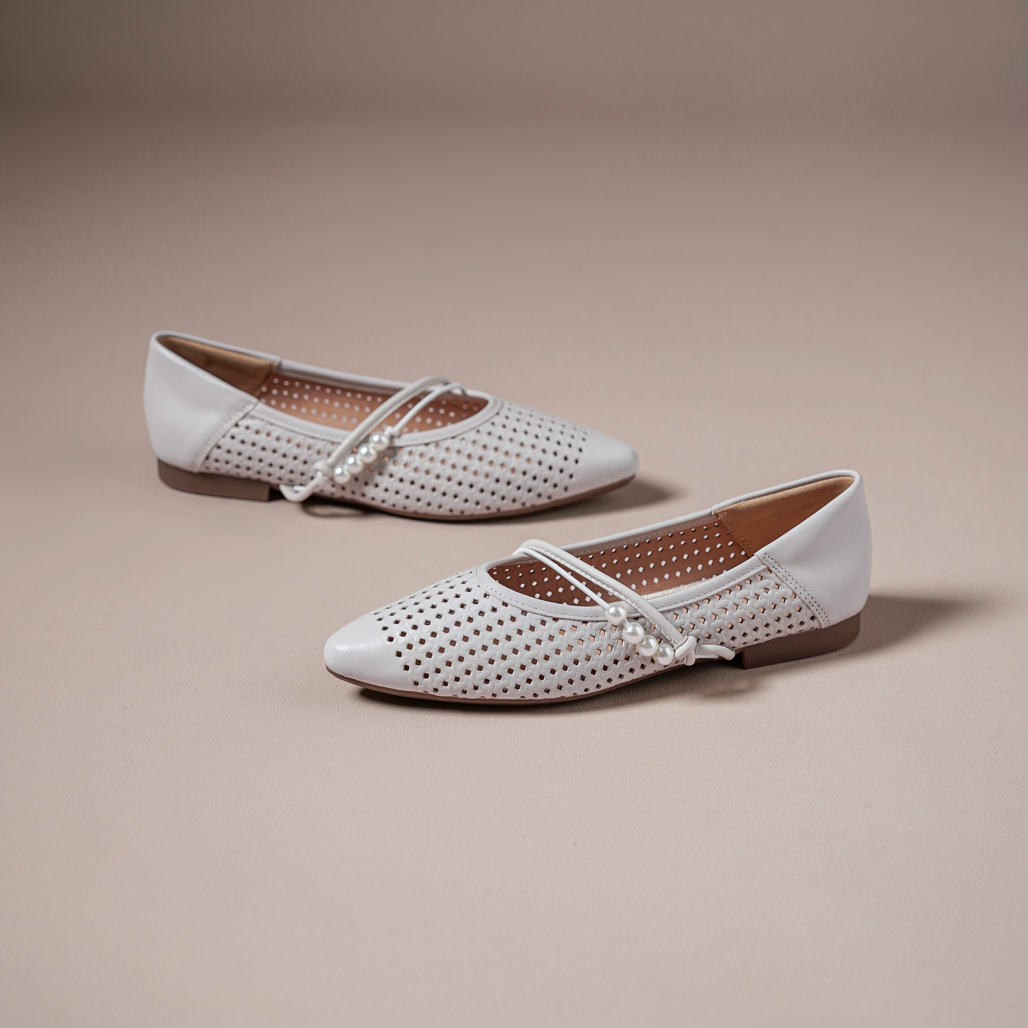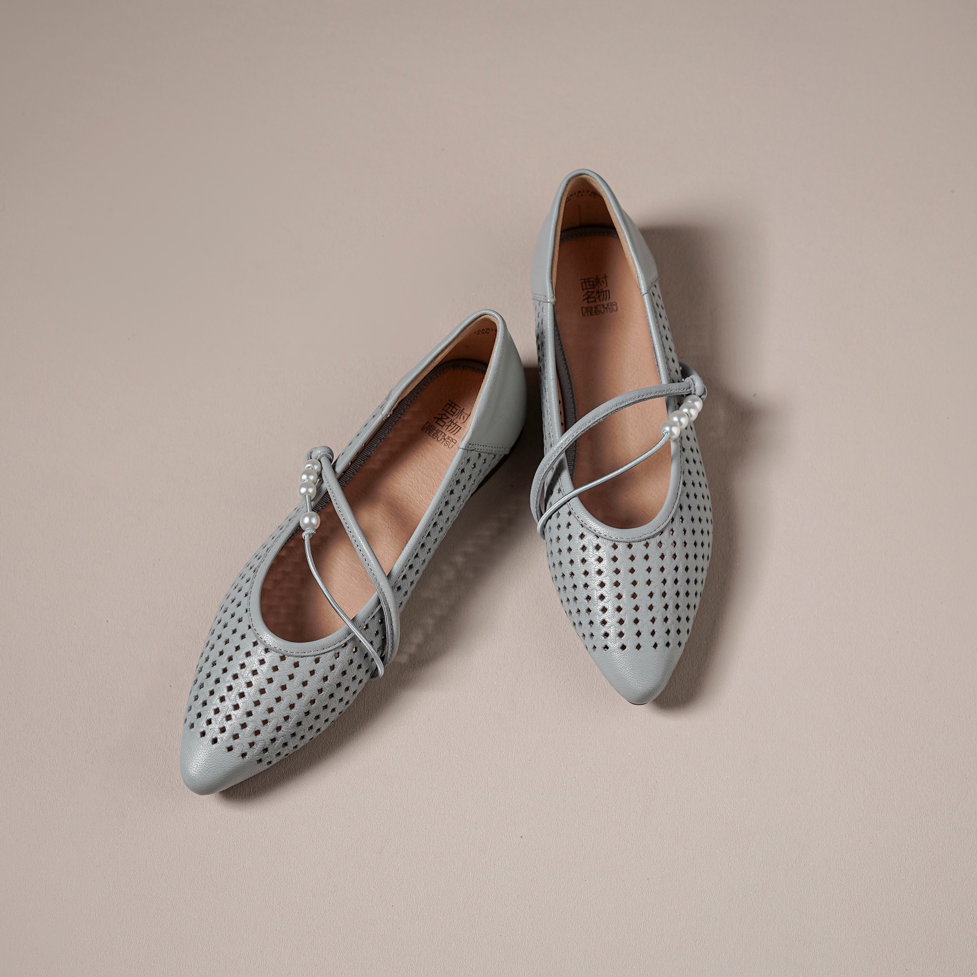 【羊皮革】西村名物2026年夏季新款猪皮内里内垫舒适平跟小尖头镂空洞洞空鞋X26AH18171