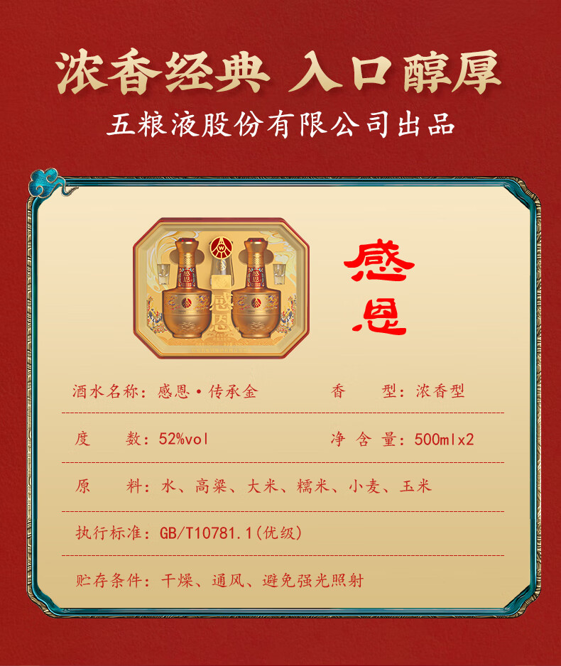 52度五粮液感恩礼盒装浓香型1*2*500ML