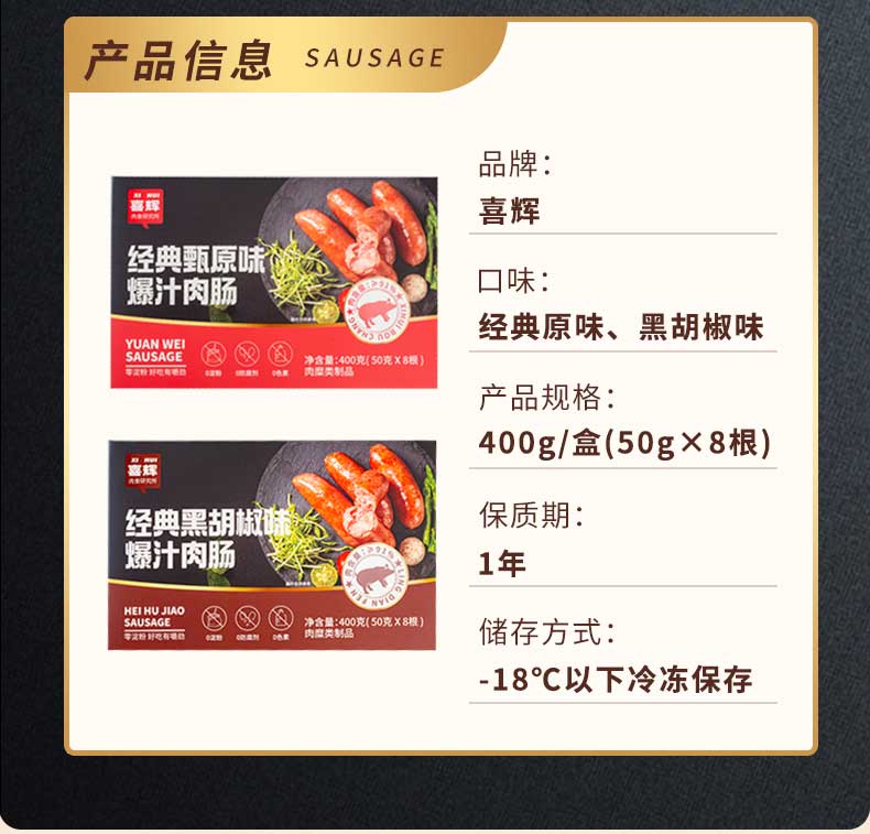 喜辉经典爆汁烤肠 黄金肥瘦比 一口爆汁 满口留香