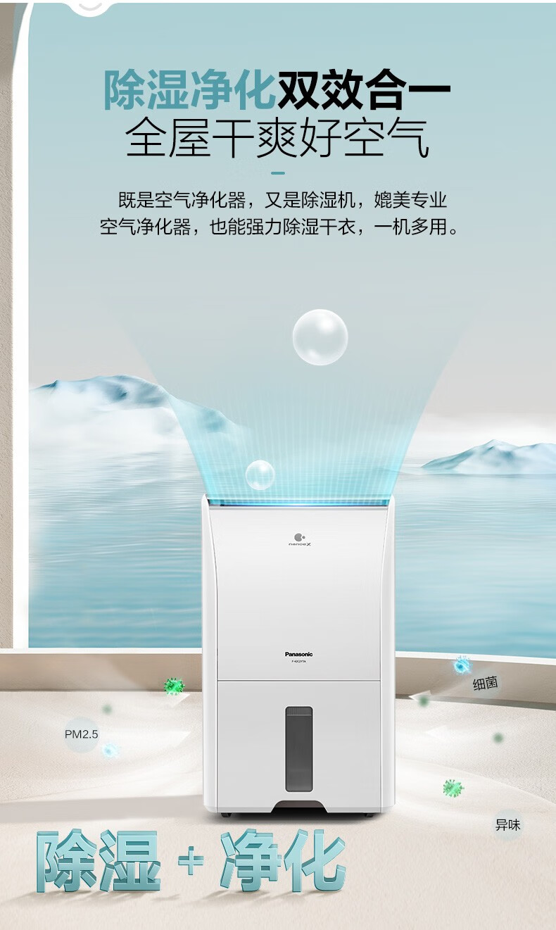 【年底大促 特价机】松下除湿机 21LPM2.5感应纳诺怡除湿净化 2合1 F-42C2YTA