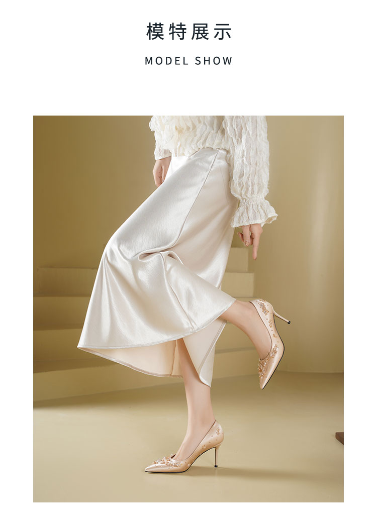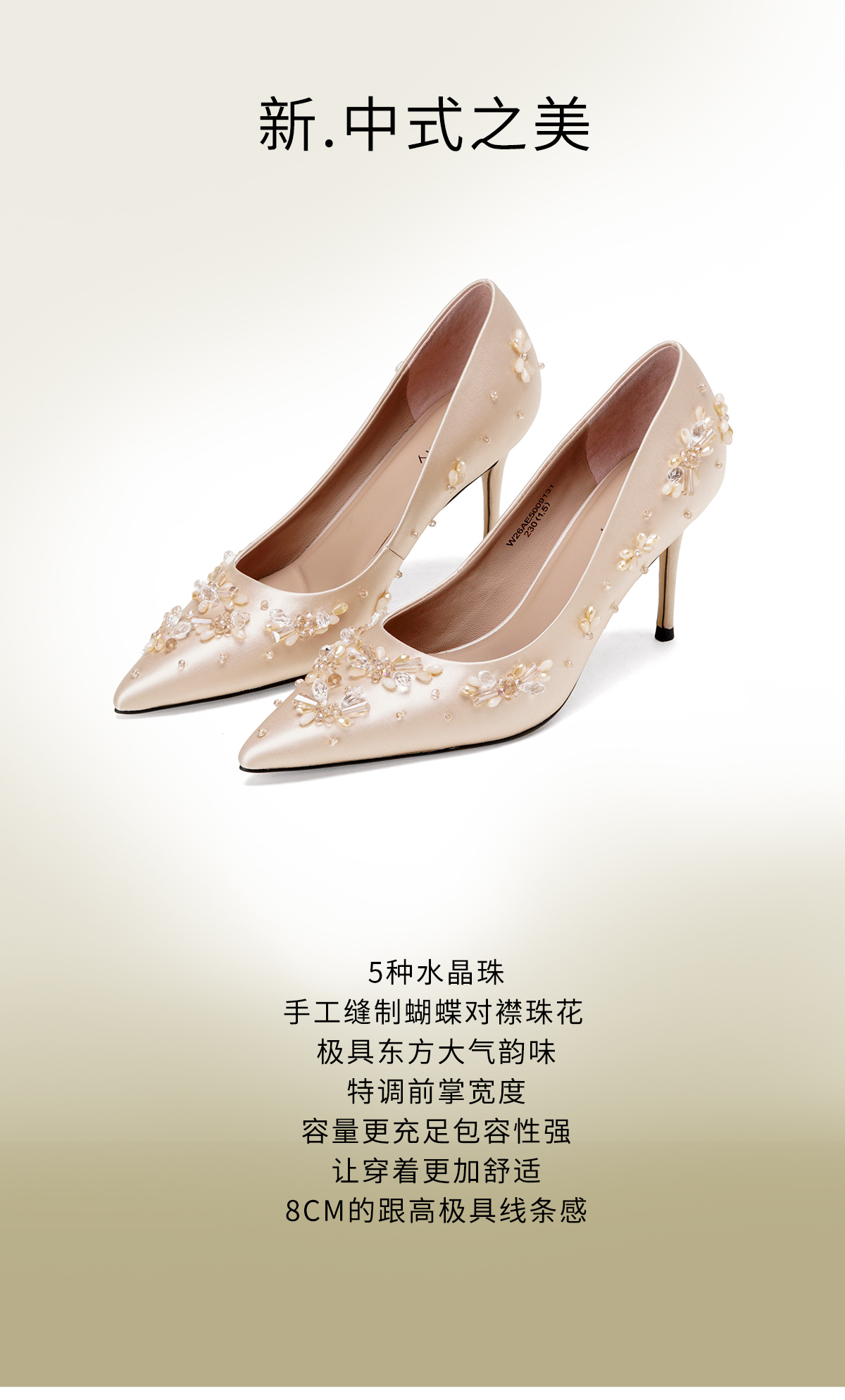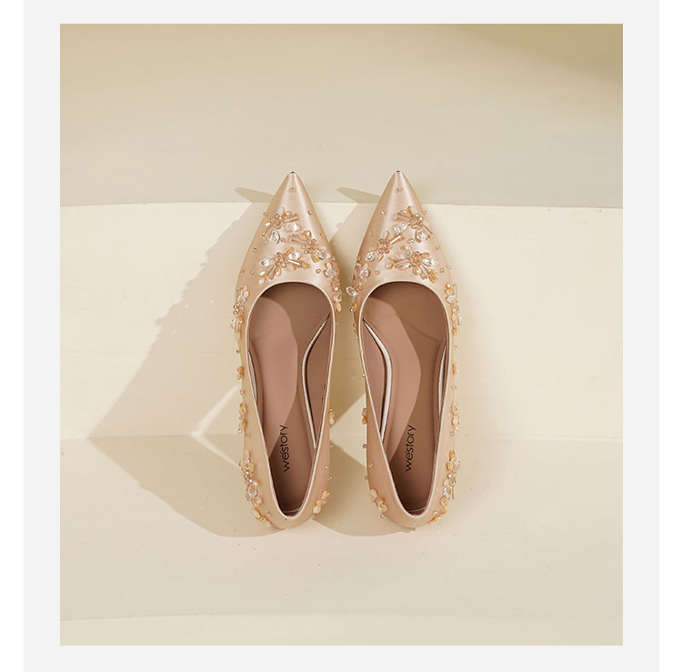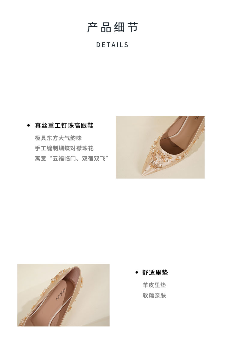 Westory2026年春季尖头高跟真丝布手工缝珠花东方韵味晚宴鞋婚鞋浅口单鞋W26AE50091