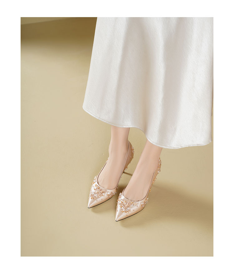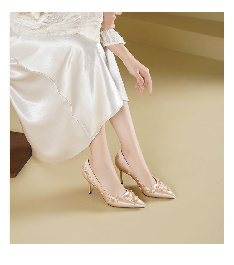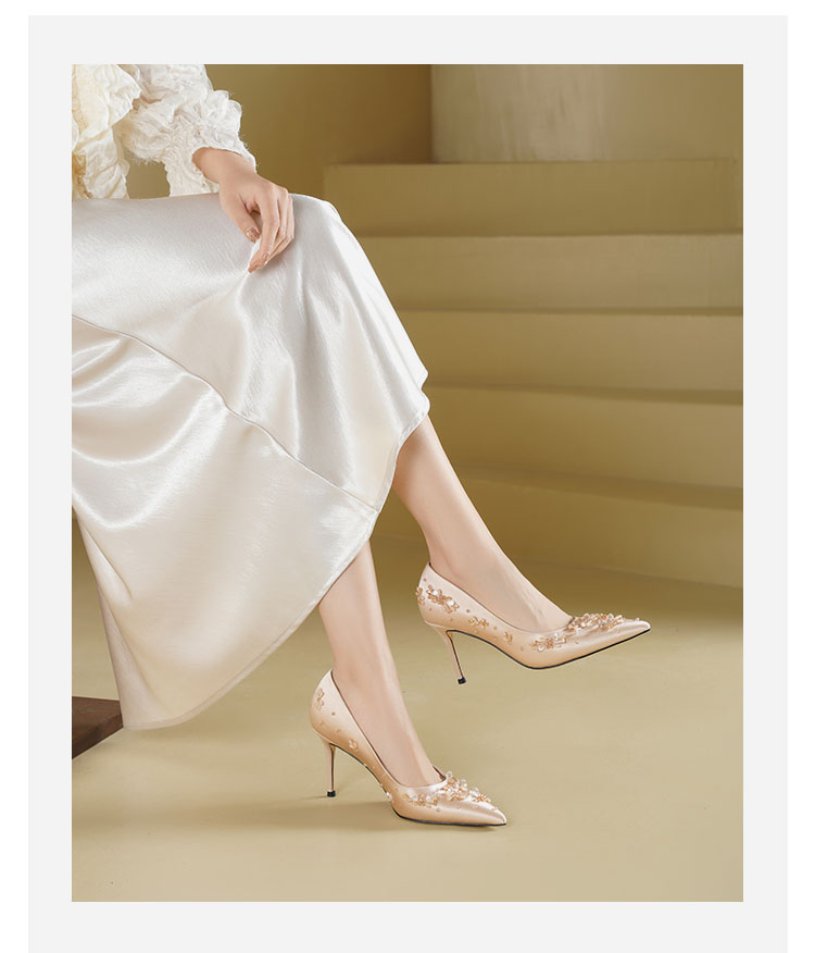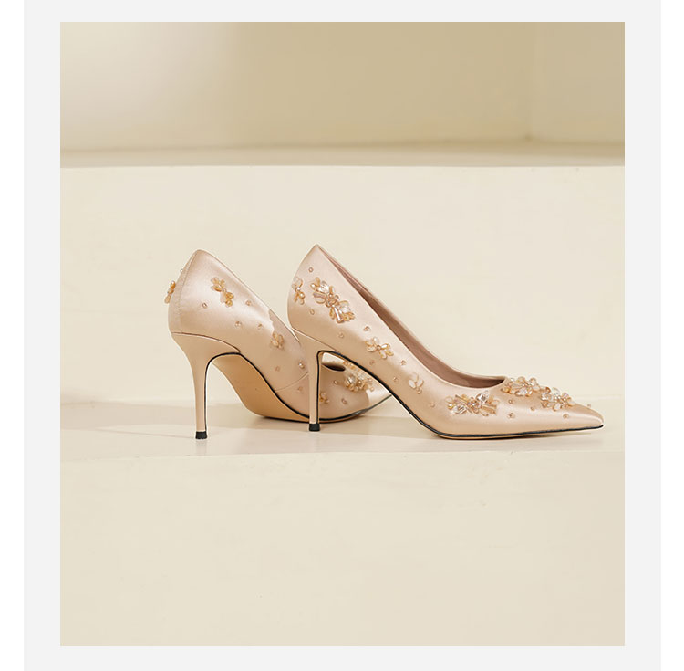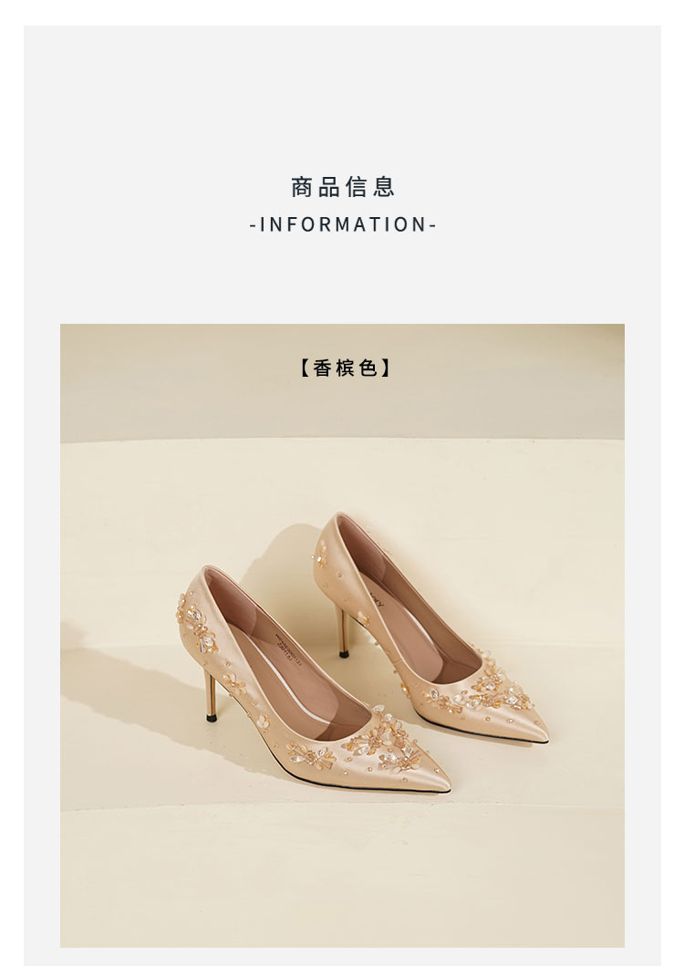 Westory2026年春季尖头高跟真丝布手工缝珠花东方韵味晚宴鞋婚鞋浅口单鞋W26AE50091