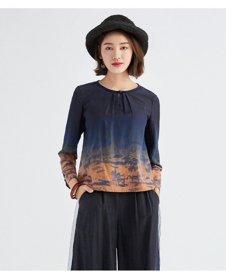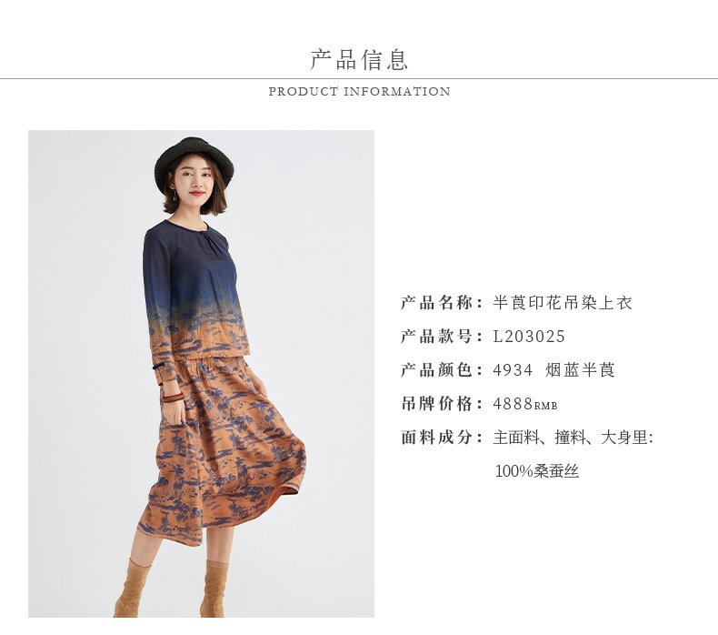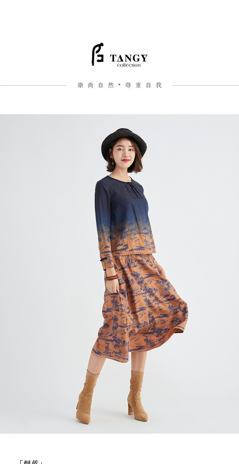 TANGY Collection / 天意精品 烟蓝系列 半莨印花吊染单上衣