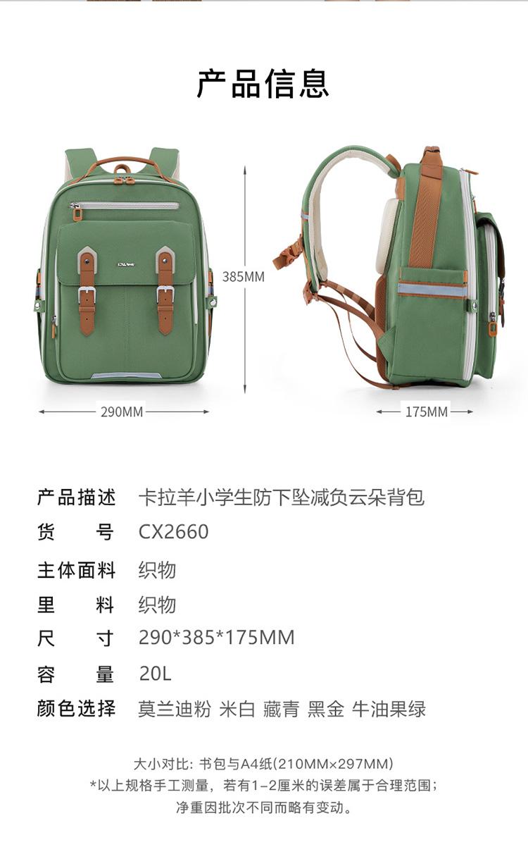 【3-6年级】卡拉羊减负云朵背包双肩书包 S2660
