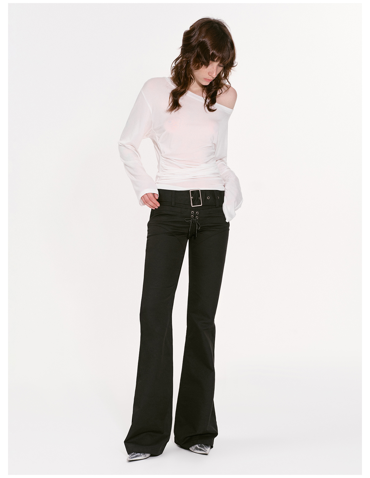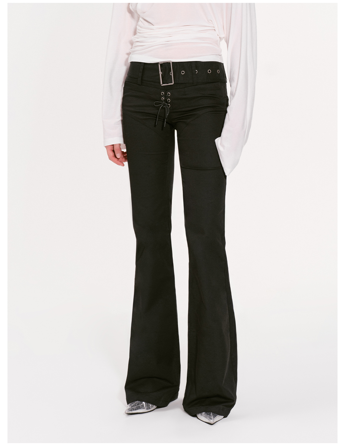 出逃赤岗西/24AWK106/黑色索罗娜喇叭裤