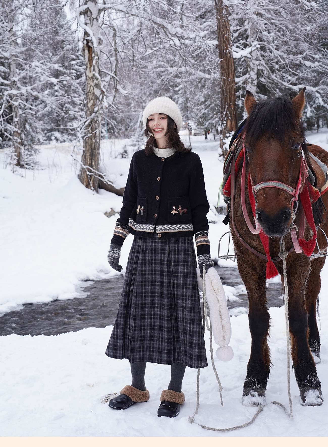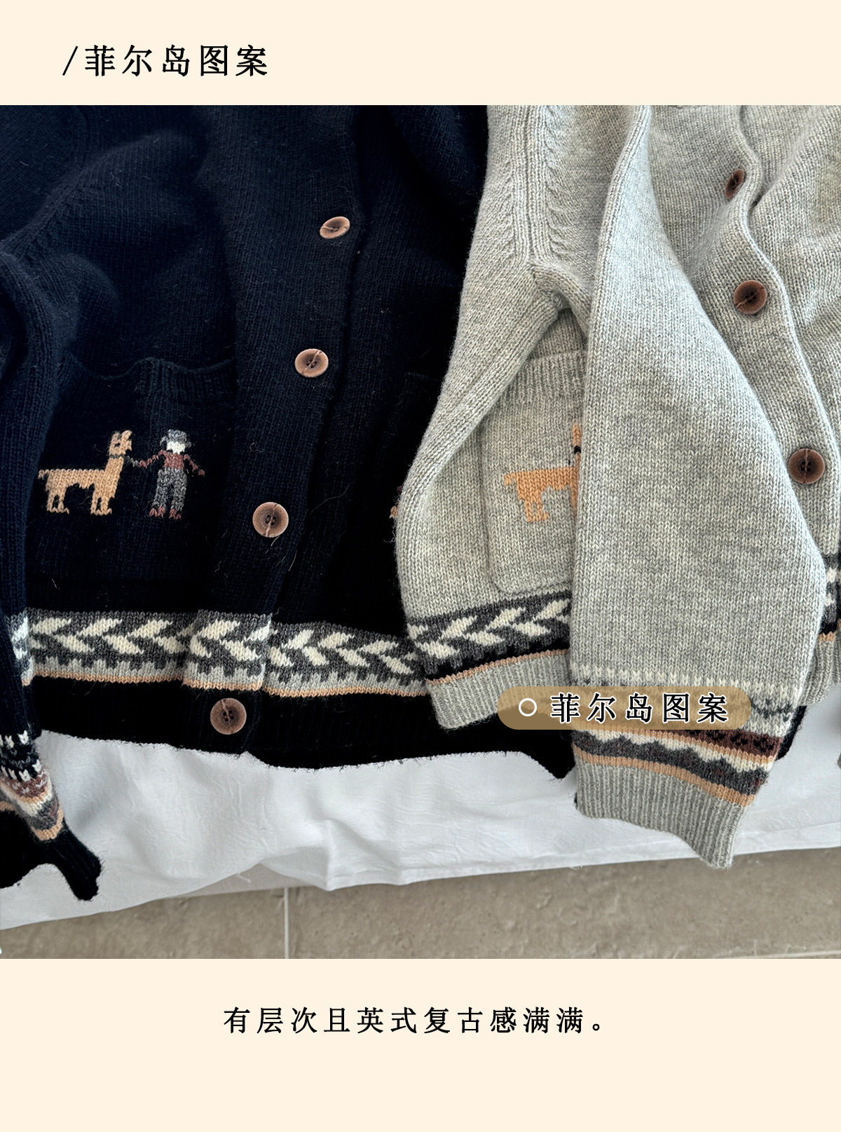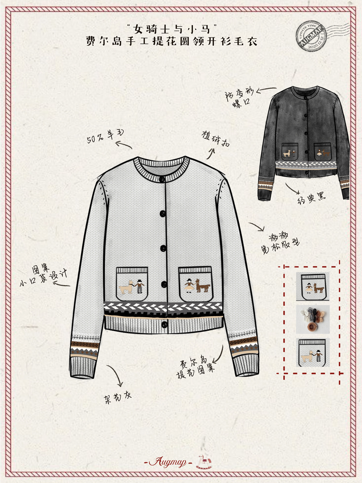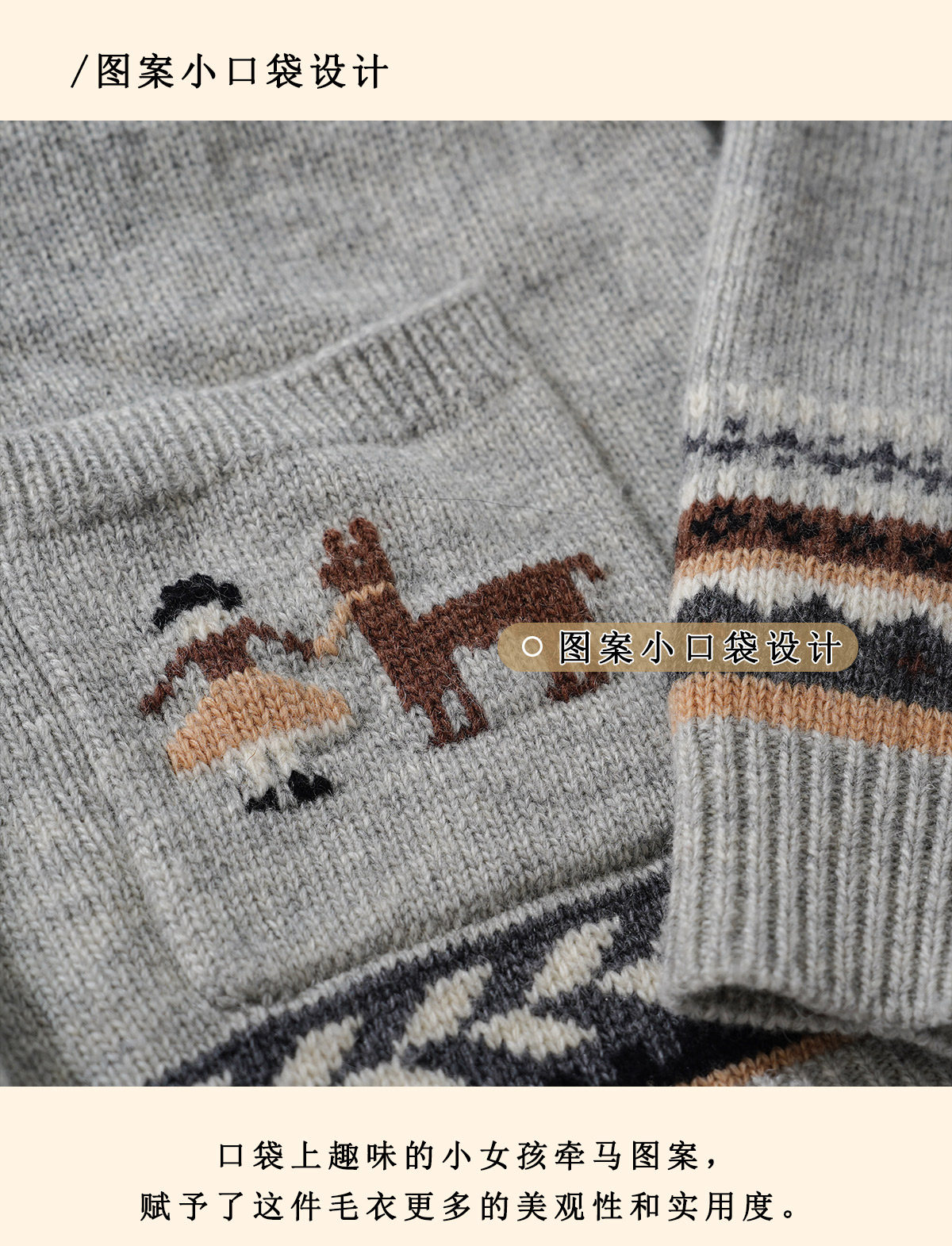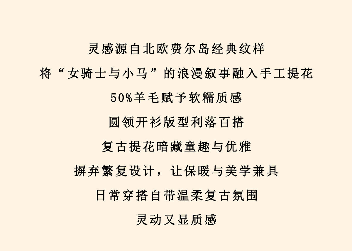 浮生八记/25D266/“女骑士与小马”费尔岛羊毛手工提花圆领开衫