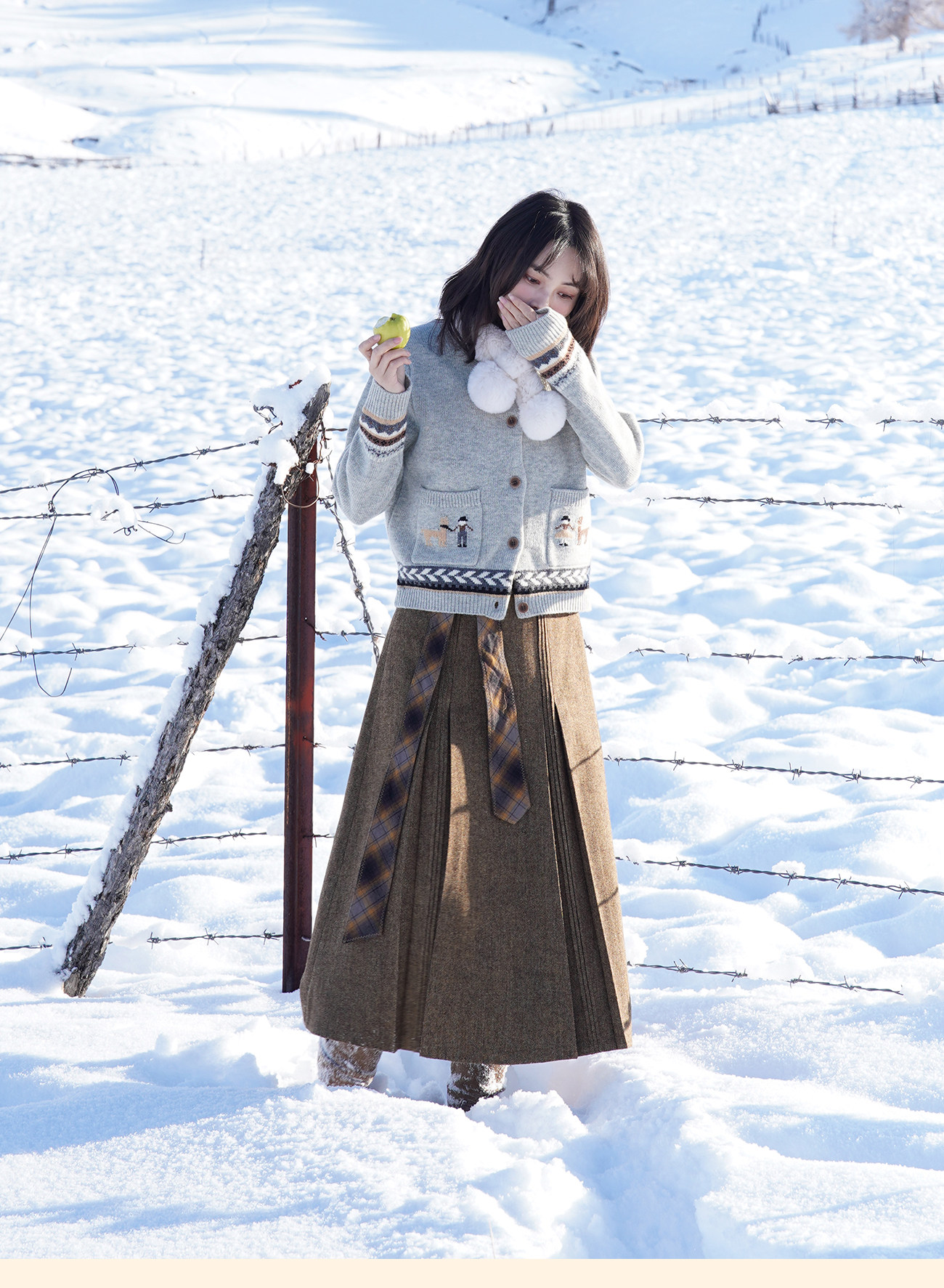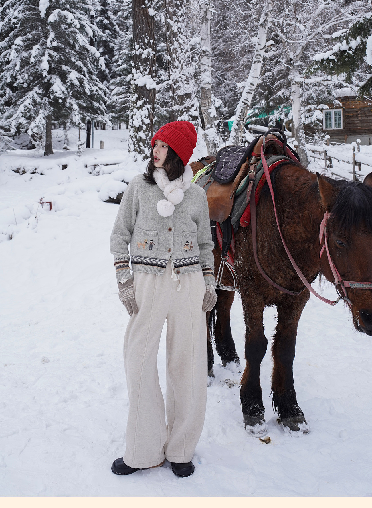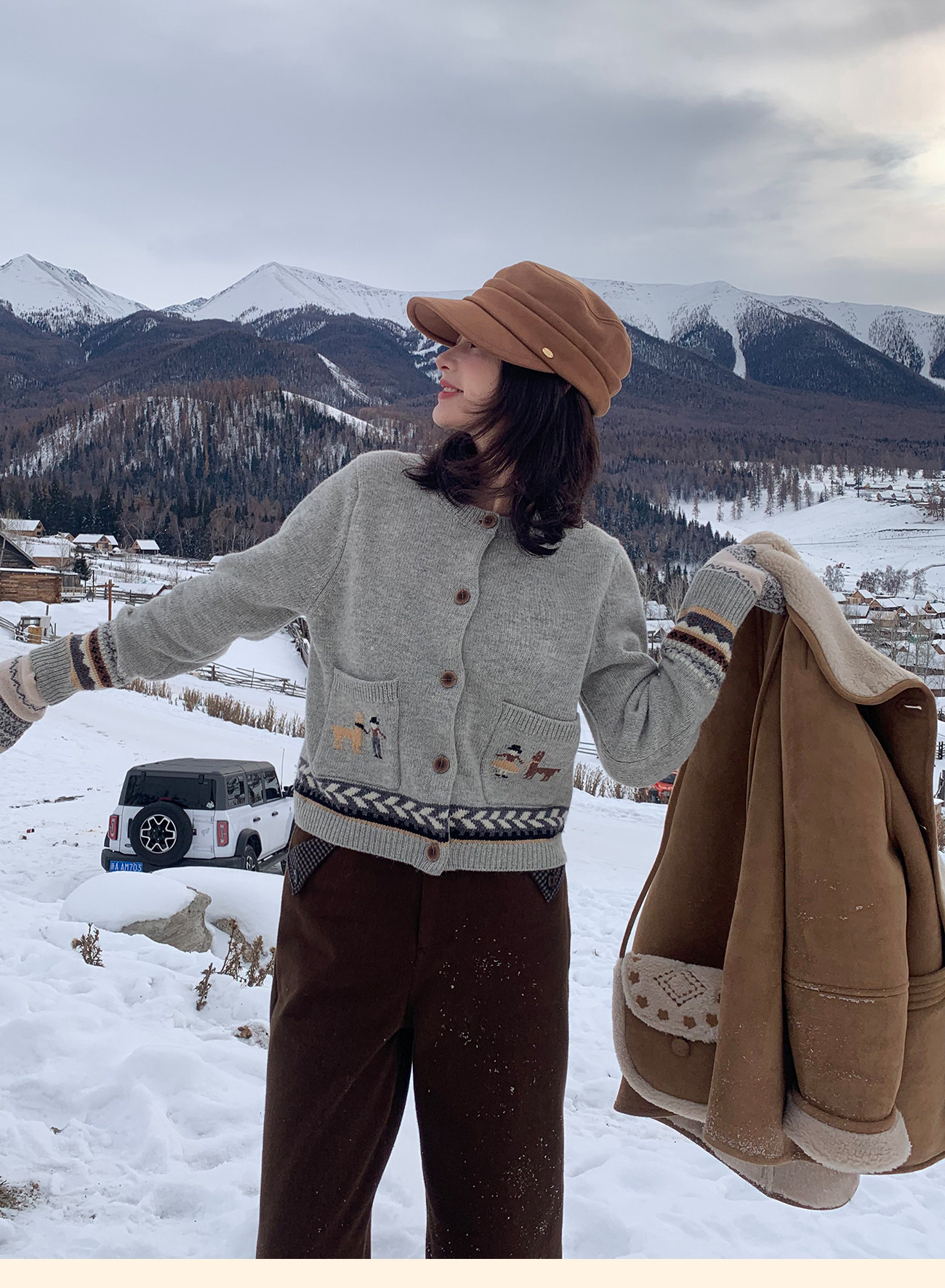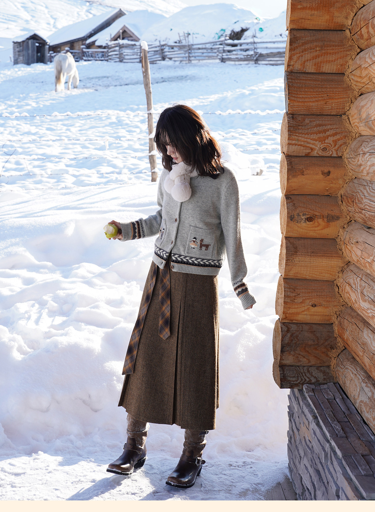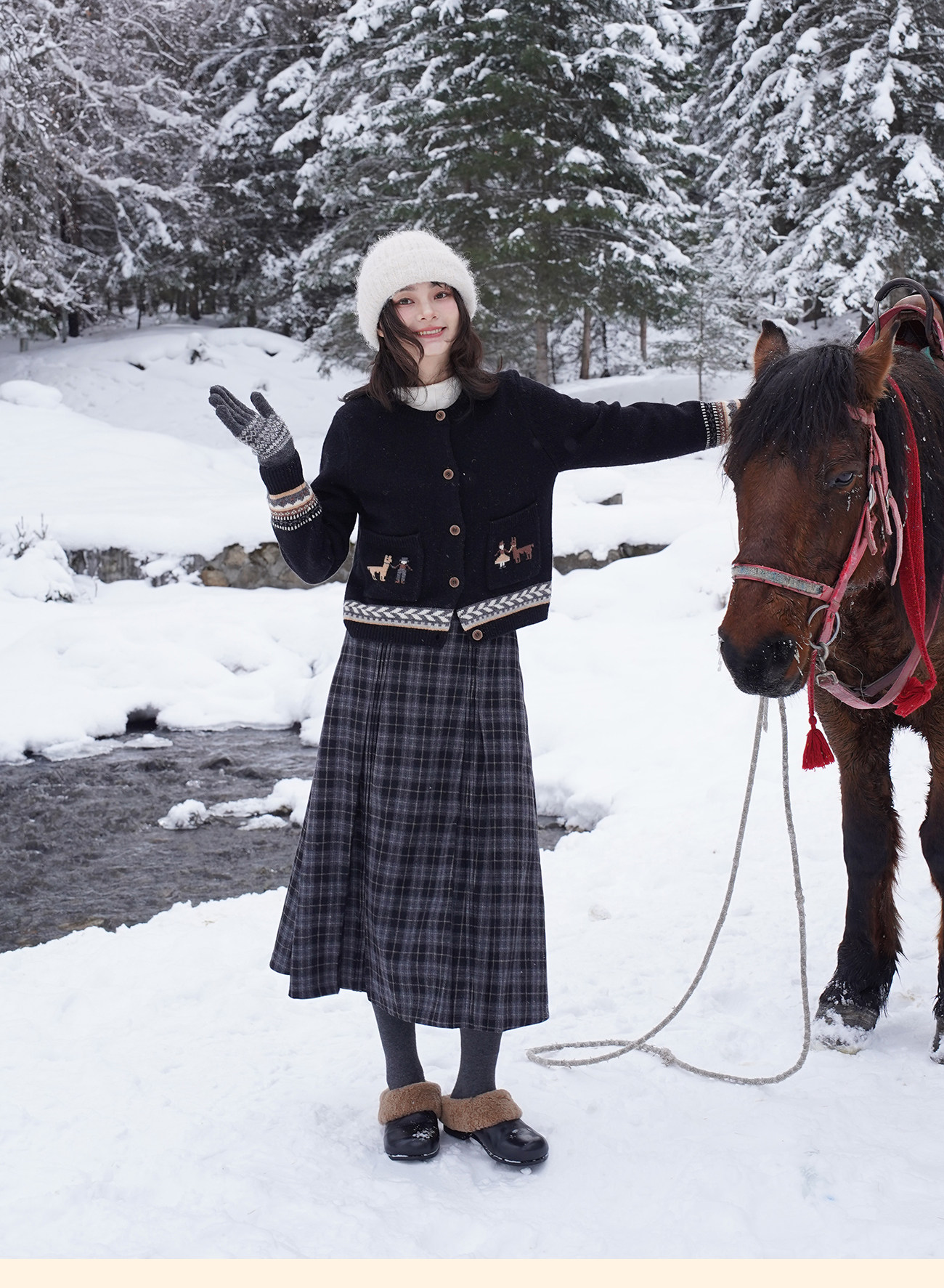 浮生八记/25D266/“女骑士与小马”费尔岛羊毛手工提花圆领开衫