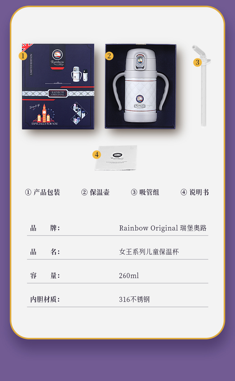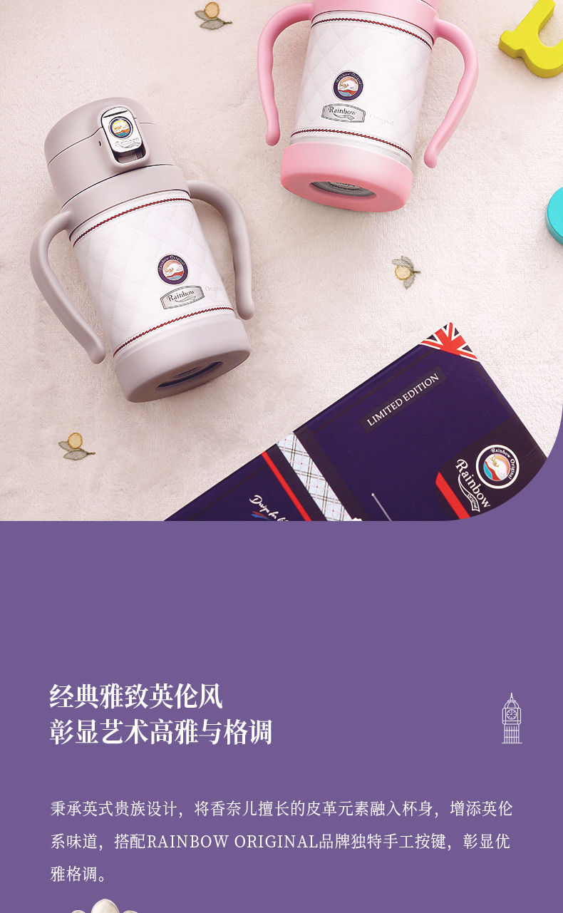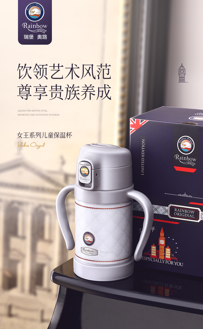 英国瑞堡rainbow儿童保温杯英伦轻奢吸管杯260ml
