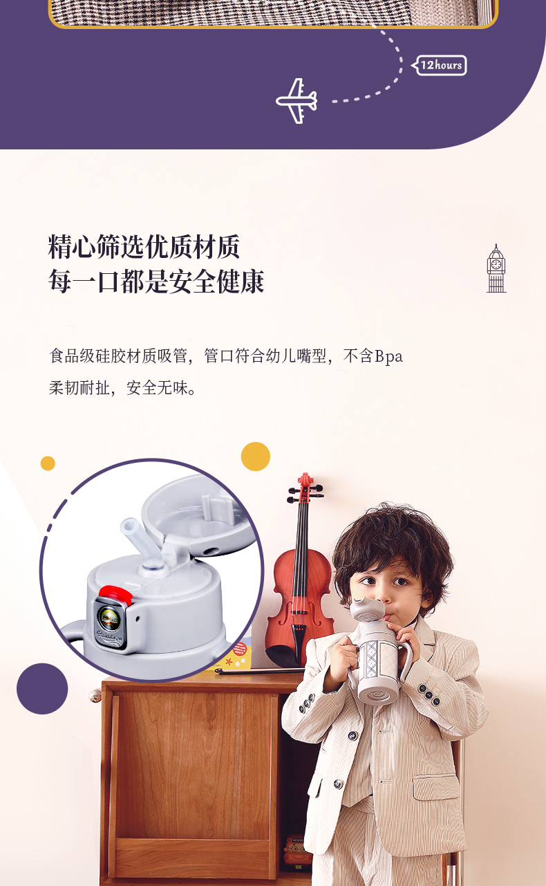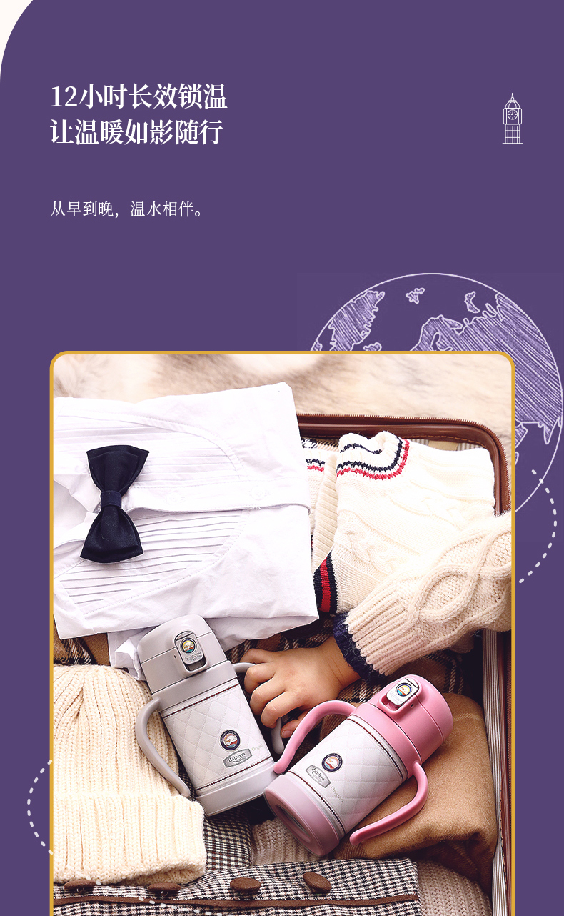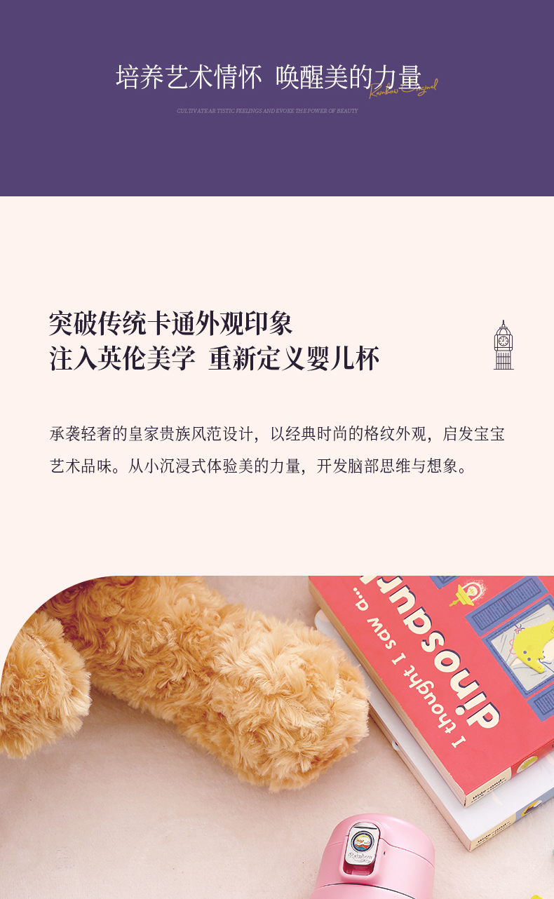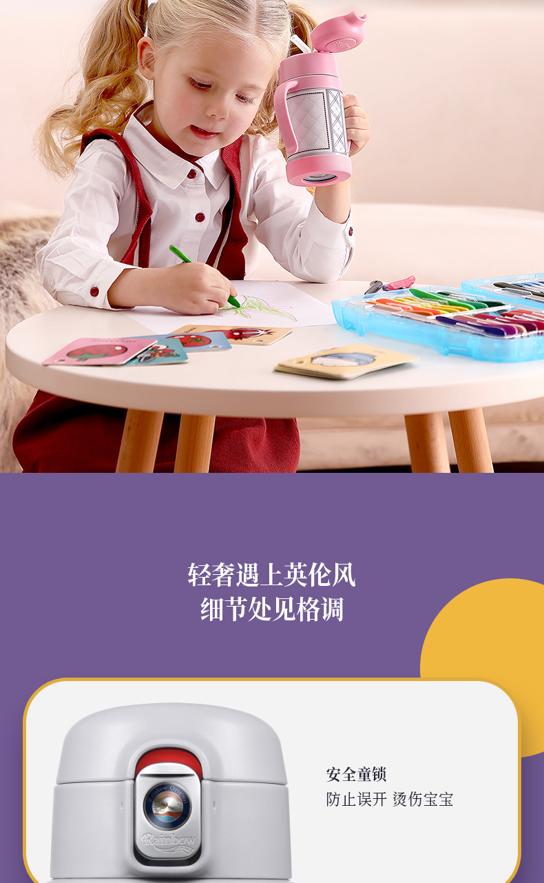 英国瑞堡rainbow儿童保温杯英伦轻奢吸管杯260ml