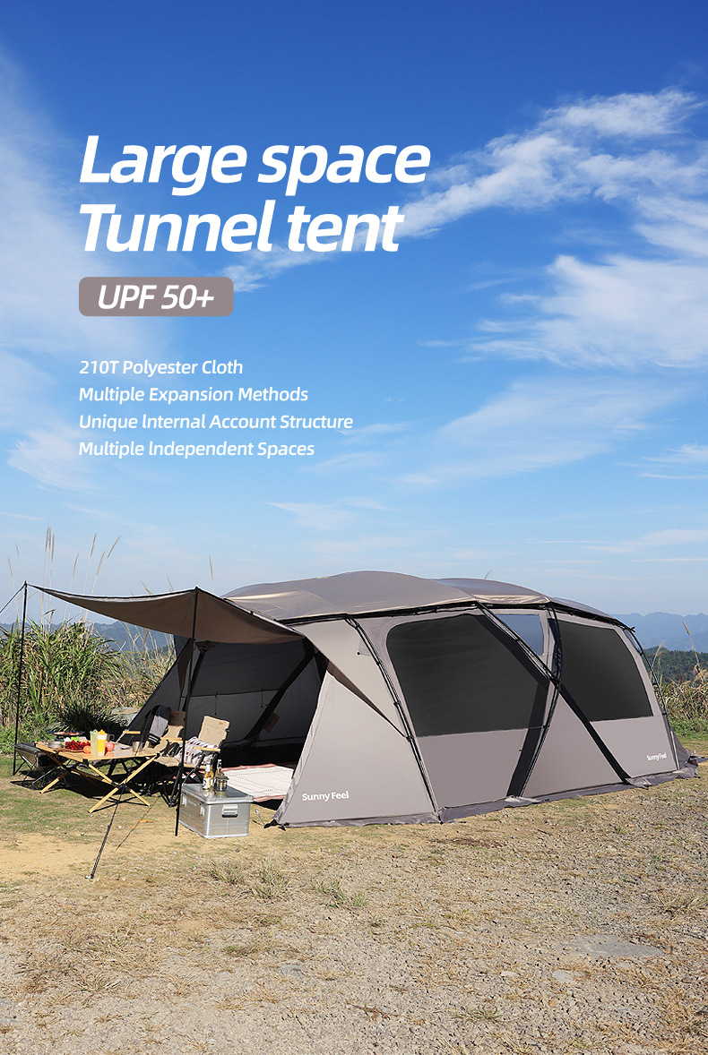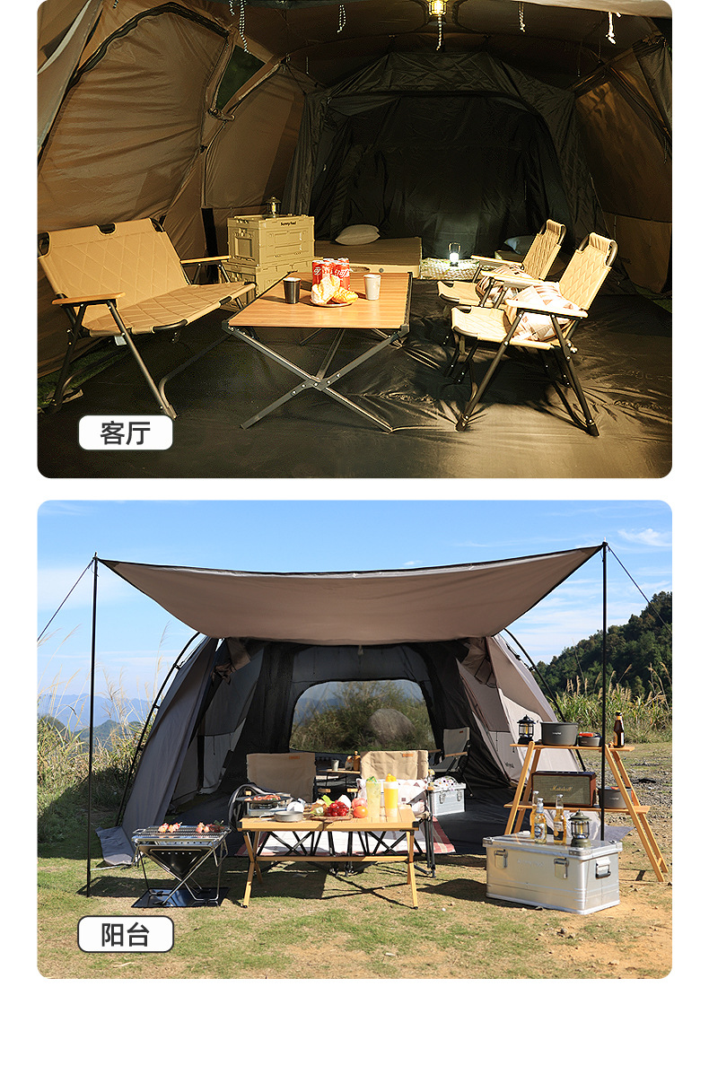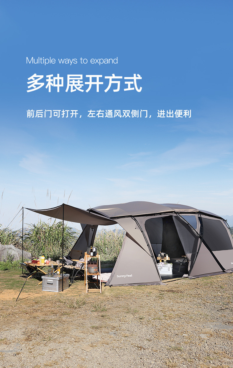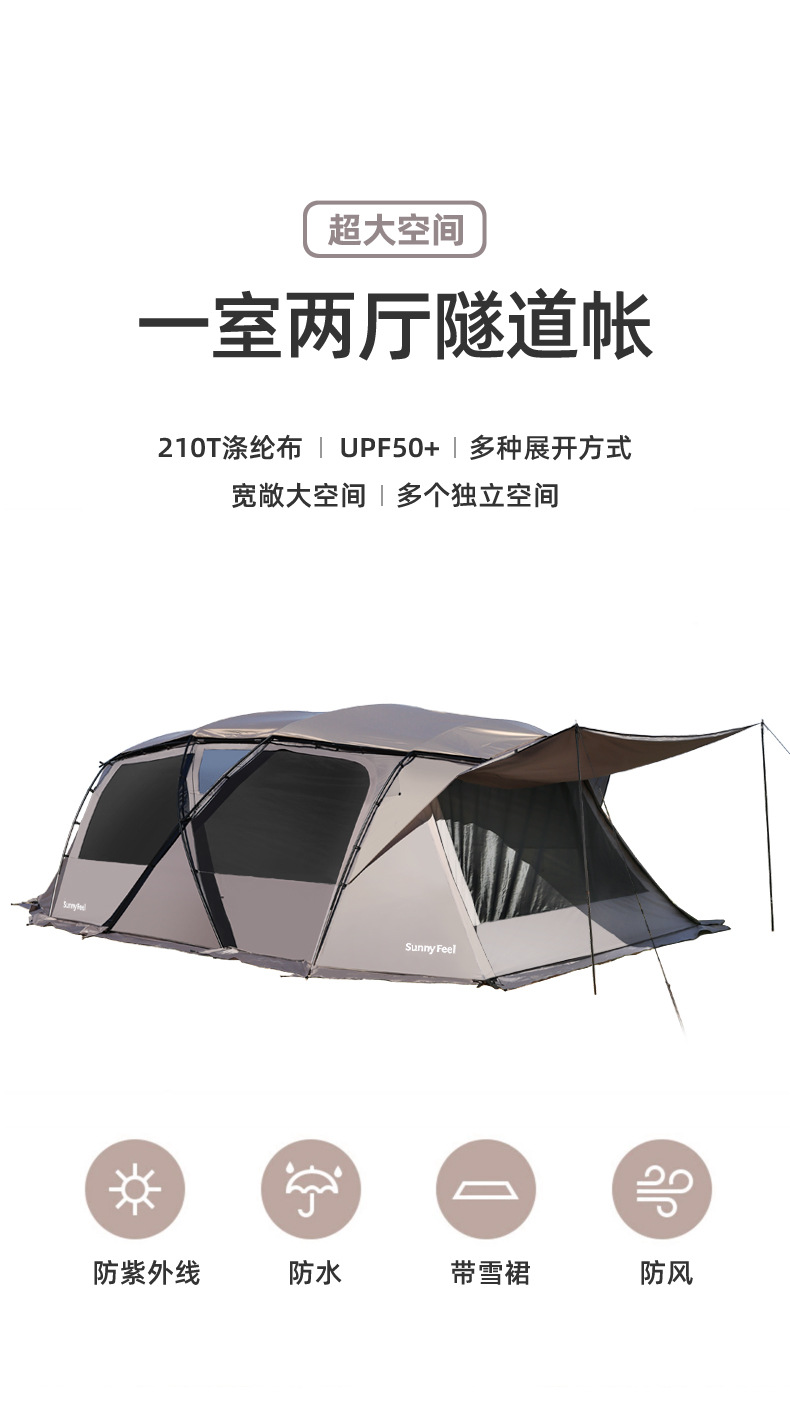 SunnyFeel山扉户外露营隧道帐篷_防风防雨防晒一室一厅带天幕帐篷