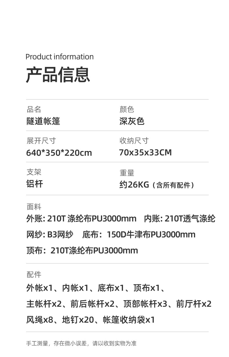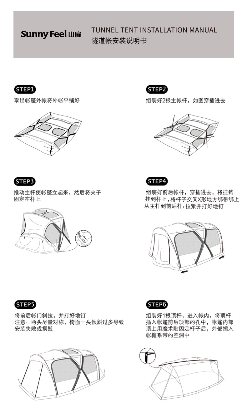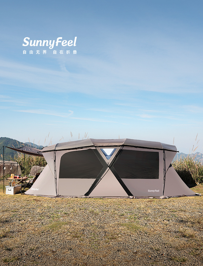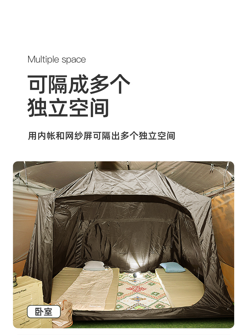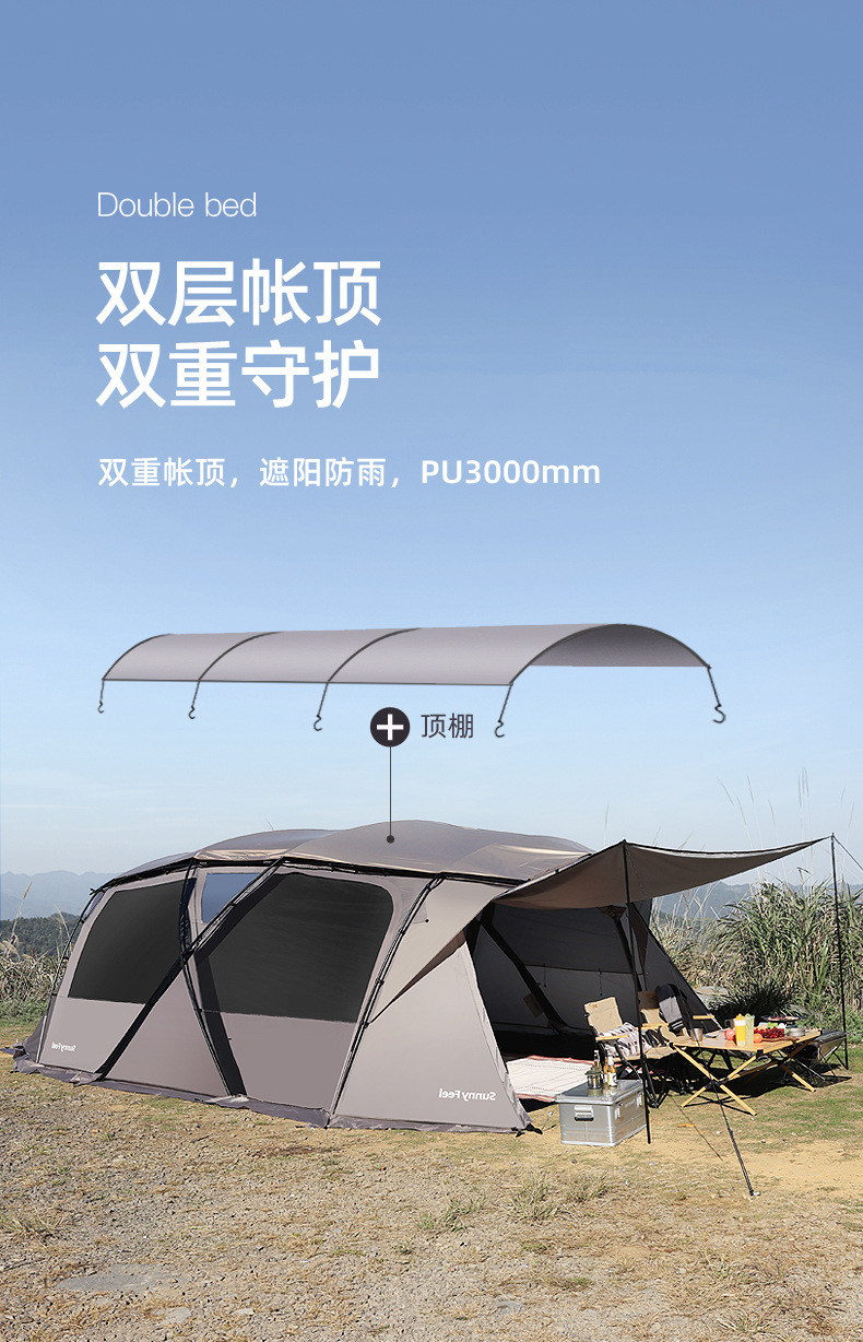 SunnyFeel山扉户外露营隧道帐篷_防风防雨防晒一室一厅带天幕帐篷