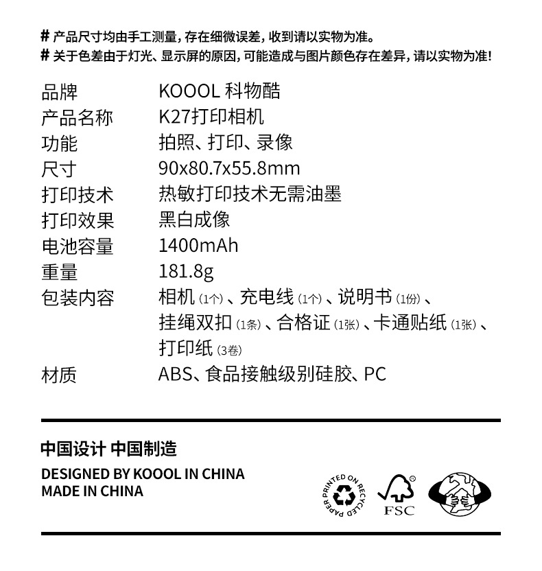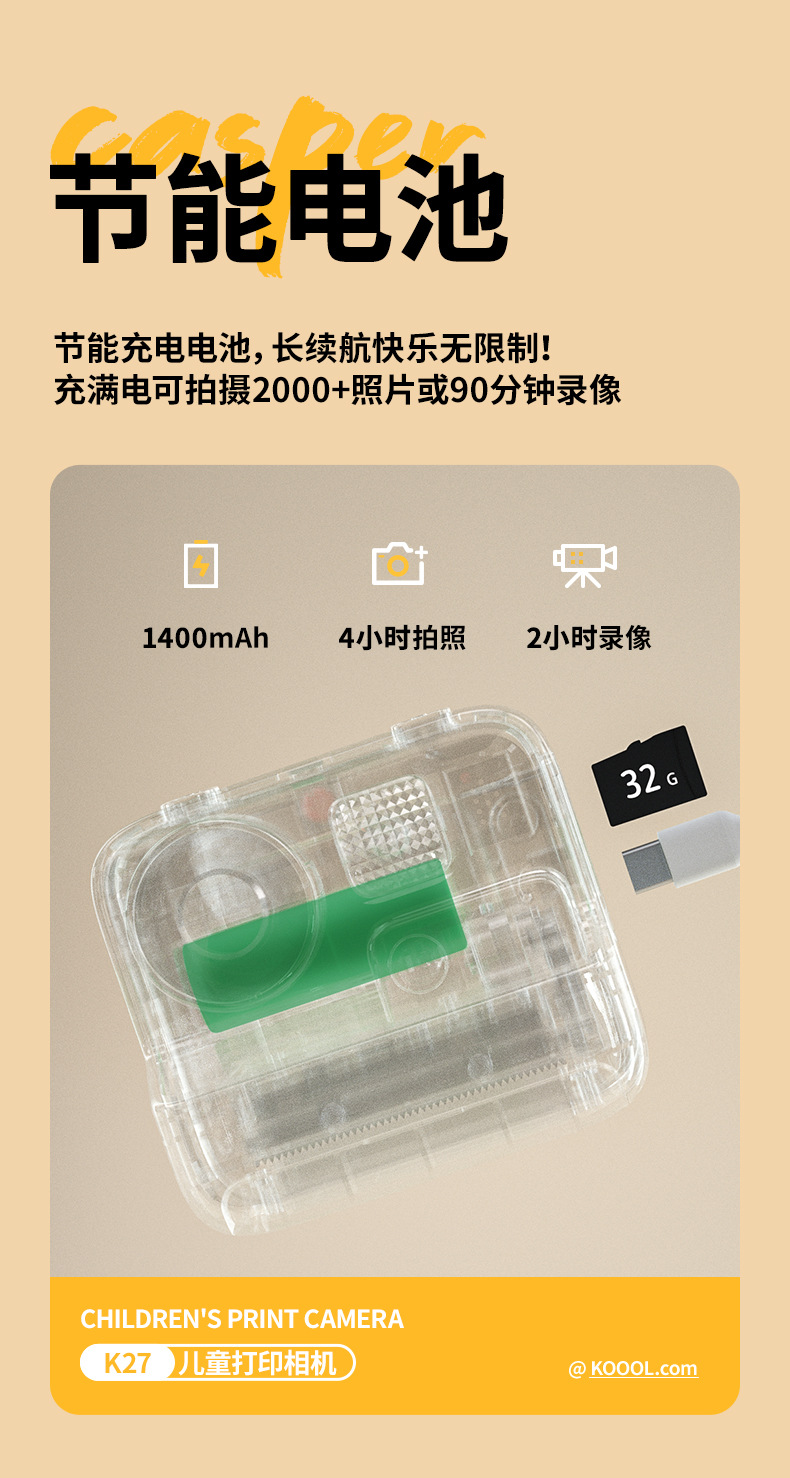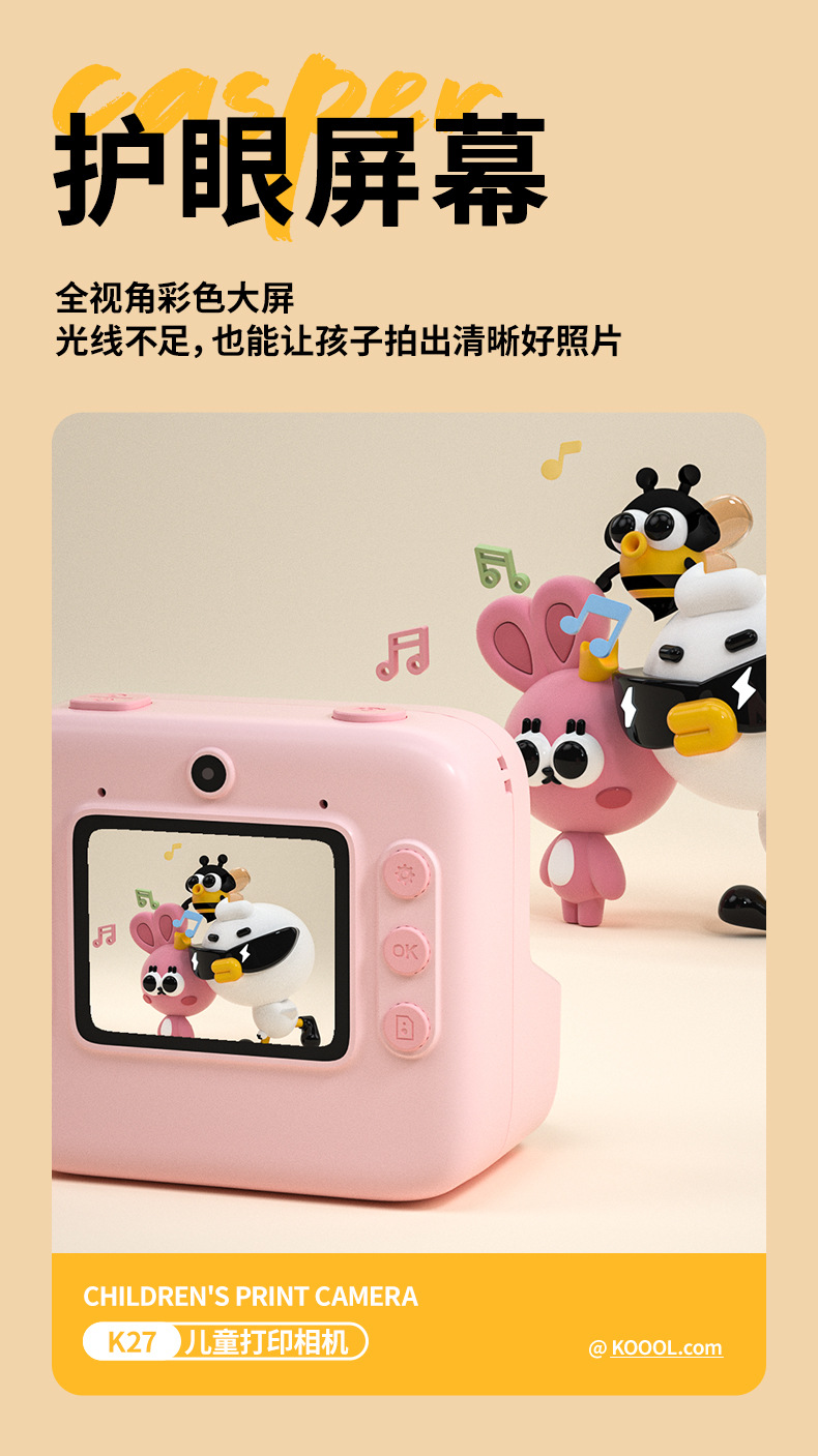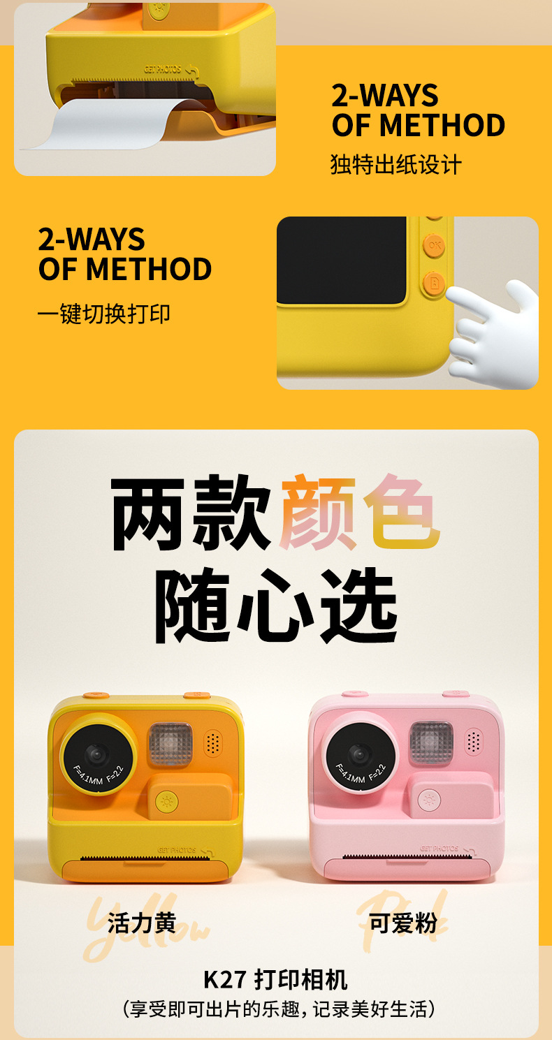 【即拍即得儿童拍立得】科物酷K27儿童打印相机 2600W前后双摄 像素升级 打印更清晰