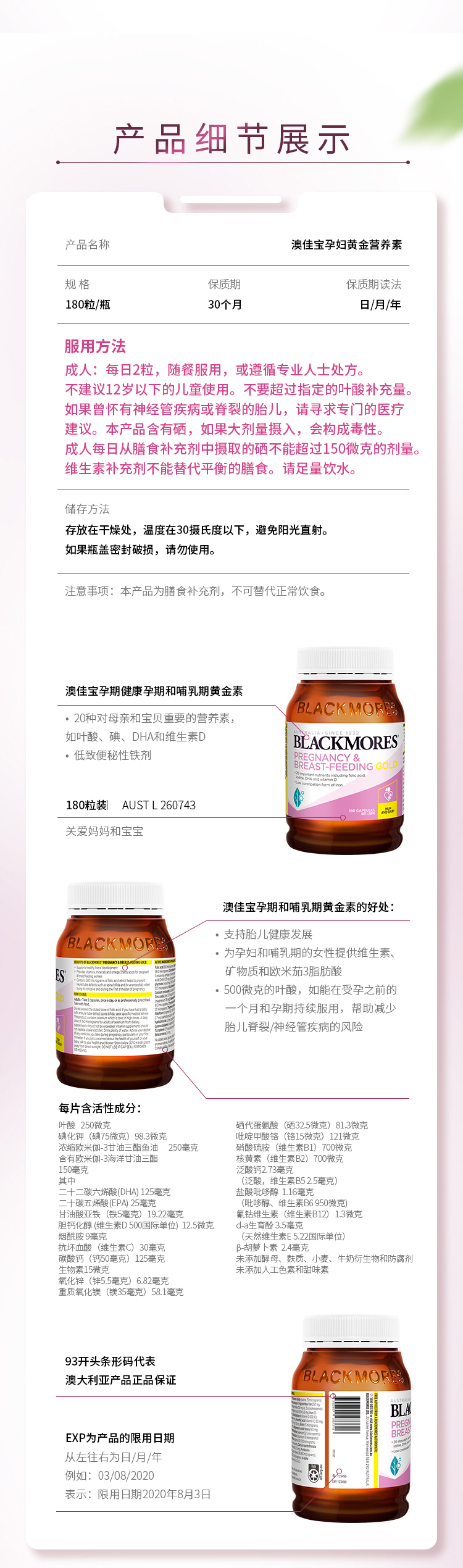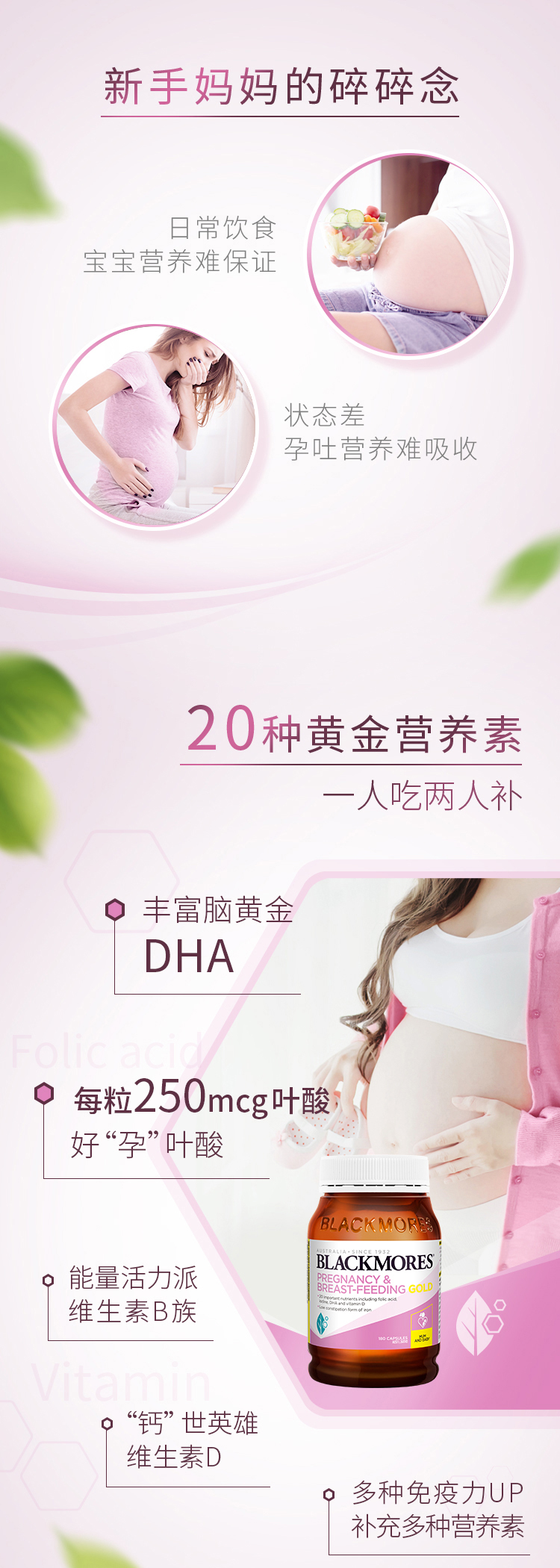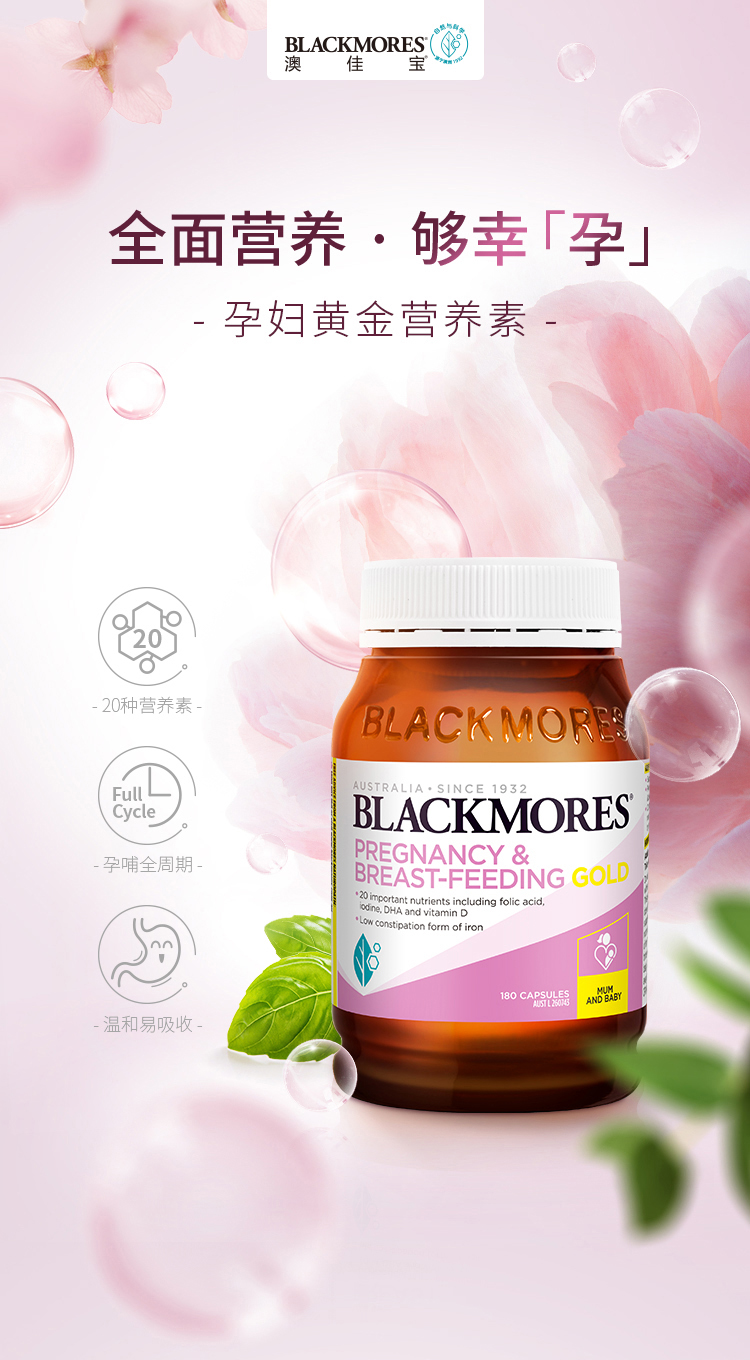 【保税】Blackmores/澳佳宝 孕妇黄金营养素180粒 澳洲原装进口 备孕期哺乳含叶酸DHA