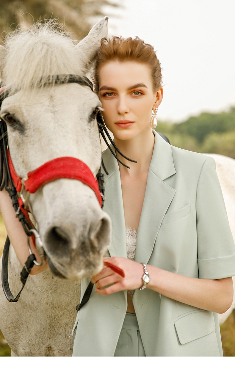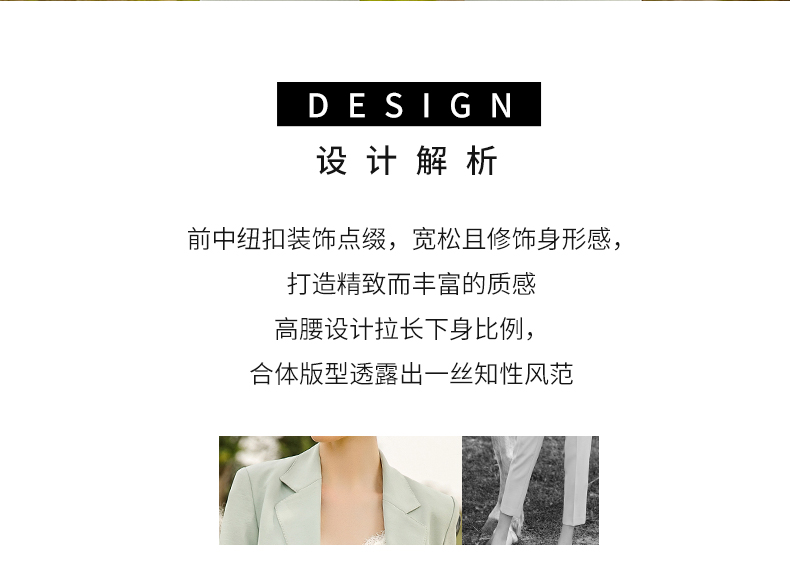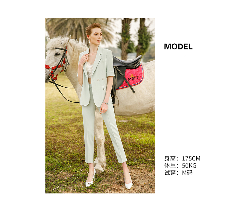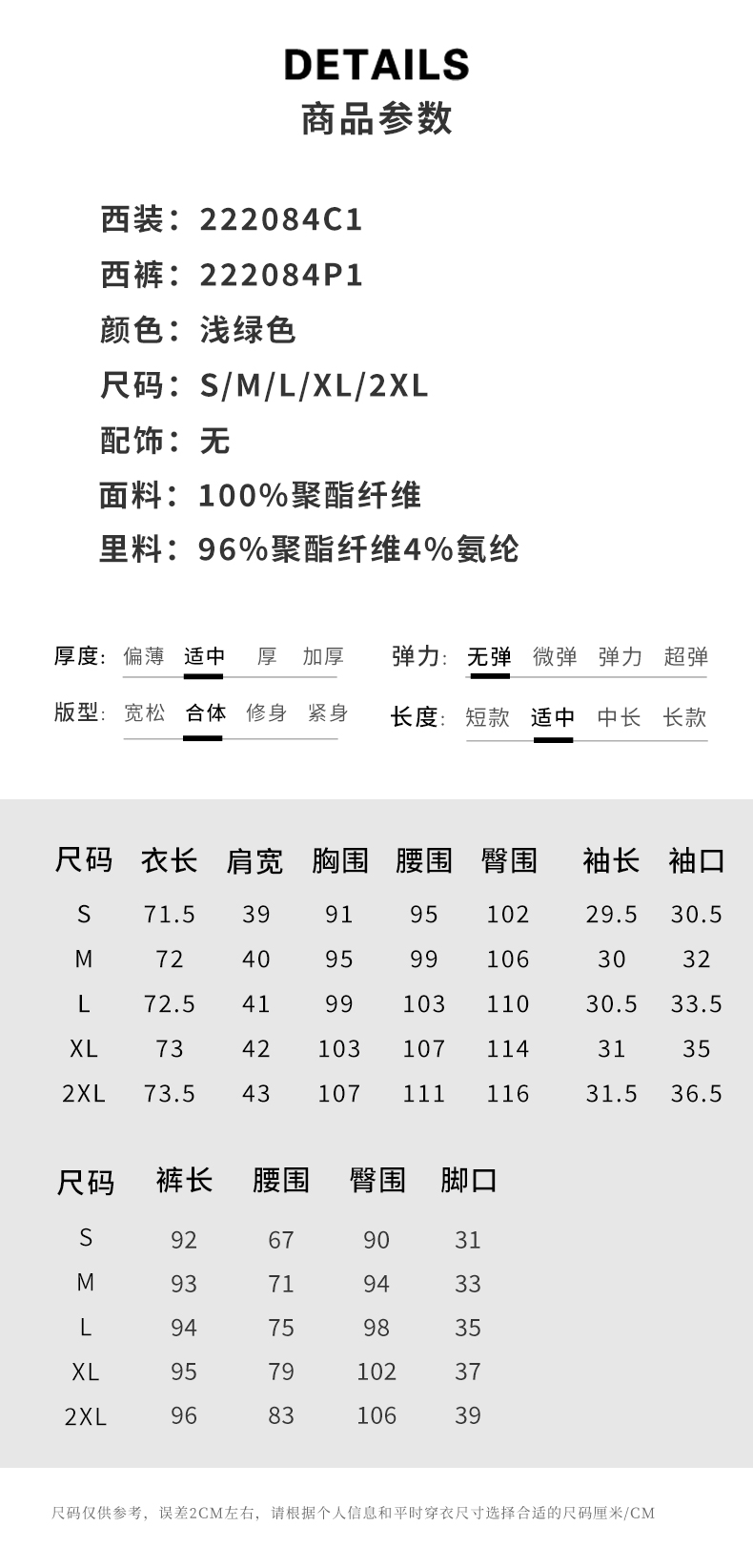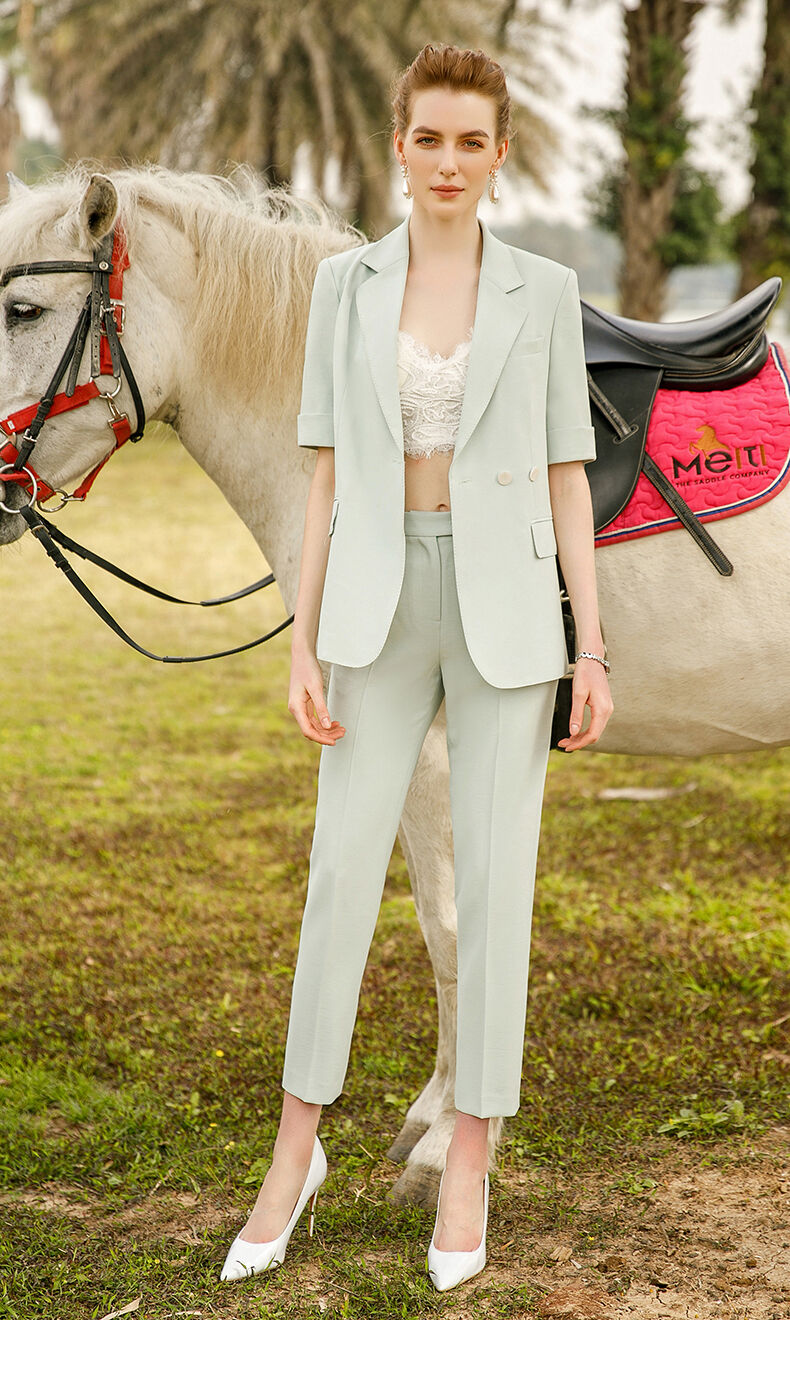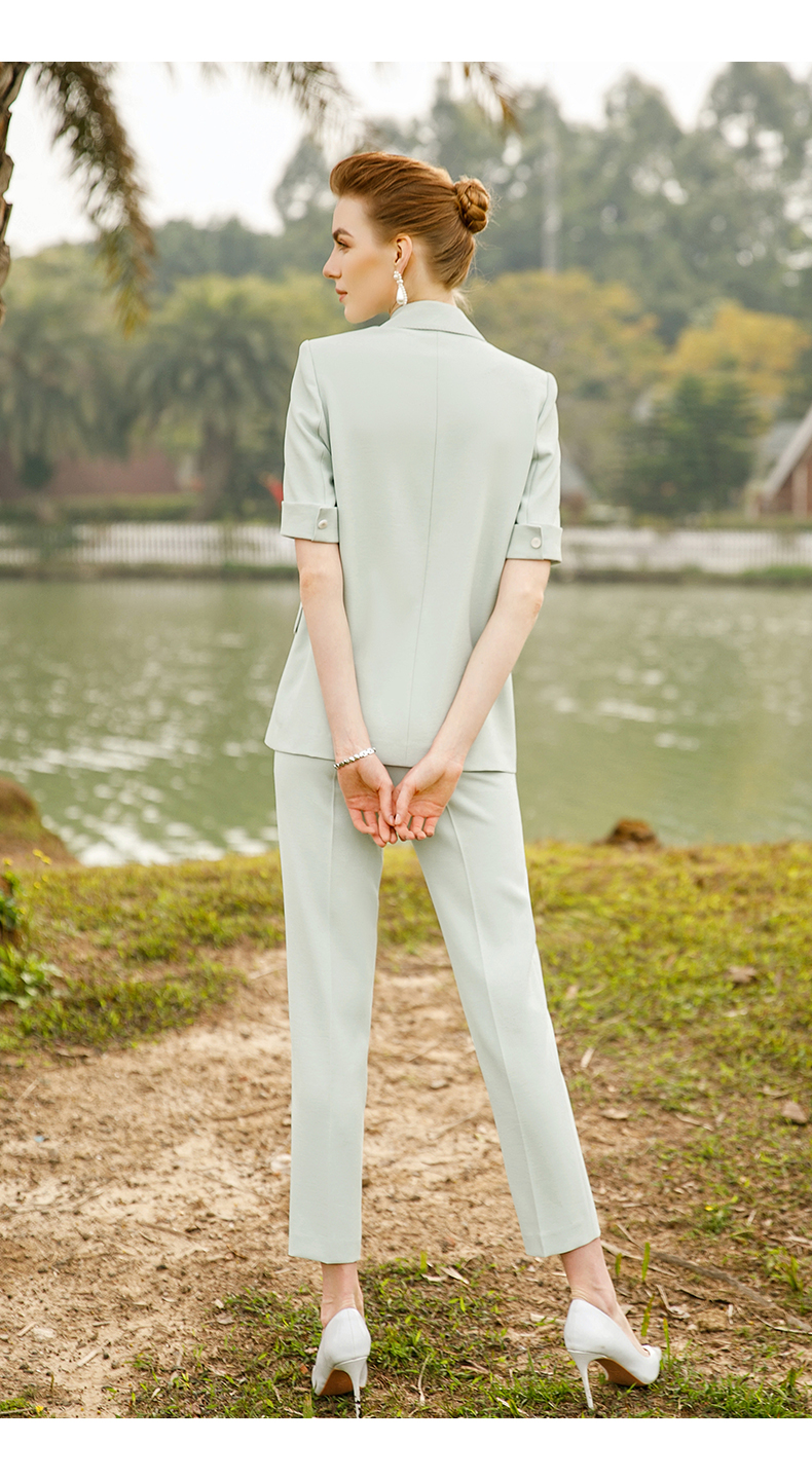 IWY/夏季浅绿色薄款短袖西服套装气质女神套裤222084C1+P1