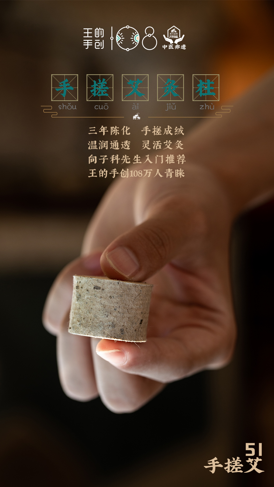 【象艾益家】51手搓艾柱 五行艾灸三年陈艾绒配方中药短艾条 王的首创108万人青睐