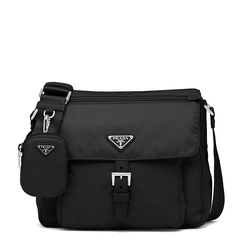 这款实用的皮革单肩包有一个带搭扣的外袋和珐琅金属三角形标志。这款配饰采用 Re-Nylon 制成,这是 Prada 的一种创新面料,可以无限再生,取材于从海洋中收集、回收和净化的塑料。