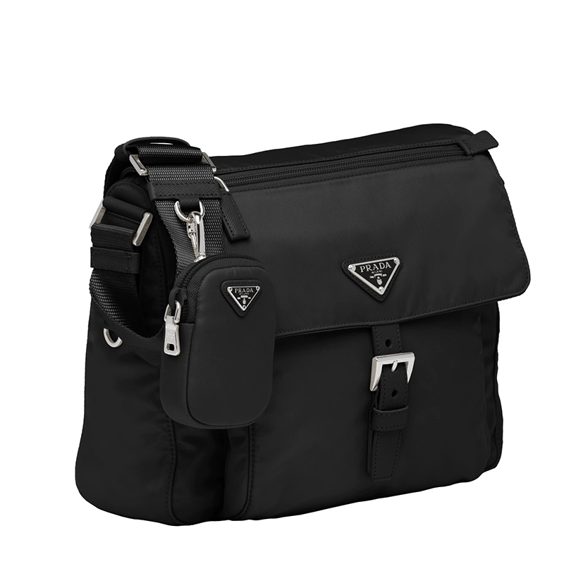 【包税】PRADA/普拉达 21年秋冬新款 女士黑色再生尼龙附可拆卸肩带斜跨单肩包1BD994_RV44_F0002_V_B1M